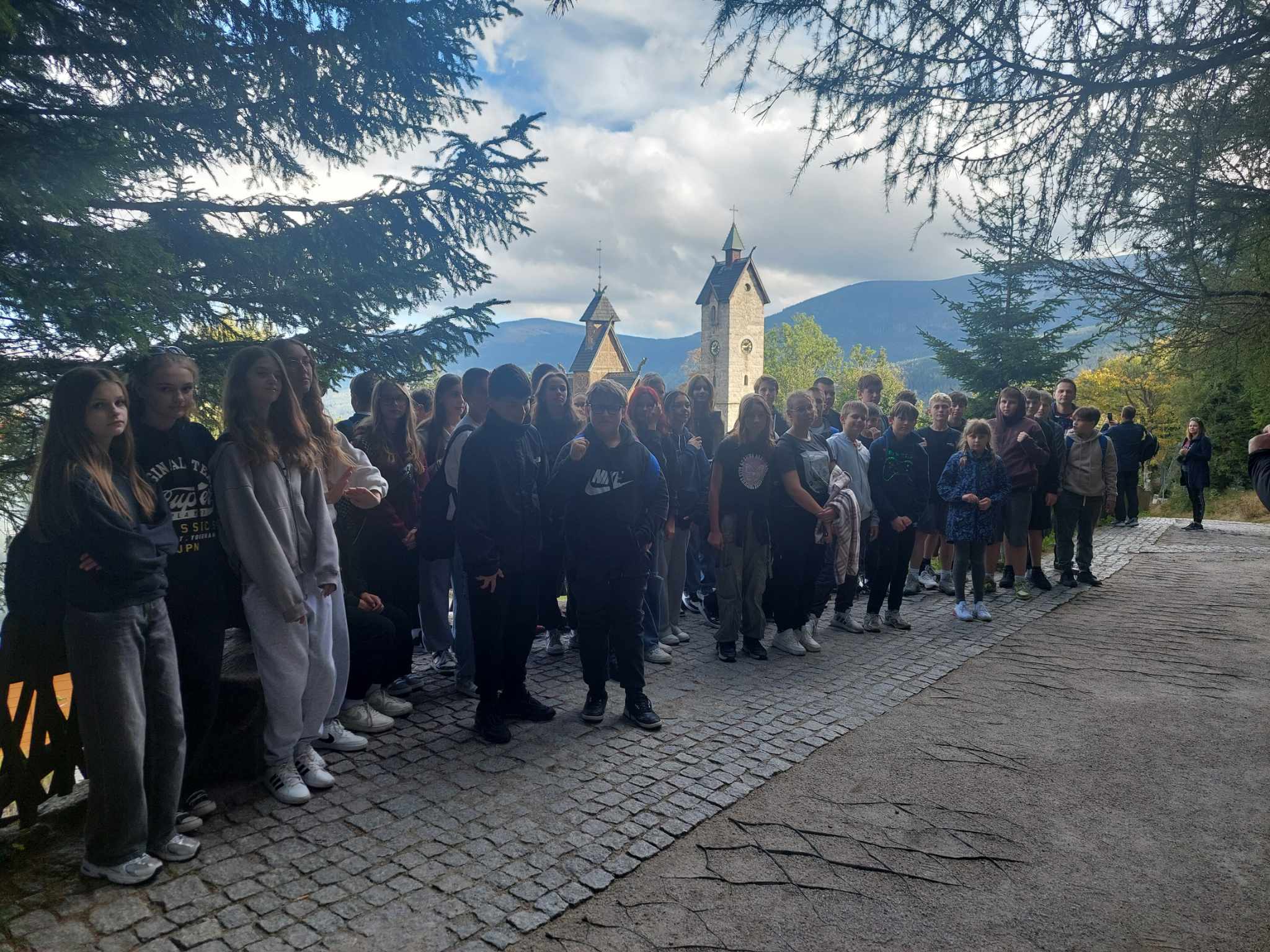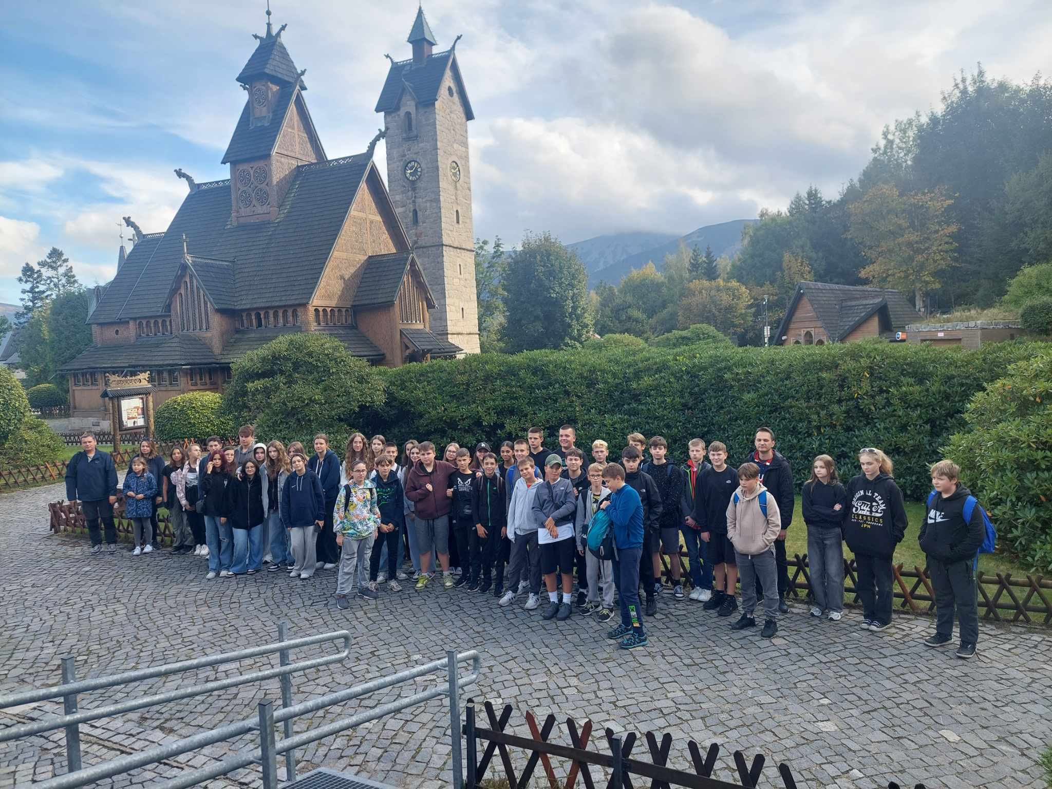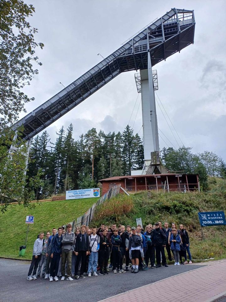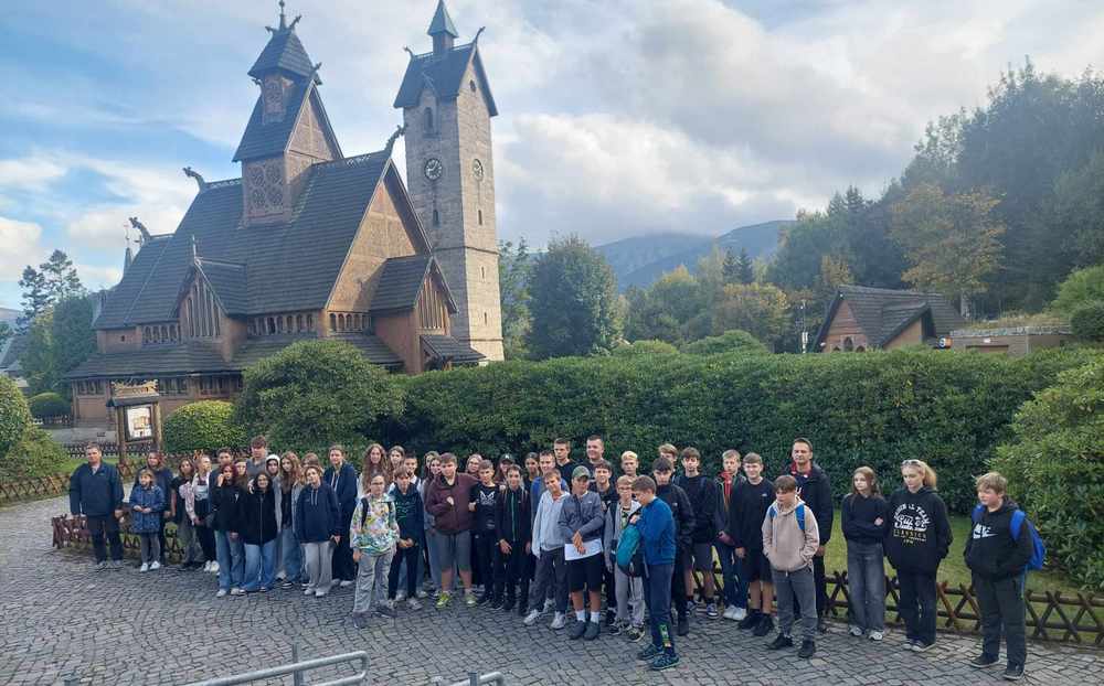 W dniach 25-27 września uczniowie klas 3b, 6a, 6b, 7a, 7b, 8a, 8b, wraz z opiekunami: p. I. Dąbrowską, p. M. Grzebyk, p. R. Sztabą, p. P. Wałachem, wyruszyli do Karpacza. Wycieczkę rozpoczęliśmy od zwiedzania Liczyrzepy – kopalni uranu, po której oprowadził nas pan przewodnik i opowiedział o tym miejscu wiele ciekawostek. Następnie pojechaliśmy do Karpacza, gdzie zobaczyliśmy świątynię Wang – ewangelicki kościół, przeniesiony do Polski z odległej Norwegii, odwiedziliśmy punkt grawitacyjny, w którym rzeczy samoistnie poruszały się w górę, udaliśmy się pod skocznię Orlinek, a następnie do Dzikiego Wodospadu oraz tamy na Łomnicy. Znaleźliśmy też krótką chwilę na zakup pamiątek na karpackim deptaku.