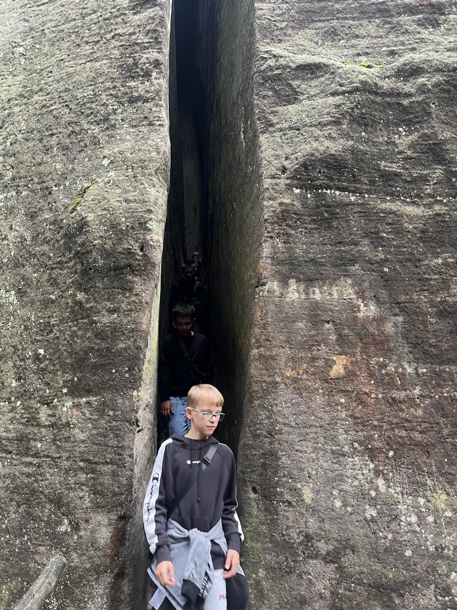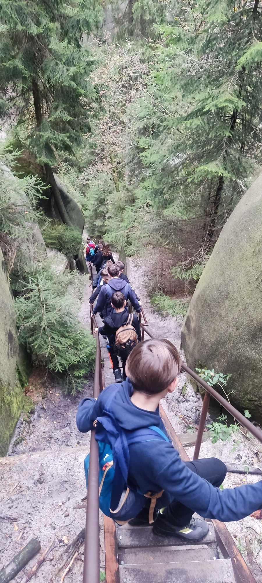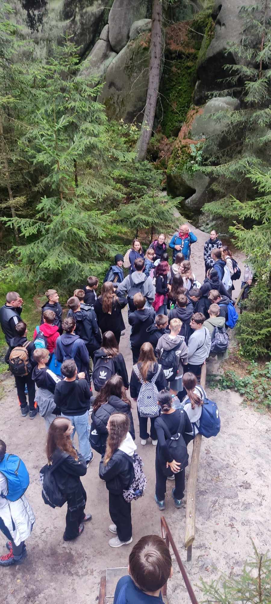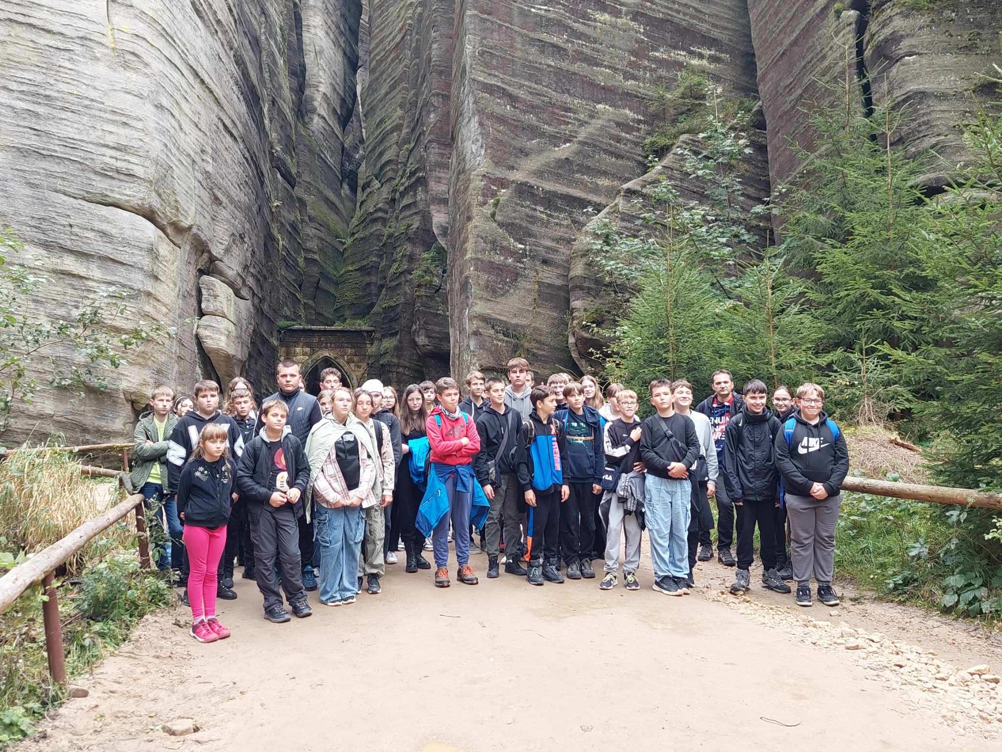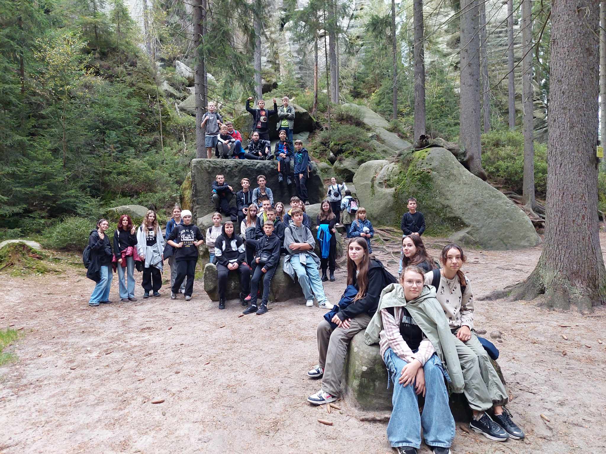 Drugi, pełen przygód i emocji dzień, rozpoczęliśmy od wjazdu wyciągiem na Kopę. Niestety, wyjątkowo silny i porywisty wiatr rozwiał nasze nadzieje na zdobycie najwyższego szczytu w Sudetach – Śnieżki. Dotarliśmy tylko do Domu Śląskiego, skąd rozpoczęliśmy wędrówkę w dół czarnym szlakiem. Tym razem góry pokazały nam zupełnie inne oblicze i przypomniały o tym, że trzeba mieć do nich wielki szacunek. Po dotarciu do Karpacza, udaliśmy się do Czech, gdzie przewodnik oprowadził nas po Skalnym Mieście. Trzygodzinna wędrówka po kompleksie wyjątkowych form skalnych w Adrspachu pełna była najróżniejszych ciekawostek i cudownych widoków. To właśnie tam powstały niektóre sceny z filmu “Opowieści z Narnii”. Zmęczeni wróciliśmy do hotelu, gdzie czekała na nas ciepła obiadokolacja.