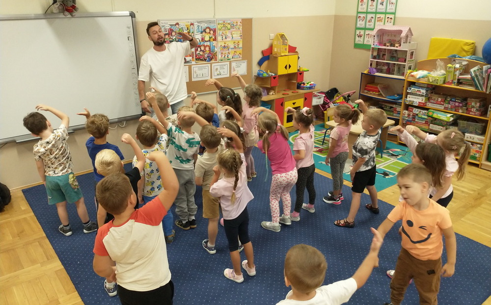 W naszym przedszkolu odbyły się zajęcia pokazowe hip-hopu, podczas których przedszkolaki miały okazję, poprzez zabawę, poznać podstawowe kroki tego dynamicznego stylu tańca. Dzieci z ogromnym entuzjazmem uczestniczyły w lekcji, ucząc się nowych ruchów, rozwijając swoją koordynację i poczucie rytmu. Było dużo śmiechu, pozytywnej energii i wspólnej zabawy!