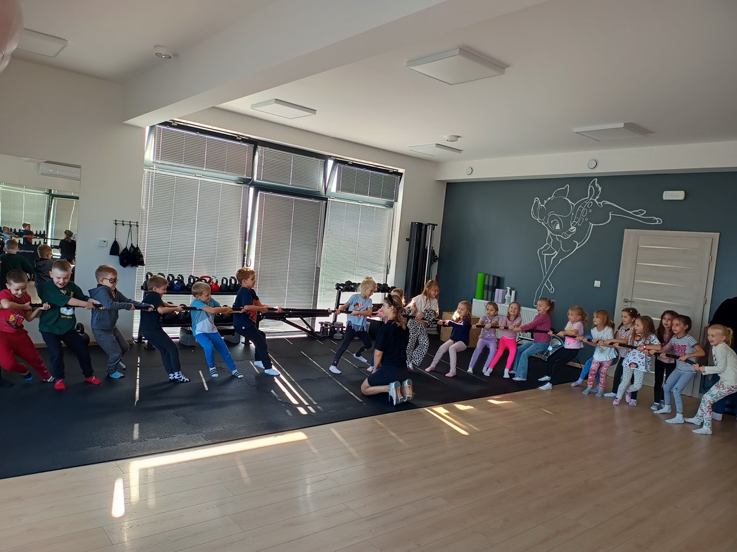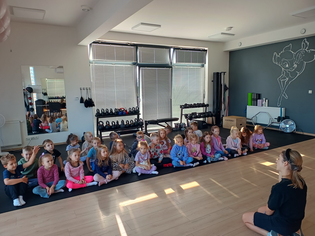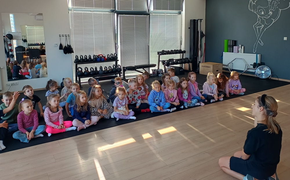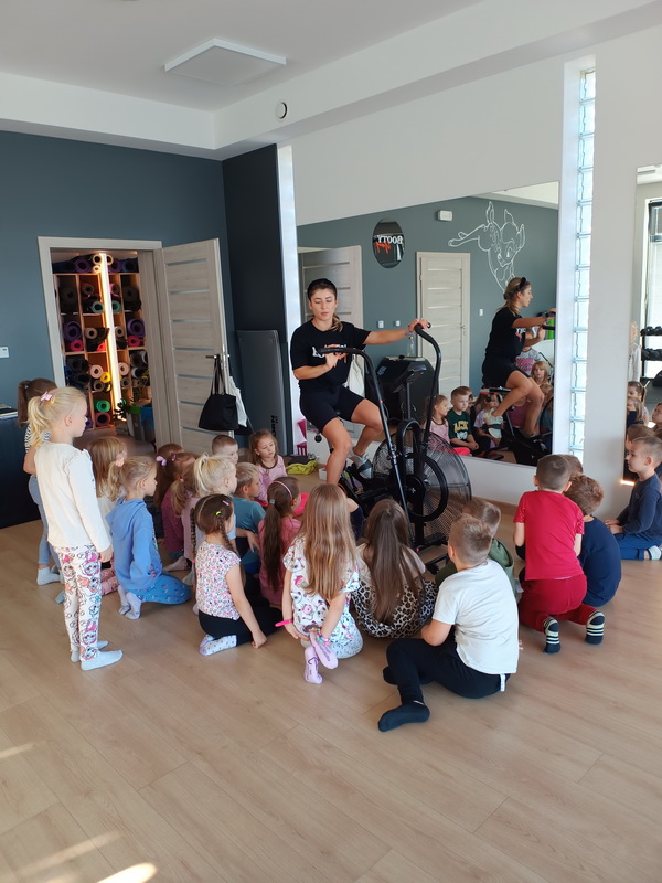 Dzieci z grupy Słoneczka doskonale wiedzą, jak ważna jest aktywność fizyczna w codziennym życiu. Aby dowiedzieć się więcej na temat różnych form ruchu, przedszkolaki wybrały się na wycieczkę do klubu fitness, gdzie czekała na nich trenerka – pani Ania Kamińska. Podczas spotkania instruktorka opowiedziała dzieciom, dlaczego sport i ruch są tak ważne dla zdrowia. Wyjaśniła, że regularna aktywność pomaga w budowaniu silnych mięśni, poprawia samopoczucie oraz dodaje energii do zabawy. Podkreśliła, że aktywność fizyczna nie tylko wzmacnia nasze ciało, ale także sprawia, że jesteśmy zdrowsi i mniej podatni na urazy.