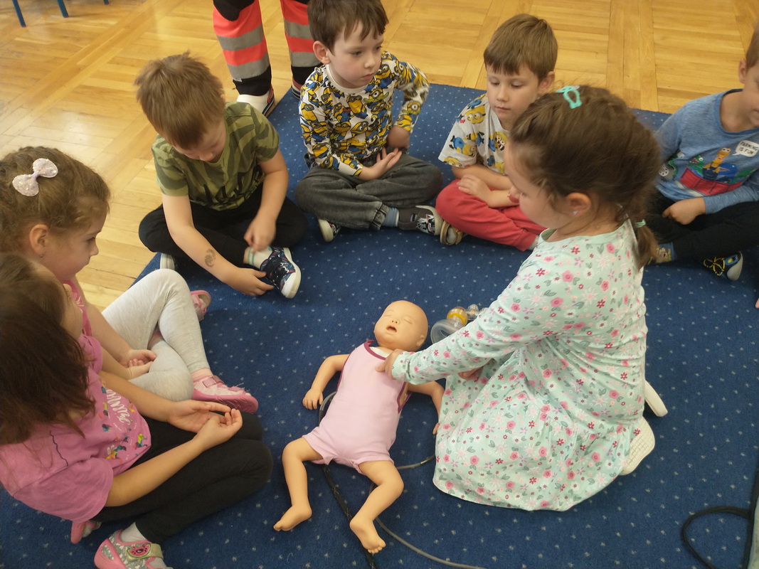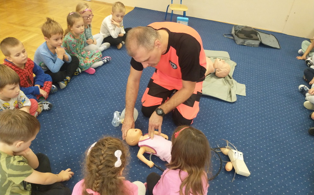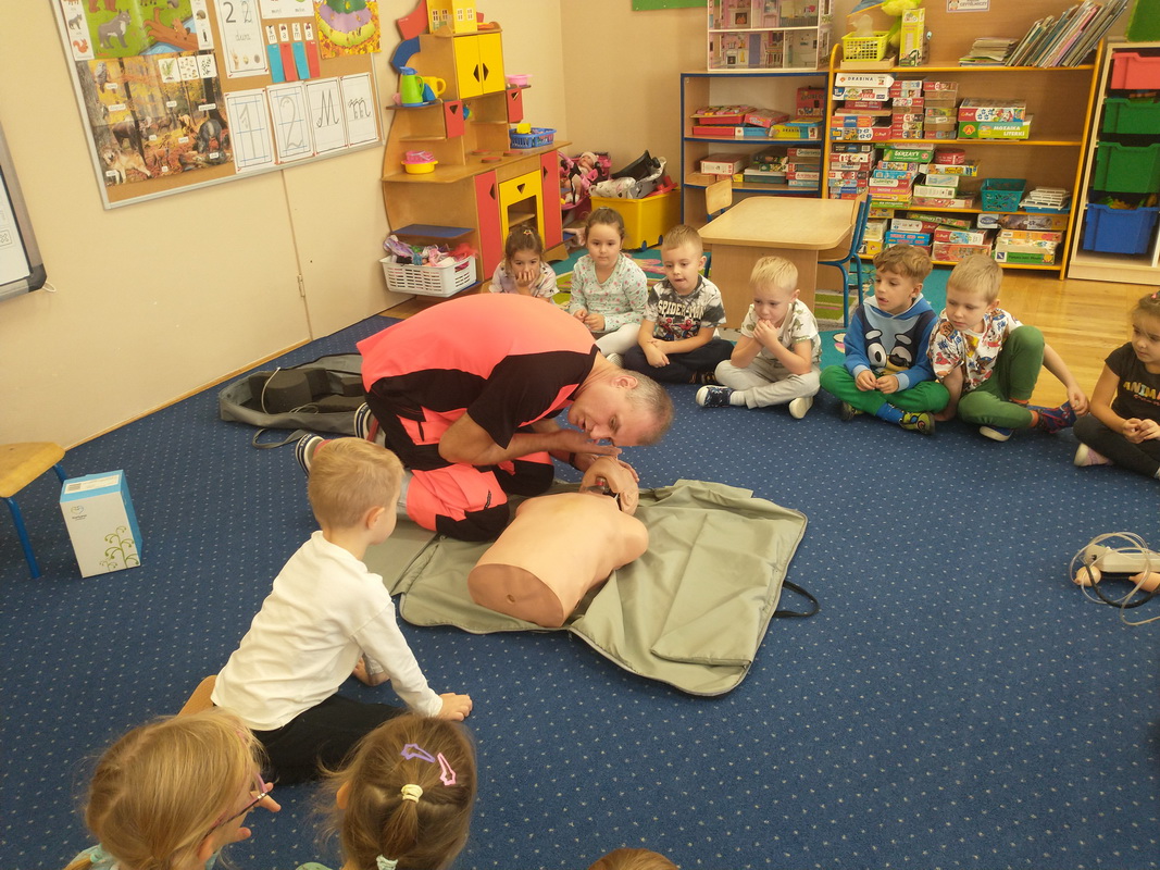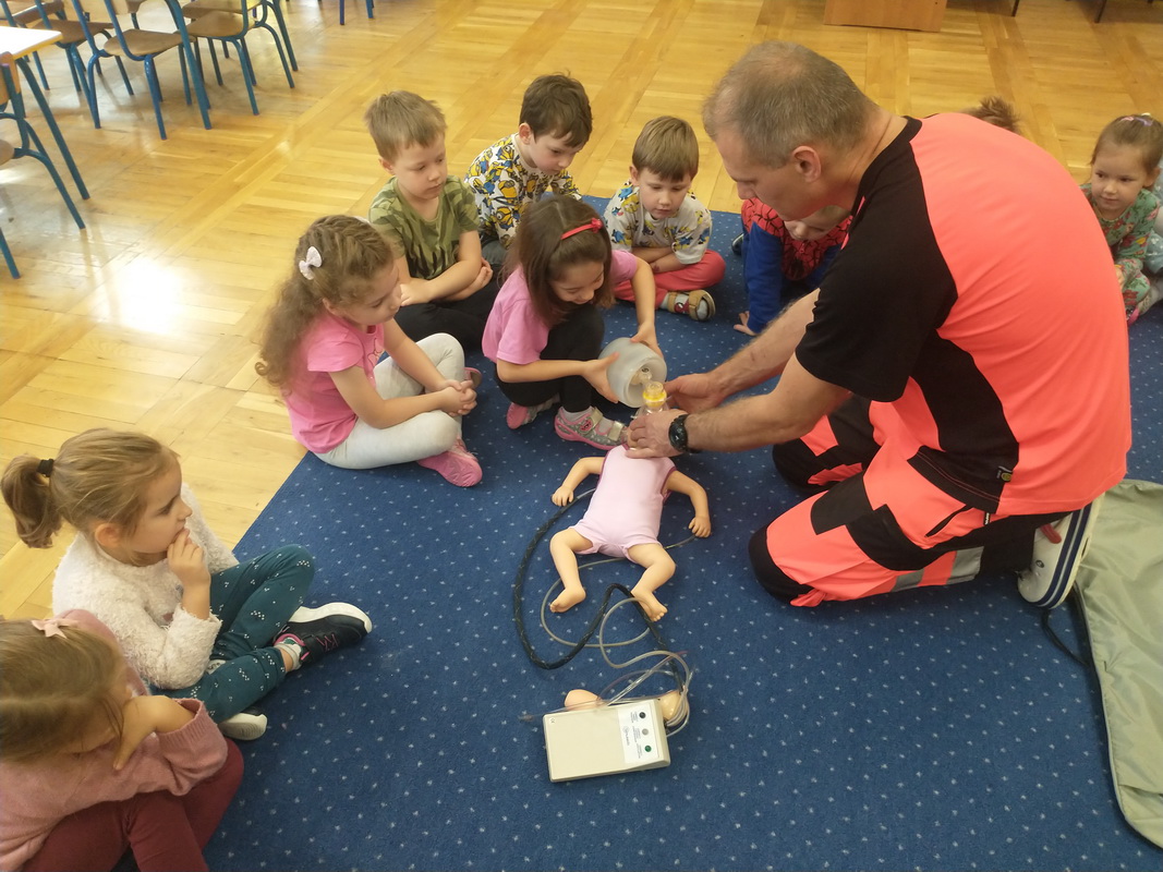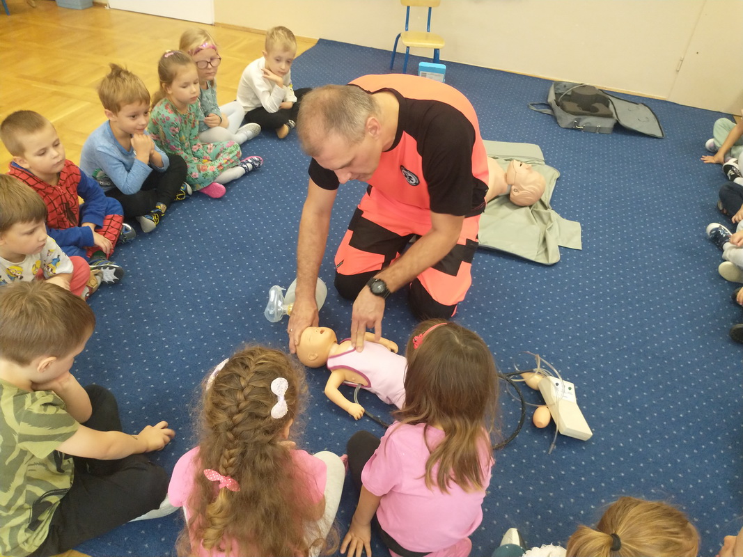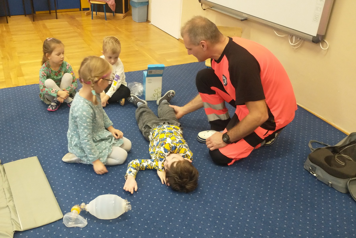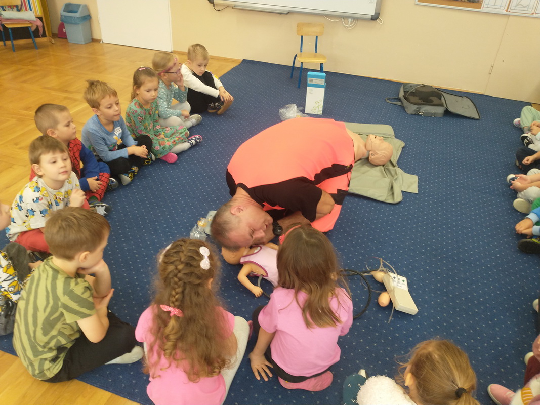 Dzień Ratownictwa Medycznego, obchodzony 13 października, to święto dedykowane bohaterom pierwszego kontaktu — ratownikom medycznym. Są oni niezastąpionym filarem systemu ochrony zdrowia. Jako pierwsi docierają na miejsce wypadku czy nagłego zachorowania, łącząc wiedzę z umiejętnością szybkiego działania. Grupę Misie odwiedził tata naszej wychowanki, p. Marcin, który wykonuje tę wyjątkową i szczególną pracę polegającą na ratowaniu ludzkiego życia. Pan Marcin przeprowadził zajęcia edukacyjne z zakresu udzielania pierwszej pomocy przedmedycznej. Wytłumaczył dzieciom, na czym polega jego praca oraz czym zajmują się poszczególne służby ratunkowe. Przedszkolaki dowiedziały się, jak należy sprawdzić, czy osoba jest przytomna i co należy zrobić do czasu przyjazdu pogotowia. Nasz gość wyjaśnił, kiedy należy wezwać karetkę pogotowia i jak to zrobić w sposób prawidłowy (jakie informacje podać podczas zgłoszenia). Dzieci miały okazję obejrzeć przedmioty niezbędne w wyposażeniu każdego ratownika. Wiele emocji wzbudził pokaz resuscytacji wykonany na fantomie. W końcu nadszedł czas, aby wykorzystać zdobytą wiedzę w praktyce.
