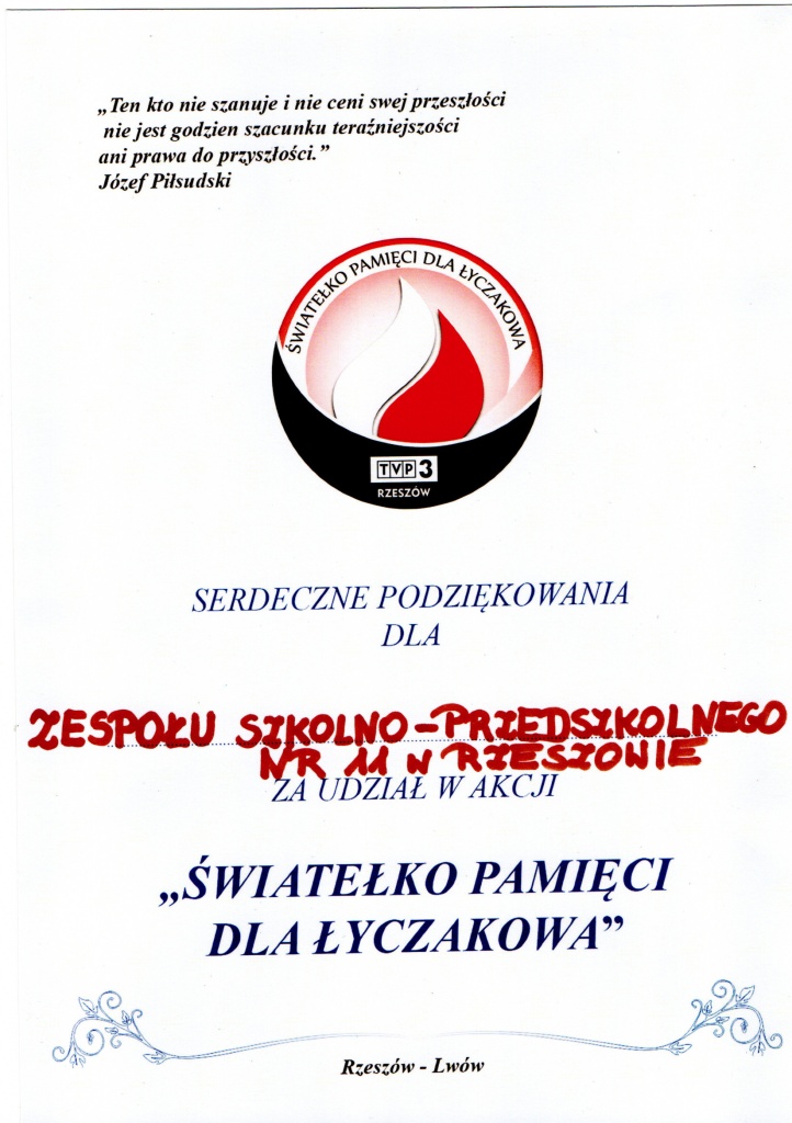 21 października miała swój finał prowadzona w naszej placówce akcja społeczna “Światełko Pamięci dla Łyczakowa”. Zbiórka białych i czerwonych zniczy na polskie cmentarze w obwodzie lwowskim to już tradycja Zespołu Szkolno-Przedszkolnego nr 11 w Rzeszowie. Dziękujemy wszystkim za liczny udział w akcji oraz kształtowanie postawy patriotycznej w kontekście tożsamości narodowej.