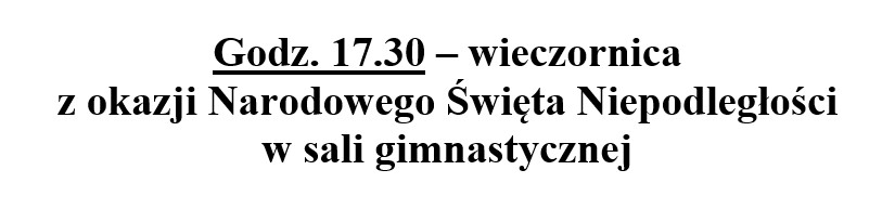 - godz. 1730 w sali gimnastycznej wieczornica z okazji Narodowego Święta Niepodległości,