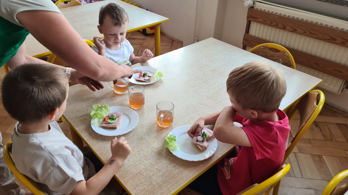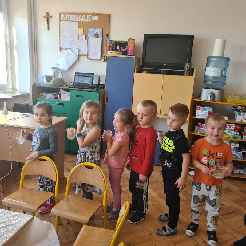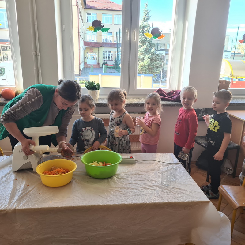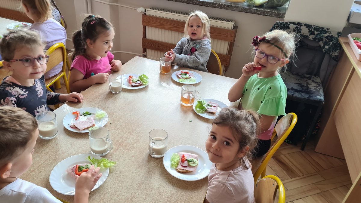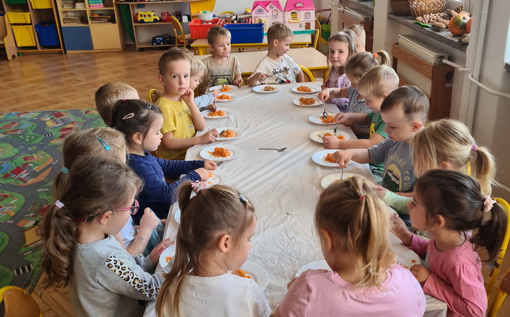 W październiku, w grupie Pszczółek obchodzony był Światowy Dzień Owoców i Warzyw. Głównym celem przeprowadzonych zajęć było zachęcenie dzieci do spożywania warzyw i owoców. Już podczas śniadania, przygotowanego w formie „szwedzkiego stołu”, przedszkolaki miały możliwość skosztowania różnych warzyw. Następnie każde dziecko, z przyniesionych przez siebie owoców, wykonało i zjadło ze smakiem “owocowego szaszłyka”. Zaangażowanie dzieci pokazało, że warzywa i owoce staną się nieodzownym elementem ich codziennej diety.