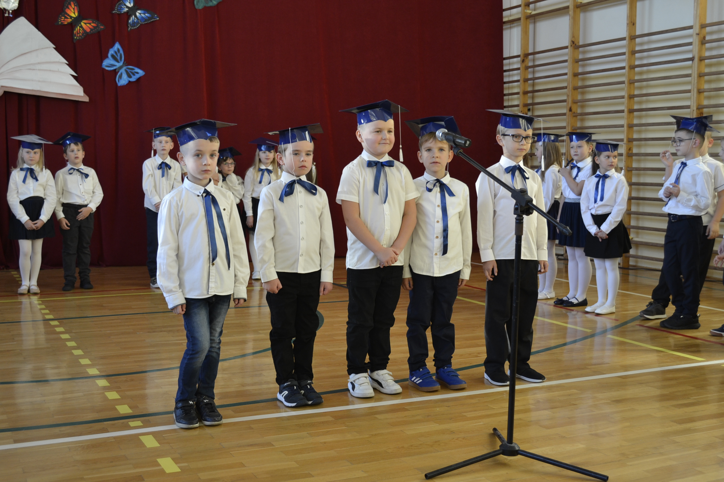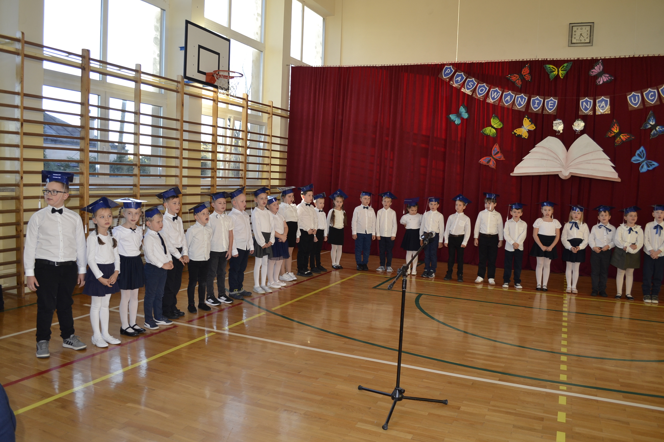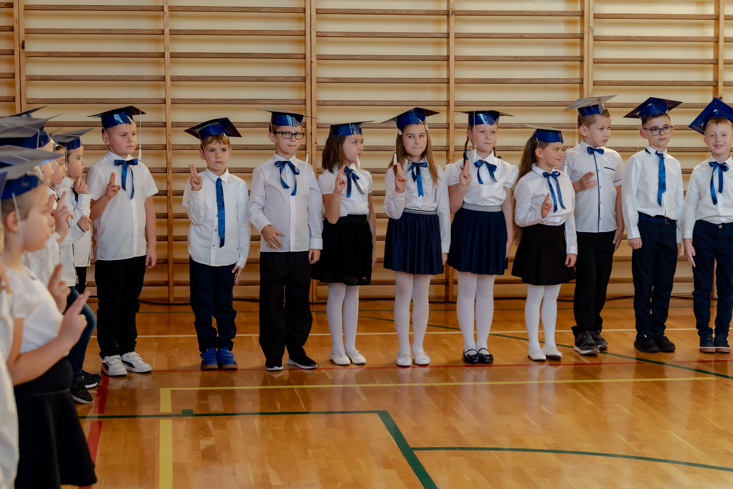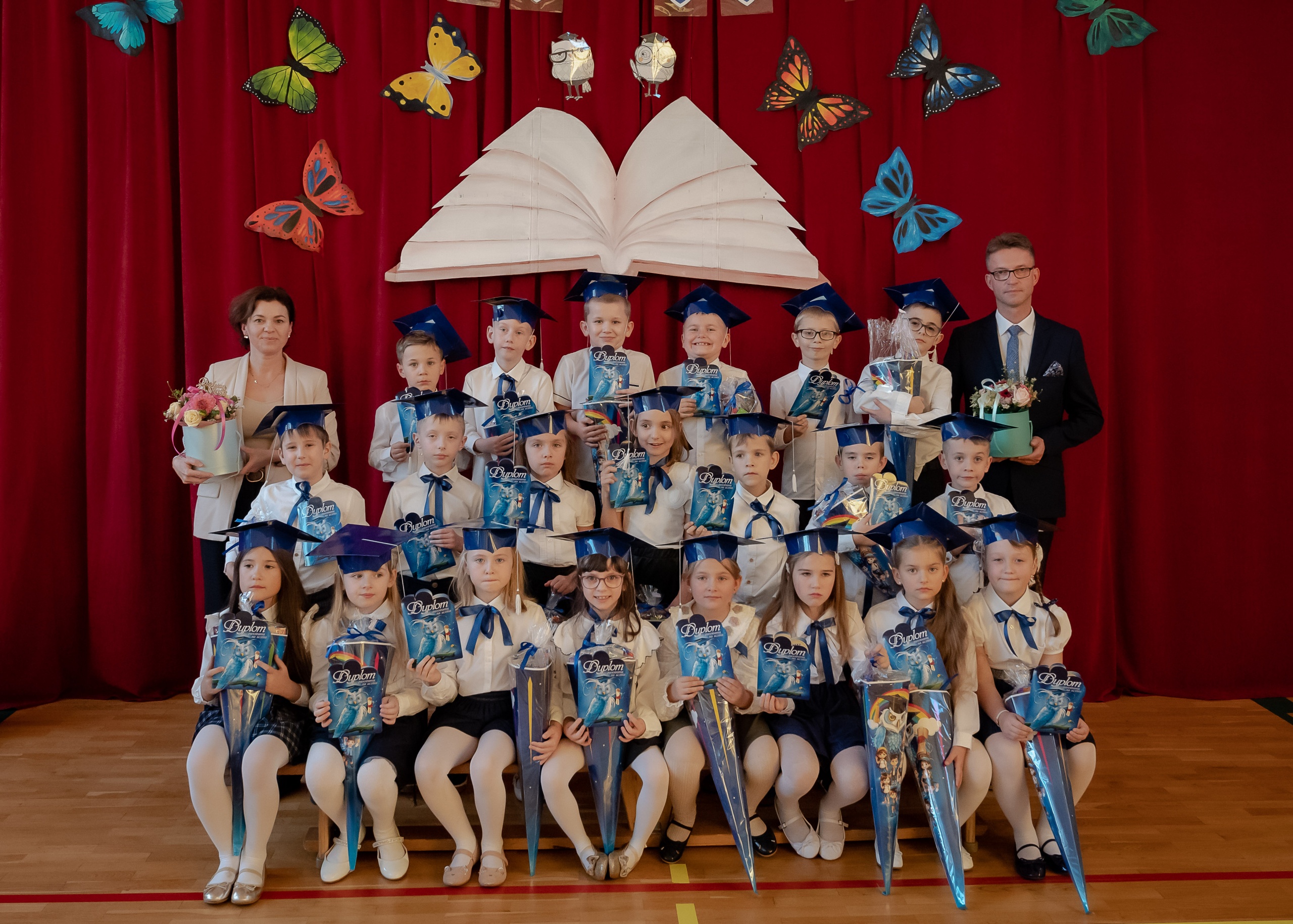 17 października 2024 r. odbyła się w naszej szkole uroczystość pasowania na ucznia. Jest to szczególny dzień, który na długo pozostanie w pamięci każdego ucznia klasy pierwszej. W tym dniu dzieci oficjalnie przyjęte zostały do grona uczniów szkoły. Podczas uroczystości pierwszoklasiści pokazali, że potrafią pięknie śpiewać i recytować wiersze. Najważniejszą częścią uroczystości, na którą wszyscy czekali, było ślubowanie oraz pasowanie wielkim ołówkiem przez pana dyrektora, Piotra Kłęka. Pierwszaki głośno i z przekonaniem przyrzekały być dobrymi i pilnymi uczniami oraz rzetelnie wypełniać swoje obowiązki, o czym przypominać im będą otrzymane dyplomy. Wszystkim pierwszoklasistom w tak ważnym dla nich dniu życzymy wielu sukcesów na nowej drodze obowiązków szkolnych.