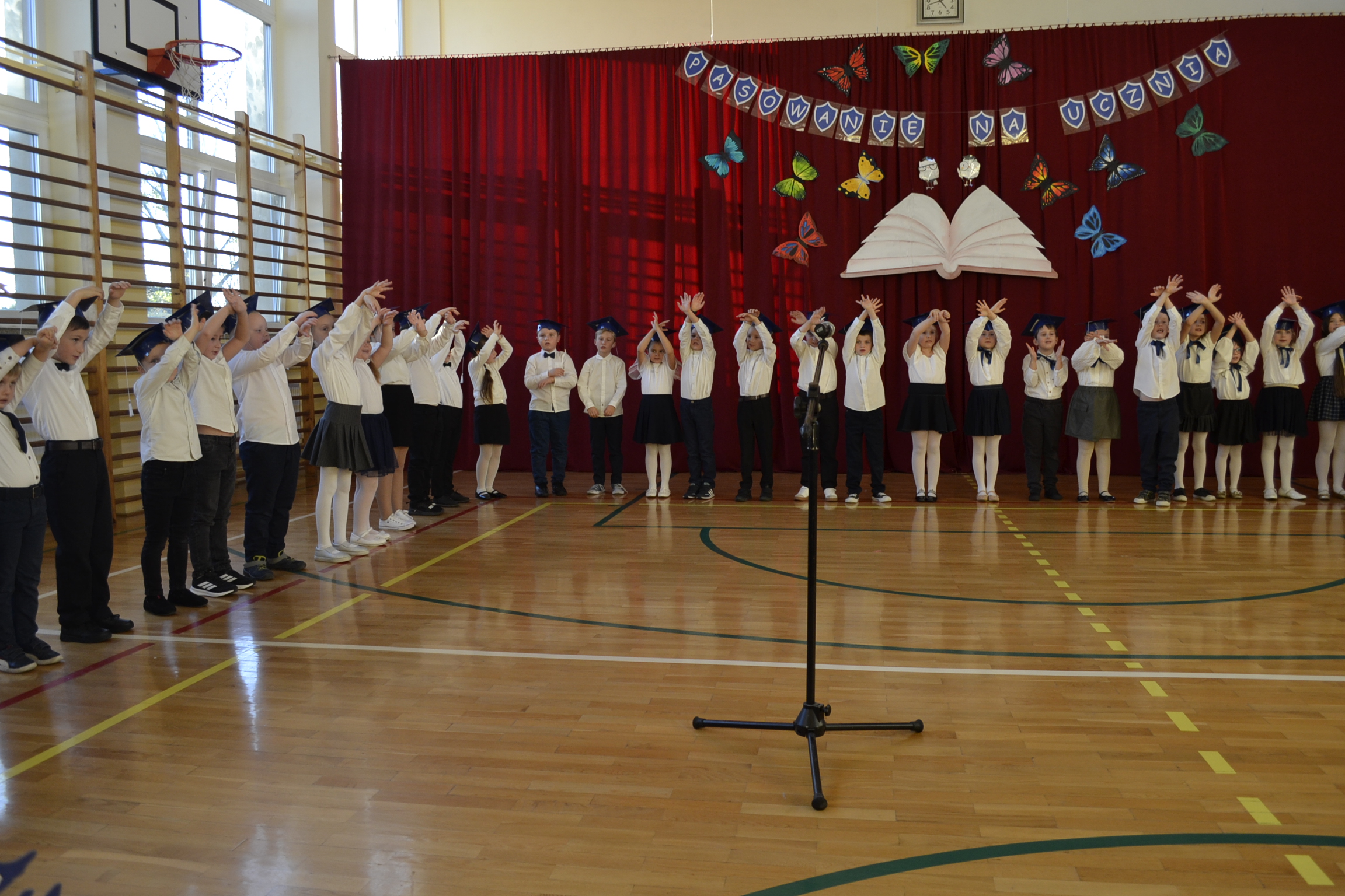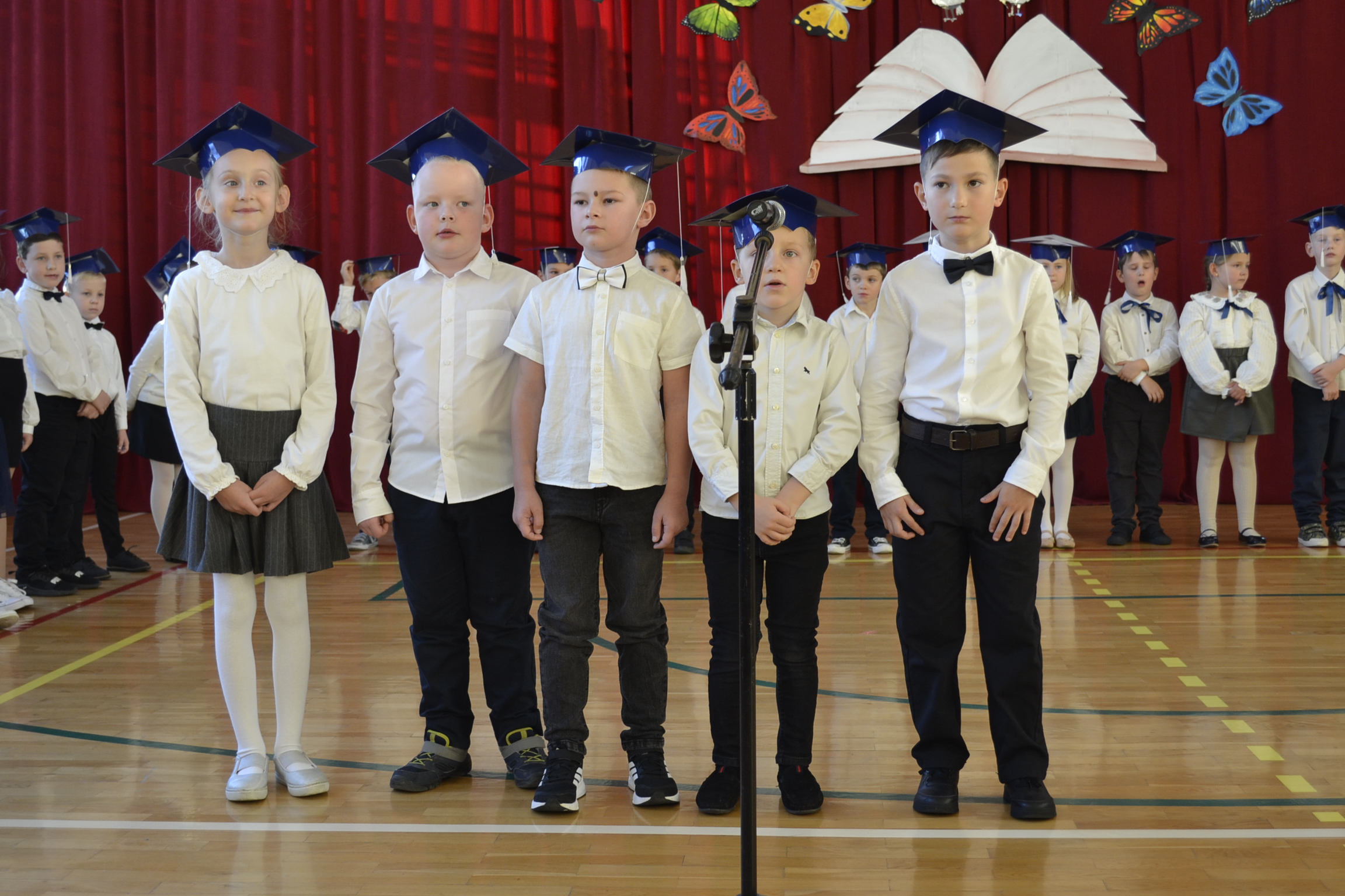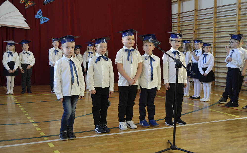 17 października 2024 r. odbyła się w naszej szkole uroczystość pasowania na ucznia. Jest to szczególny dzień, który na długo pozostanie w pamięci każdego ucznia klasy pierwszej. W tym dniu dzieci oficjalnie przyjęte zostały do grona uczniów szkoły. Podczas uroczystości pierwszoklasiści pokazali, że potrafią pięknie śpiewać i recytować wiersze. Najważniejszą częścią uroczystości, na którą wszyscy czekali, było ślubowanie oraz pasowanie wielkim ołówkiem przez pana dyrektora, Piotra Kłęka. Pierwszaki głośno i z przekonaniem przyrzekały być dobrymi i pilnymi uczniami oraz rzetelnie wypełniać swoje obowiązki, o czym przypominać im będą otrzymane dyplomy. Wszystkim pierwszoklasistom w tak ważnym dla nich dniu życzymy wielu sukcesów na nowej drodze obowiązków szkolnych.