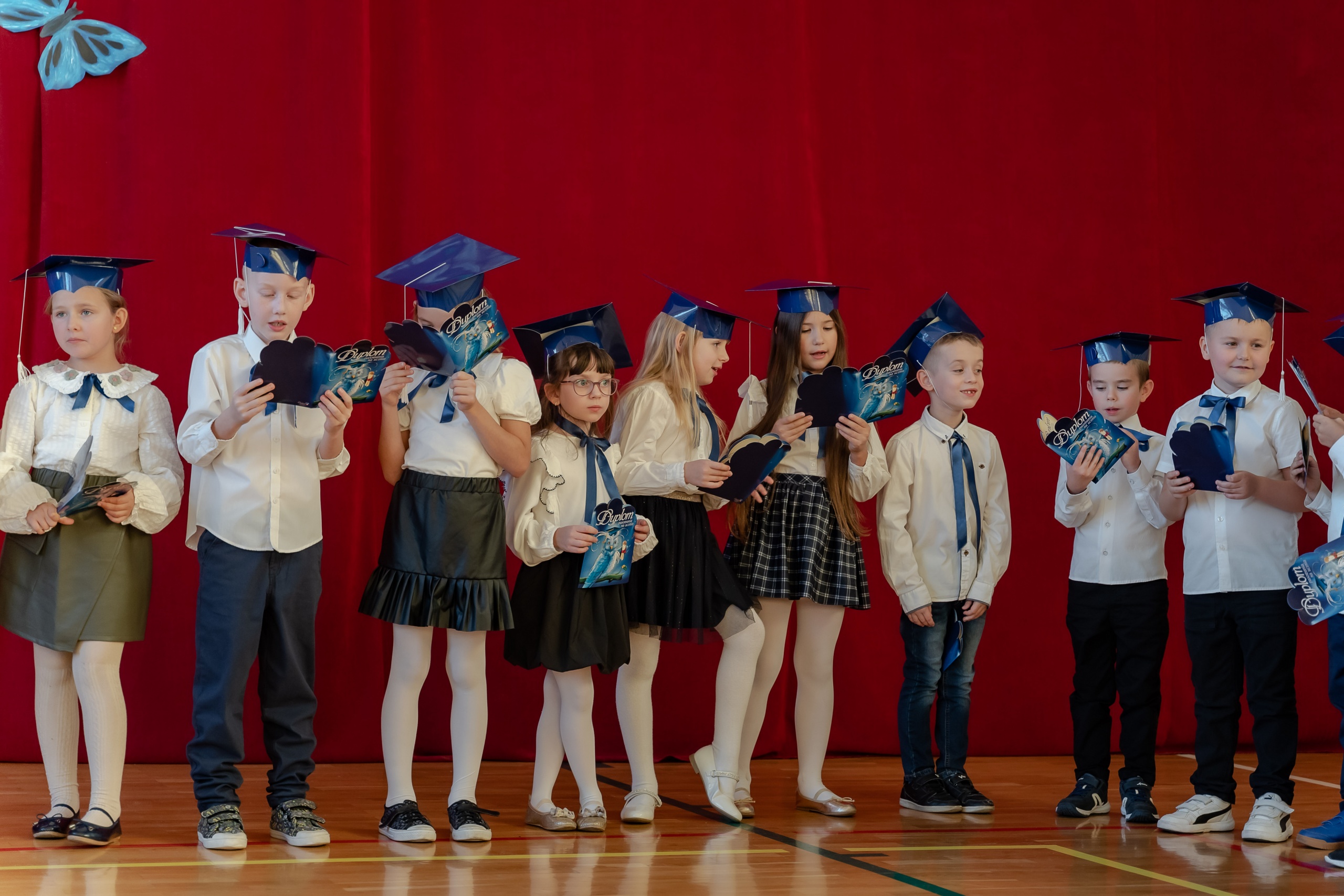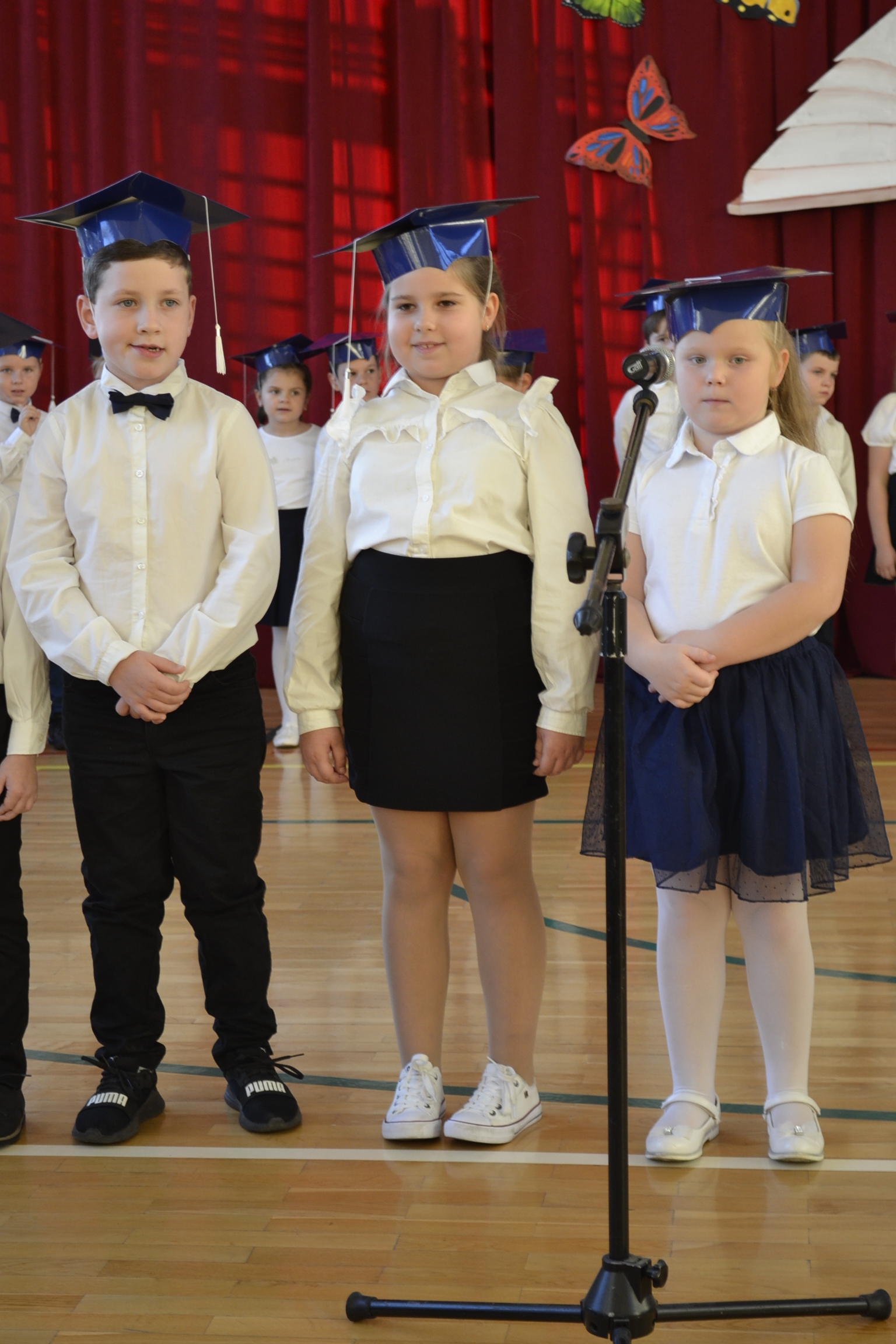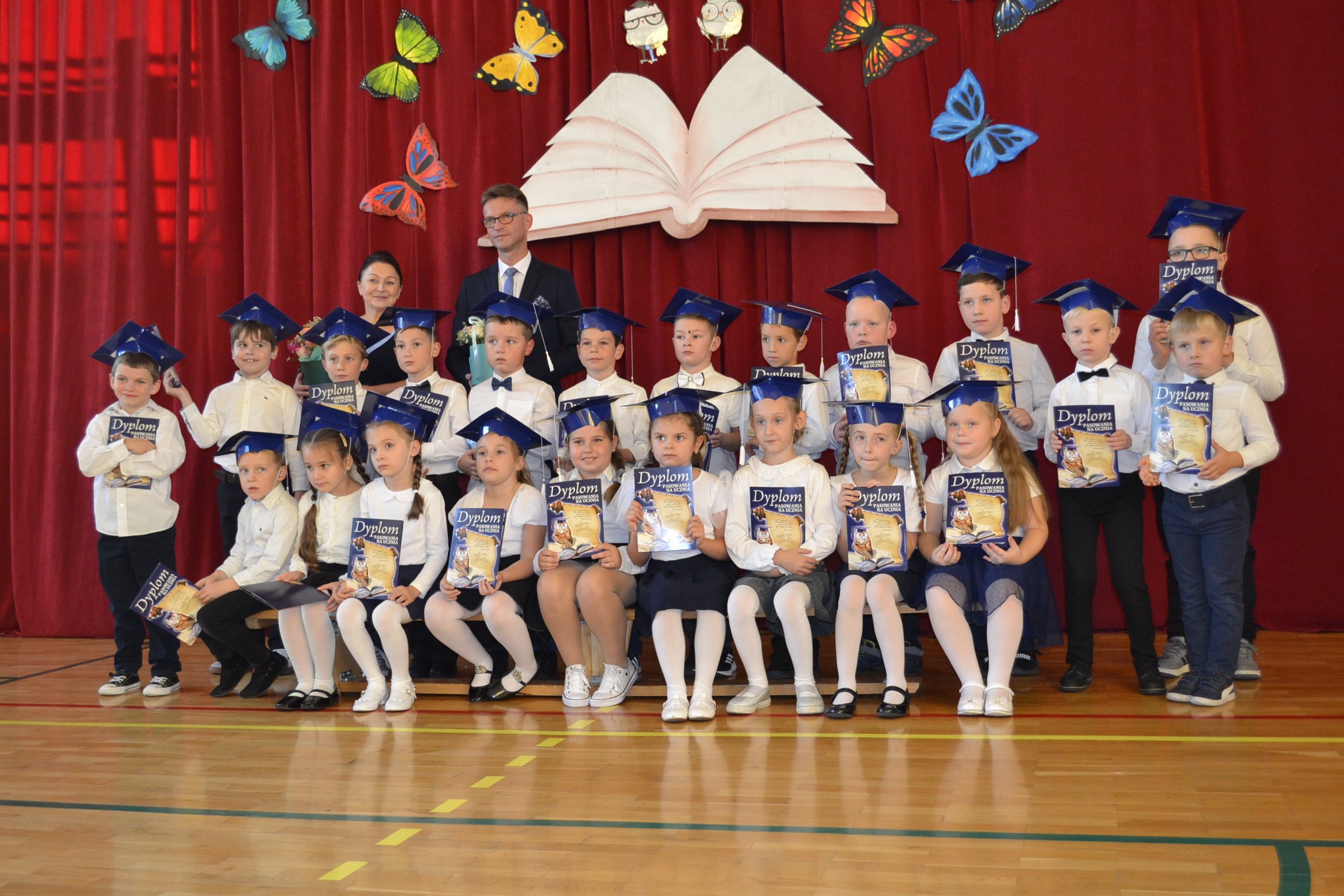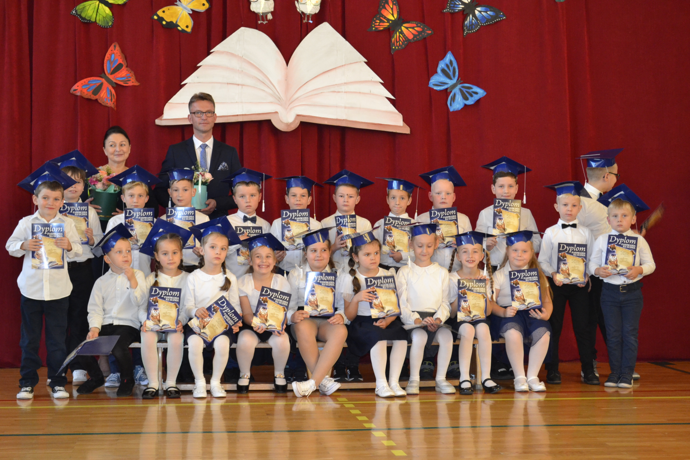 17 października 2024 r. odbyła się w naszej szkole uroczystość pasowania na ucznia. Jest to szczególny dzień, który na długo pozostanie w pamięci każdego ucznia klasy pierwszej. W tym dniu dzieci oficjalnie przyjęte zostały do grona uczniów szkoły. Podczas uroczystości pierwszoklasiści pokazali, że potrafią pięknie śpiewać i recytować wiersze. Najważniejszą częścią uroczystości, na którą wszyscy czekali, było ślubowanie oraz pasowanie wielkim ołówkiem przez pana dyrektora, Piotra Kłęka. Pierwszaki głośno i z przekonaniem przyrzekały być dobrymi i pilnymi uczniami oraz rzetelnie wypełniać swoje obowiązki, o czym przypominać im będą otrzymane dyplomy. Wszystkim pierwszoklasistom w tak ważnym dla nich dniu życzymy wielu sukcesów na nowej drodze obowiązków szkolnych.