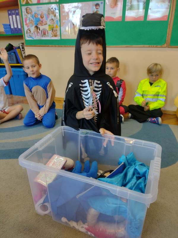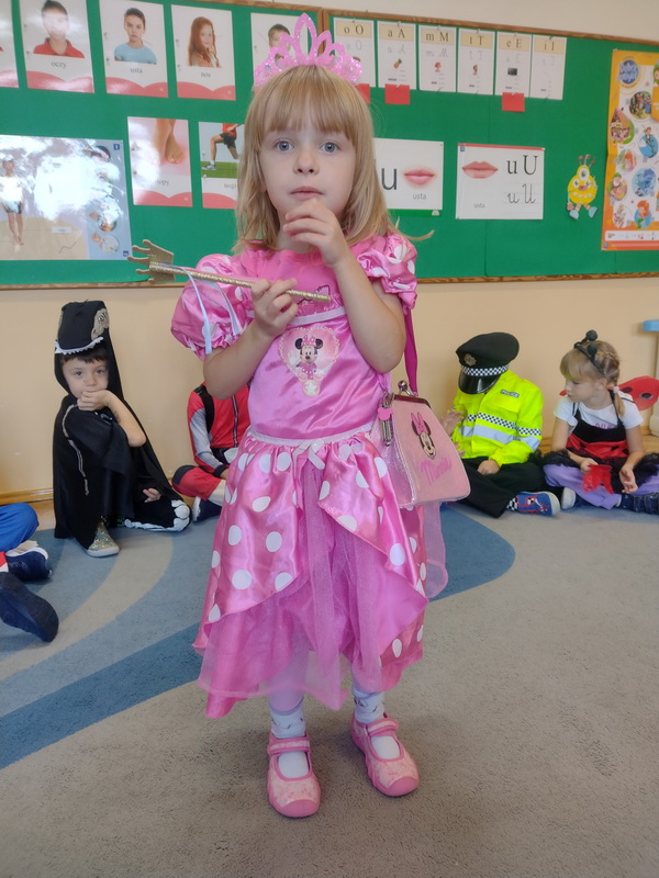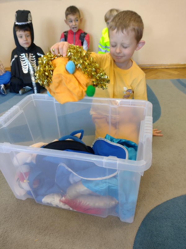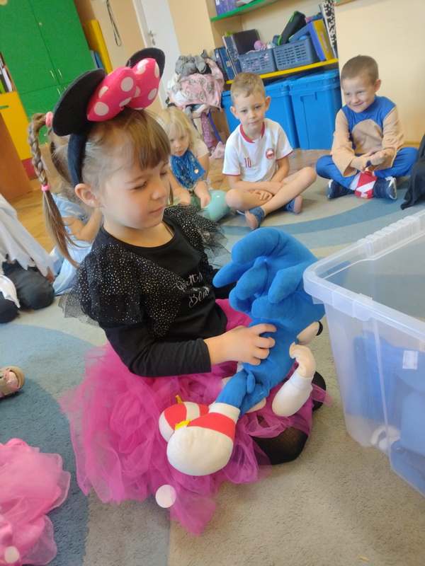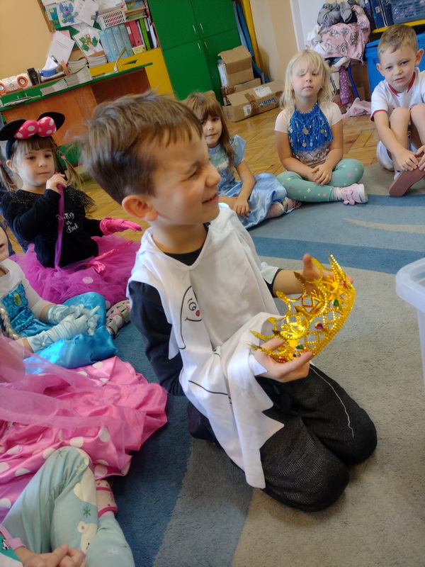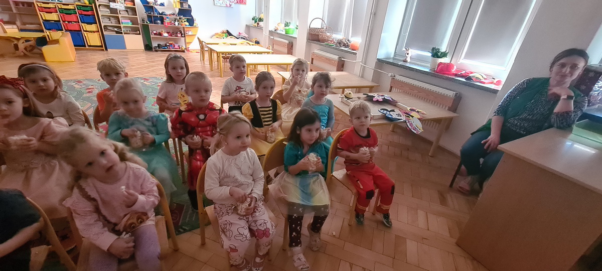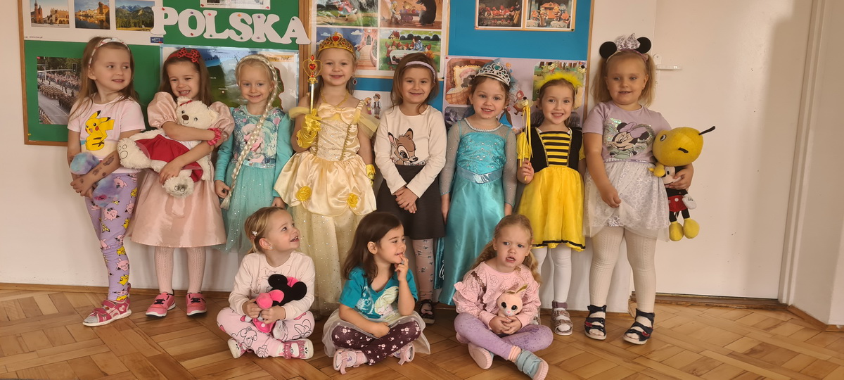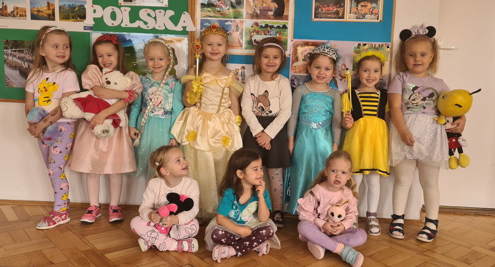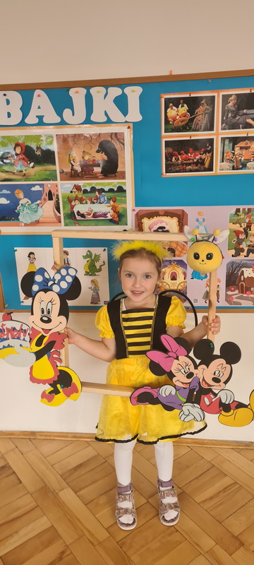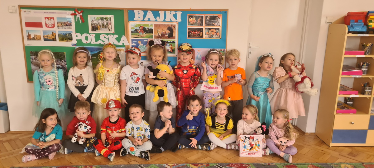 W tym roku obchody Międzynarodowego Dnia Postaci z Bajek odbyły się w grupie Pszczółek i Tygrysków. Był to dzień kolorowy i wesoły! Dzieci, przebrane w bajkowe stroje, uczestniczyły w konkursach i quizach. Wysłuchały fragmentów znanych bajek, a następnie rozpoznawały ich tytuły. Były zabawy wymagające wykazania się znajomością treści bajek, tych znanych i mniej znanych. Dzieci rozwiązywały m.in. zagadki, rozpoznawały bajkę po rekwizycie oraz po przeczytaniu fragmentu książki. Były muzyczne zabawy ruchowe oraz prezentacja przebrań. Dzieci brały też udział w bajkowych zajęciach z kodowania. Przedszkolaki bardzo dobrze znają bajki i świetnie radziły sobie z zadaniami. Seans bajkowy z popcornem był miłym akcentem bajkowego dnia.