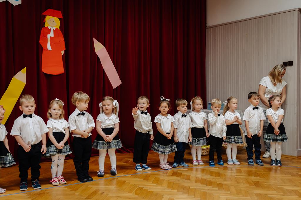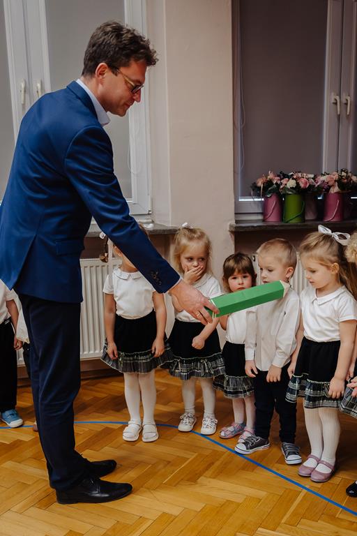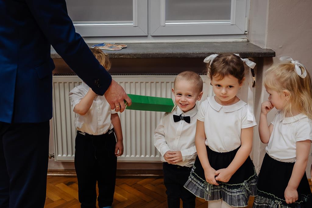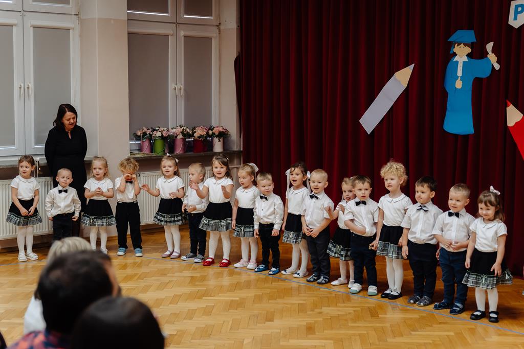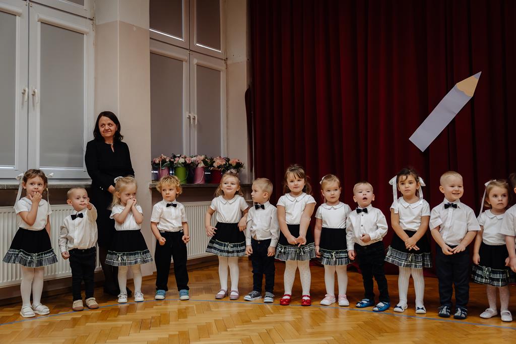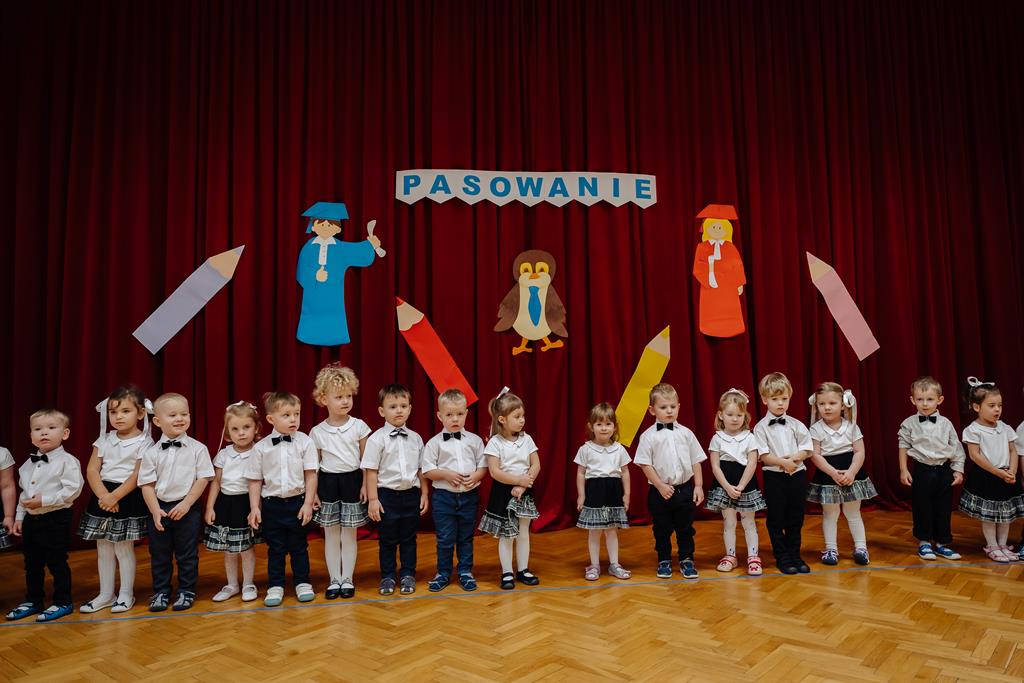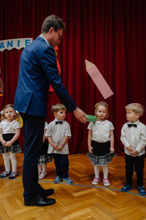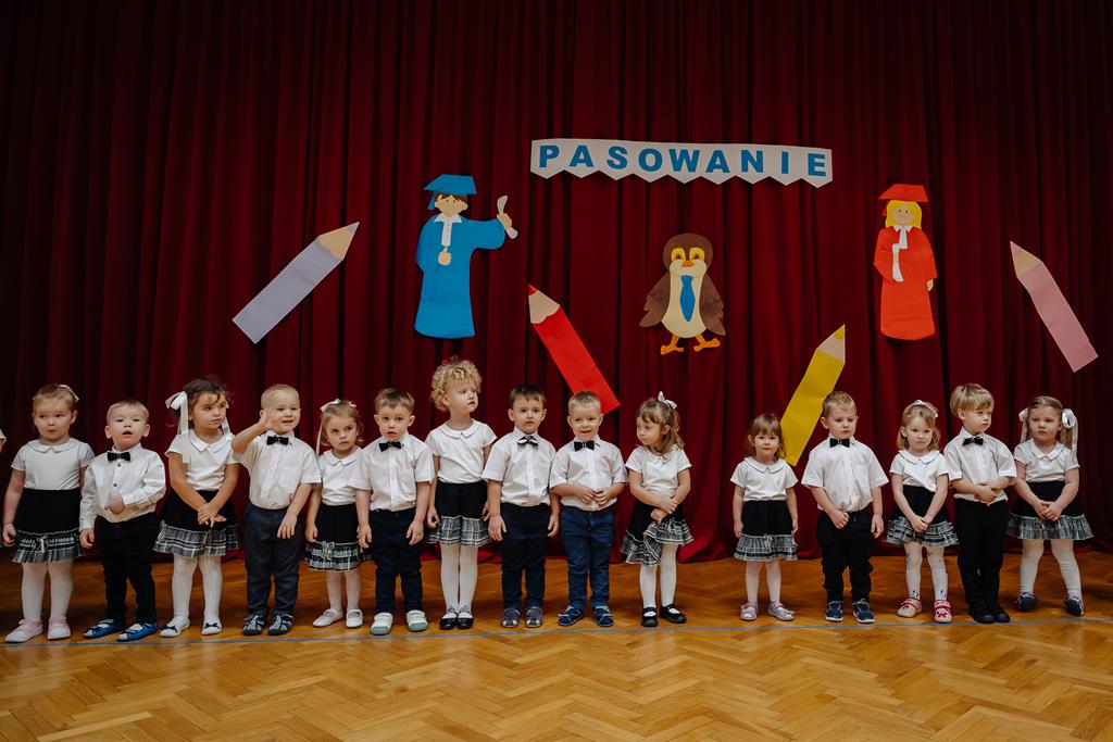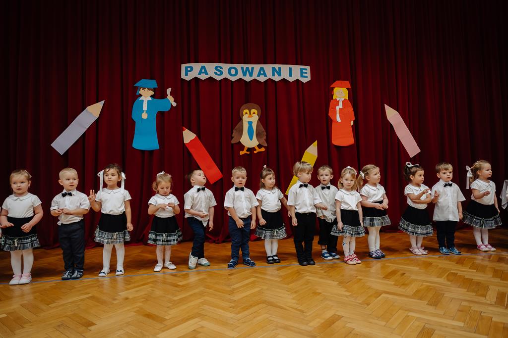 Zgromadzeni na uroczystości rodzice dzieci z grup Biedronki i Pszczółki mogli podziwiać umiejętności artystyczne naszych milusińskich. Najmłodsze przedszkolaki śpiewały piosenki, recytowały wiersze i zaprezentowały tańce: „Nie chcę cię znać” oraz „Grozik”. Punktem kulminacyjnym tych uroczystości był moment pasowania. Za sprawą pana dyrektora Piotra Kłęka i „czarodziejskiego ołówka”, nasze przedszkolaki stały się pełnoprawnymi członkami przedszkolnej społeczności. Na pamiątkę tego ważnego wydarzenia każde dziecko otrzymało dyplom oraz książeczkę i słodki upominek, ufundowany przez Radę Rodziców. Na zakończenie uroczystości odbyła się pamiątkowa sesja zdjęciowa. Witamy najmłodszych w progach naszego przedszkola!