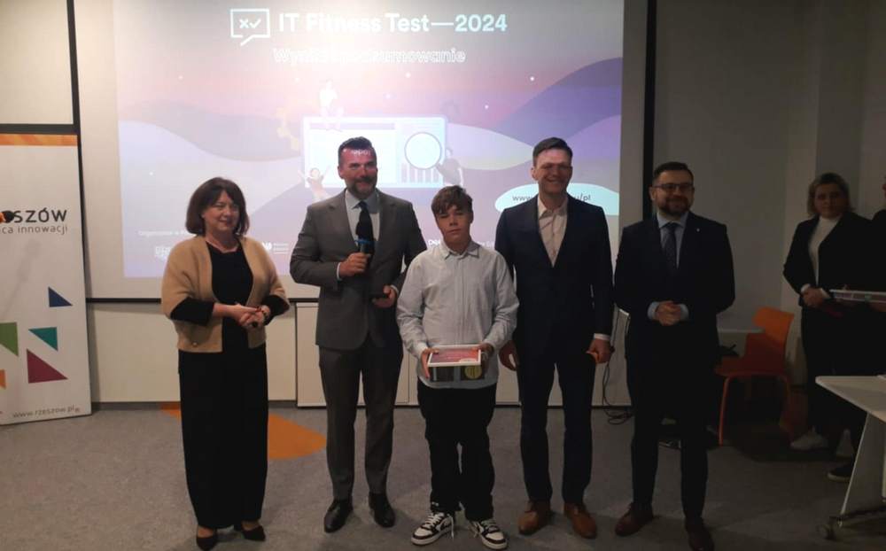 29 listopada w Centrum Innowacji Miejskich – Urban Lab odbyło się podsumowanie tegorocznej edycji IT Fitness Test 2024, podczas której uhonorowano wyróżniających się uczniów oraz zaangażowane szkoły. Z radością przyjęliśmy wiadomość, że w gronie laureatów testu znalazł się uczeń naszej szkoły Robert Kazanecki (kl. 8b), który rozwiązał test na poziomie 95%, zajmując tym samym trzecie miejsce. Robert otrzymał nagrodę i wyróżnienie od organizatorów testu. Serdecznie gratulujemy wspaniałego osiągnięcia i życzymy kolejnych sukcesów!