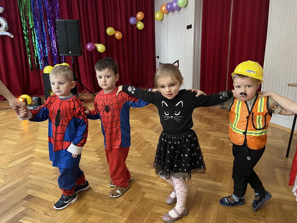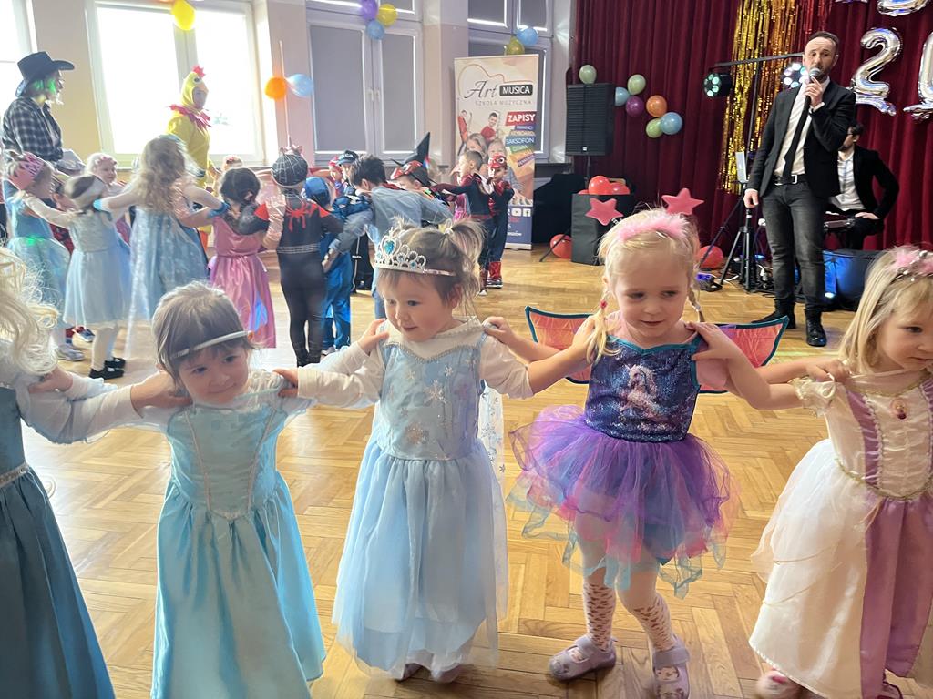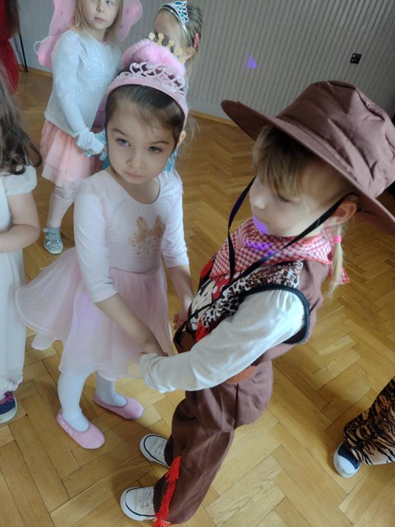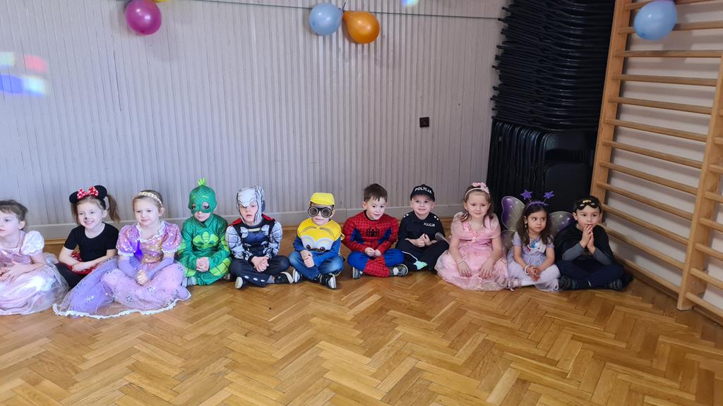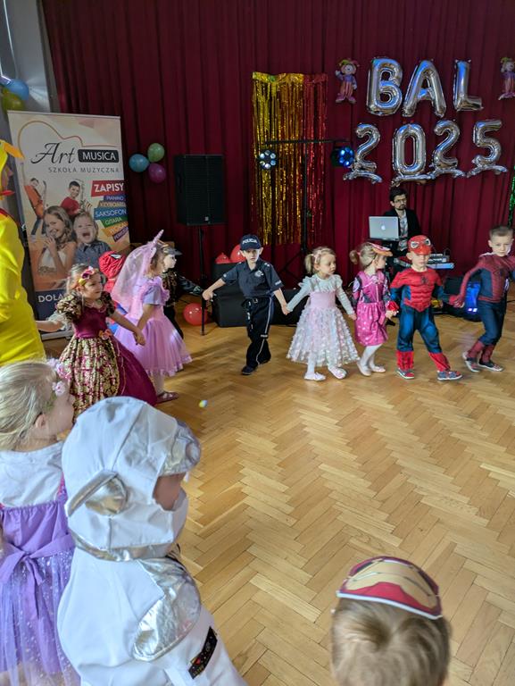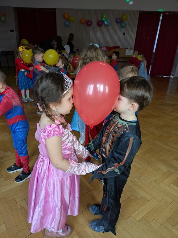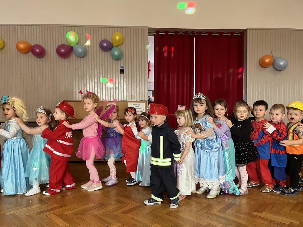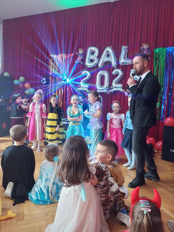 Zabawa rozpoczęła się od wspólnego powitania i prezentacji kostiumów. Następnie dzieci uczestniczyły w różnorodnych grach i konkurencjach, które wymagały zręczności, sprytu i współpracy. Nie zabrakło także rywalizacji drużynowej, w której dzieci mogły wykazać się zwinnością i pomysłowością. Oczywiście, bal karnawałowy nie mógłby się odbyć bez tańców! Przedszkolaki bawiły się w rytmie największych hitów.