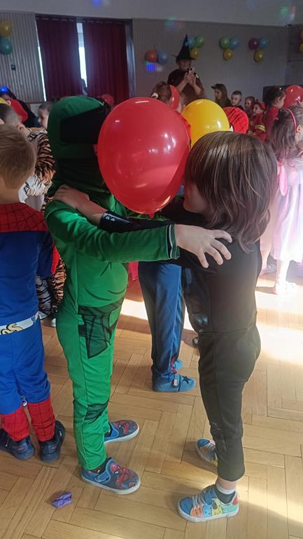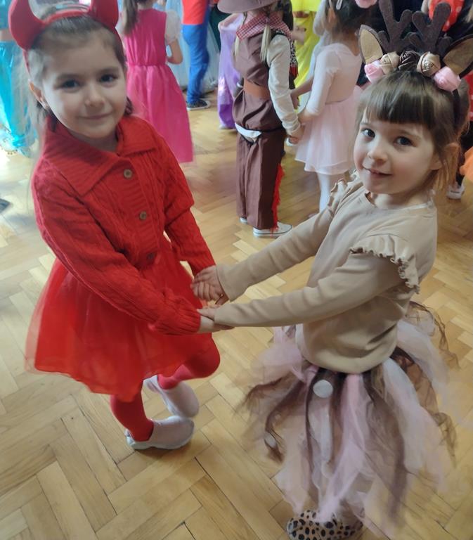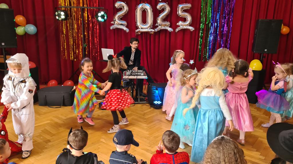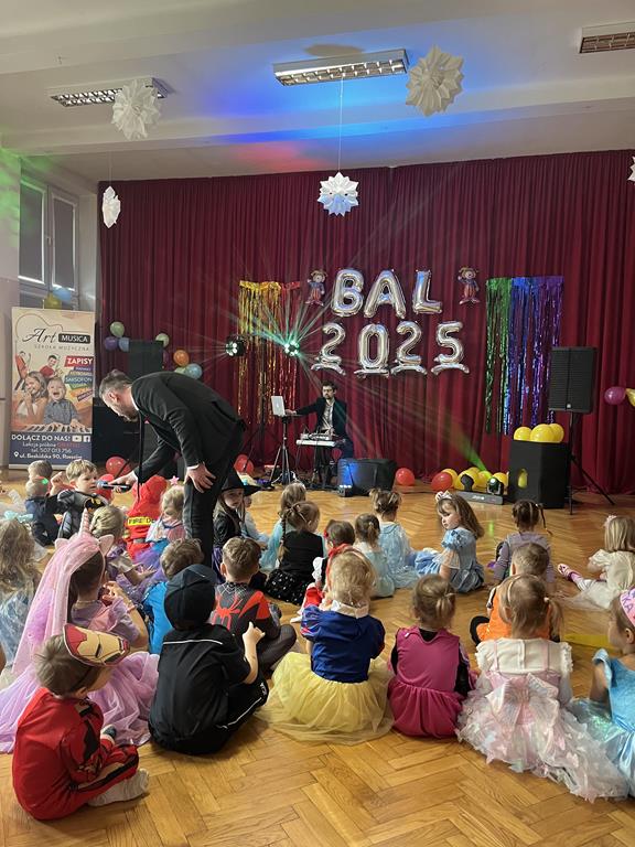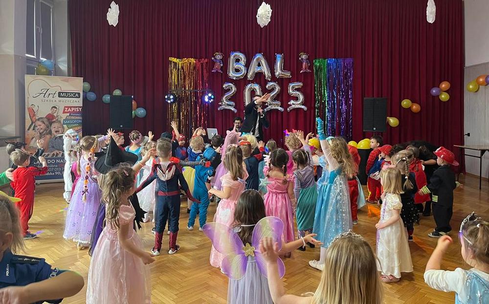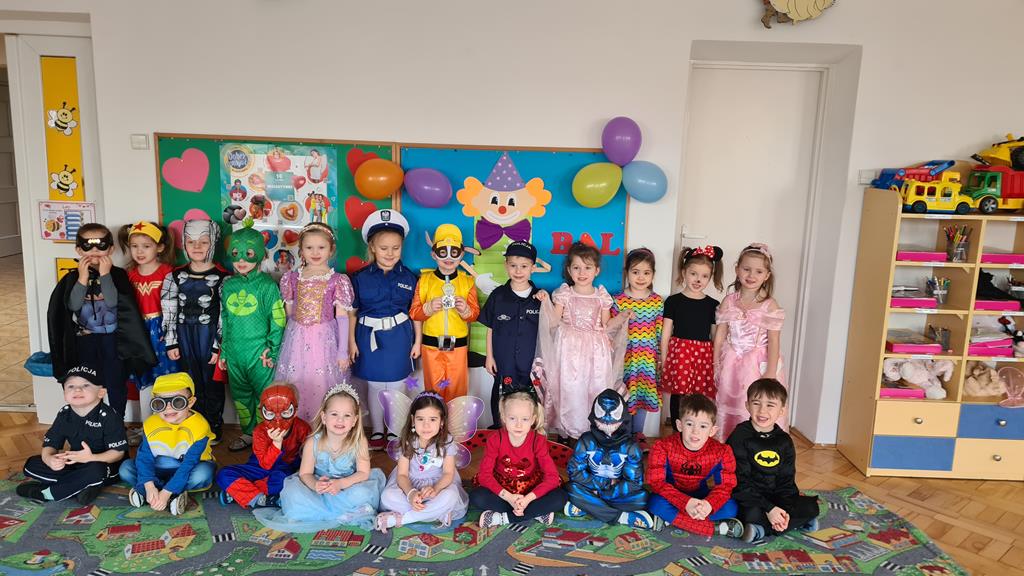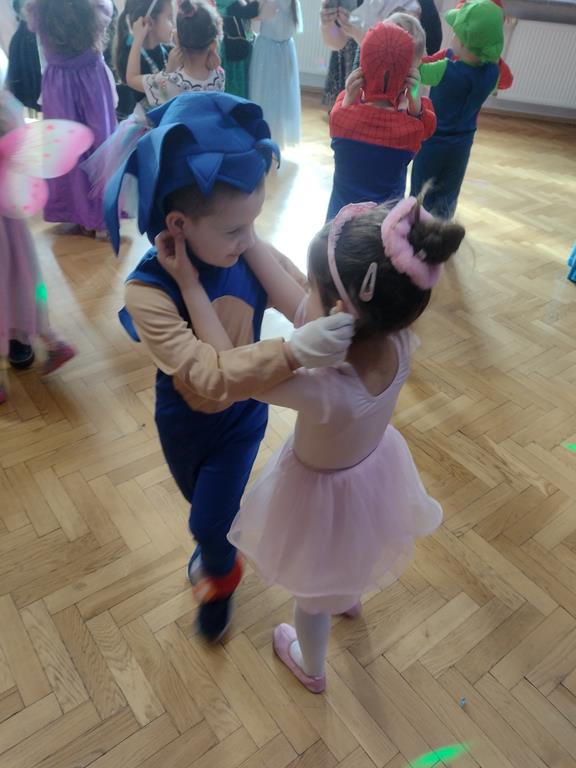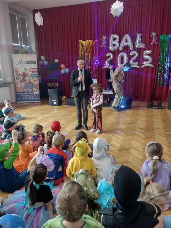 Zabawa rozpoczęła się od wspólnego powitania i prezentacji kostiumów. Następnie dzieci uczestniczyły w różnorodnych grach i konkurencjach, które wymagały zręczności, sprytu i współpracy. Nie zabrakło także rywalizacji drużynowej, w której dzieci mogły wykazać się zwinnością i pomysłowością. Oczywiście, bal karnawałowy nie mógłby się odbyć bez tańców! Przedszkolaki bawiły się w rytmie największych hitów.
