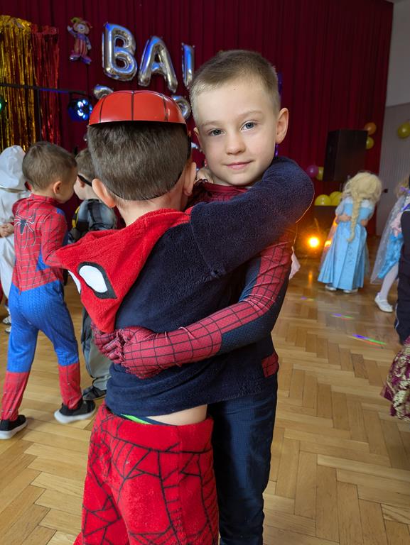 Bal karnawałowy – radosna zabawa pełna wrażeń! 13 lutego odbył się bal karnawałowy, który dostarczył dzieciom mnóstwo radości, śmiechu i niezapomnianych wrażeń! Wszystkie grupy wzięły udział w tym wyjątkowym wydarzeniu, przebrane w kolorowe, bajkowe stroje. W salach i na korytarzach można było spotkać wróżki, księżniczki, superbohaterów, piratów, zwierzątka i wiele innych, barwnych postaci.