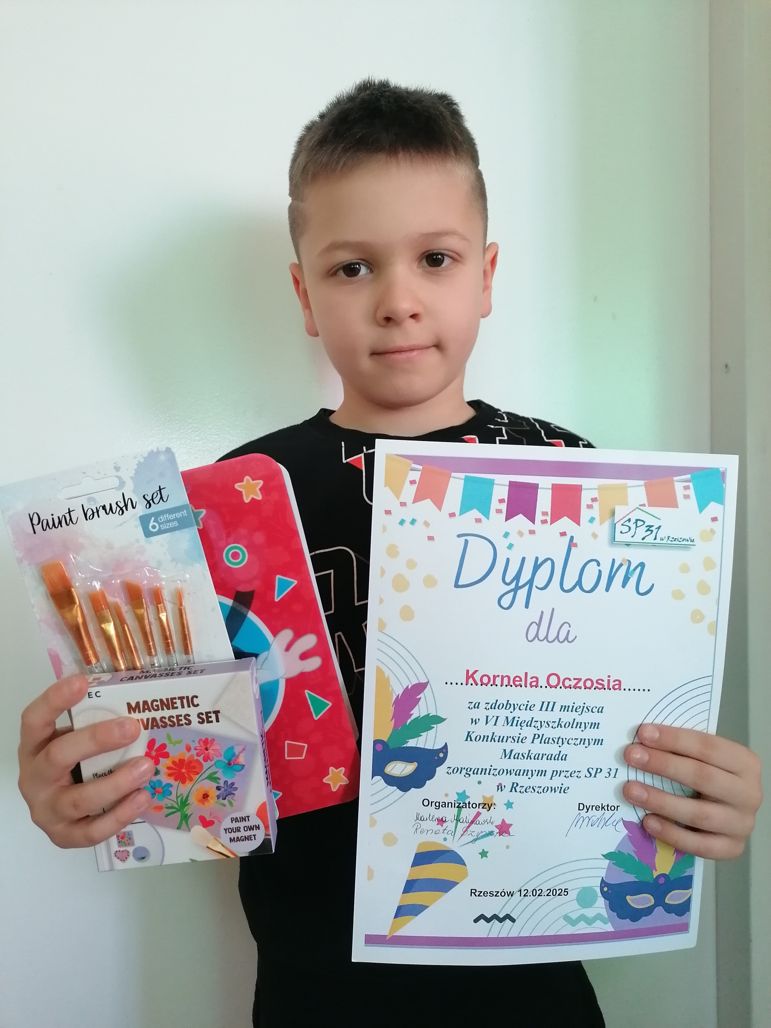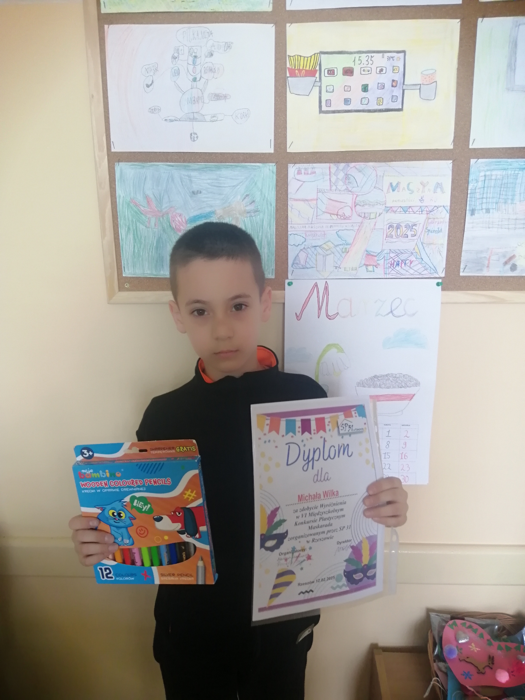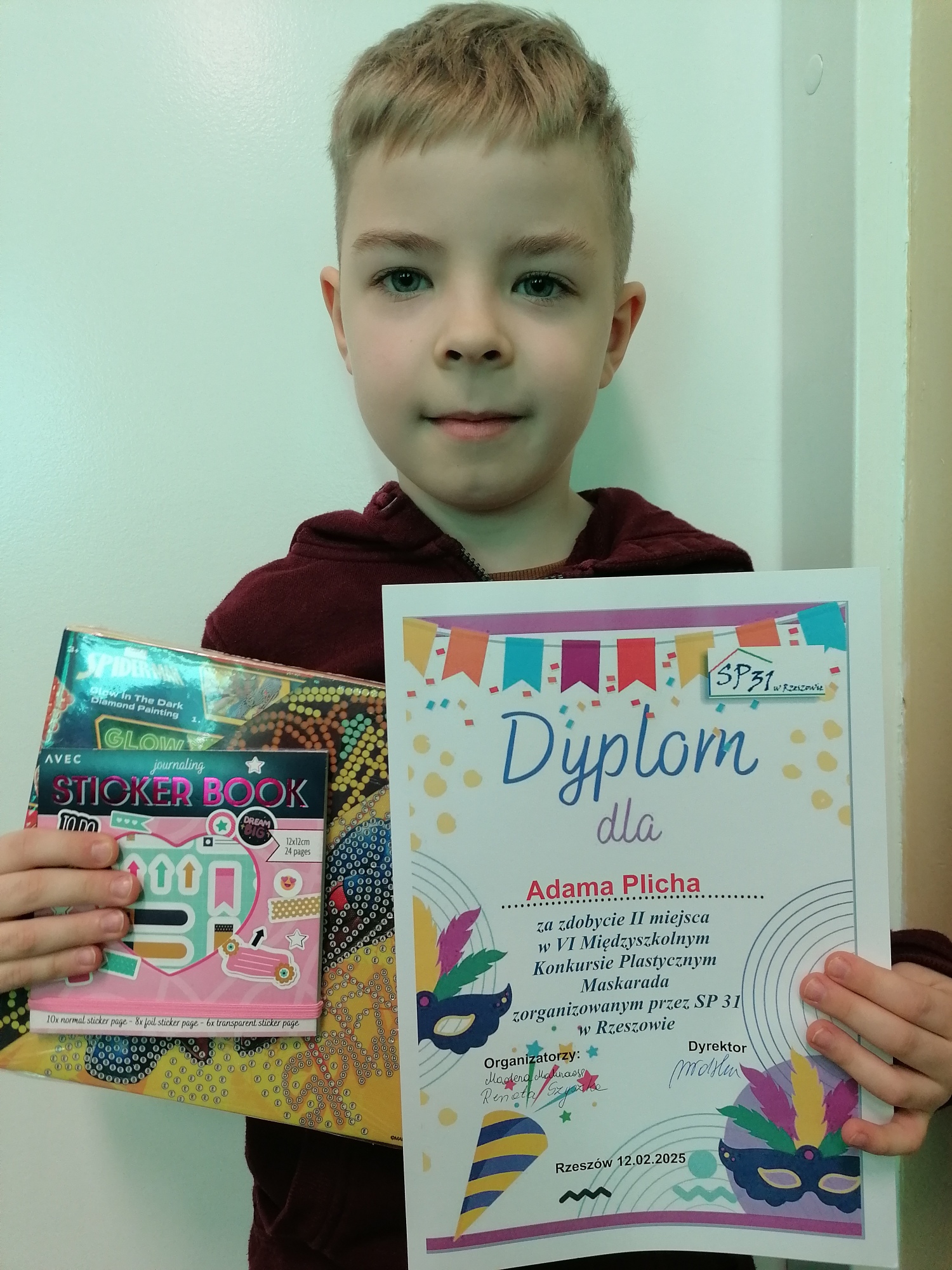 Miło nam poinformować, iż uczeń klasy 2b, Adam Pilch otrzymał nagrodę za zajęcie II miejsca w VI Międzyszkolnym Konkursie Plastycznym „Maskarada – wachlarz”, organizowanym przez Szkołę Podstawową nr 31 w Rzeszowie. W tym samym konkursie uczeń klasy 2c, Kornel Oczoś zdobył III miejsce, a wyróżnienie przypadło Michałowi Wilkowi z klasy 2a.