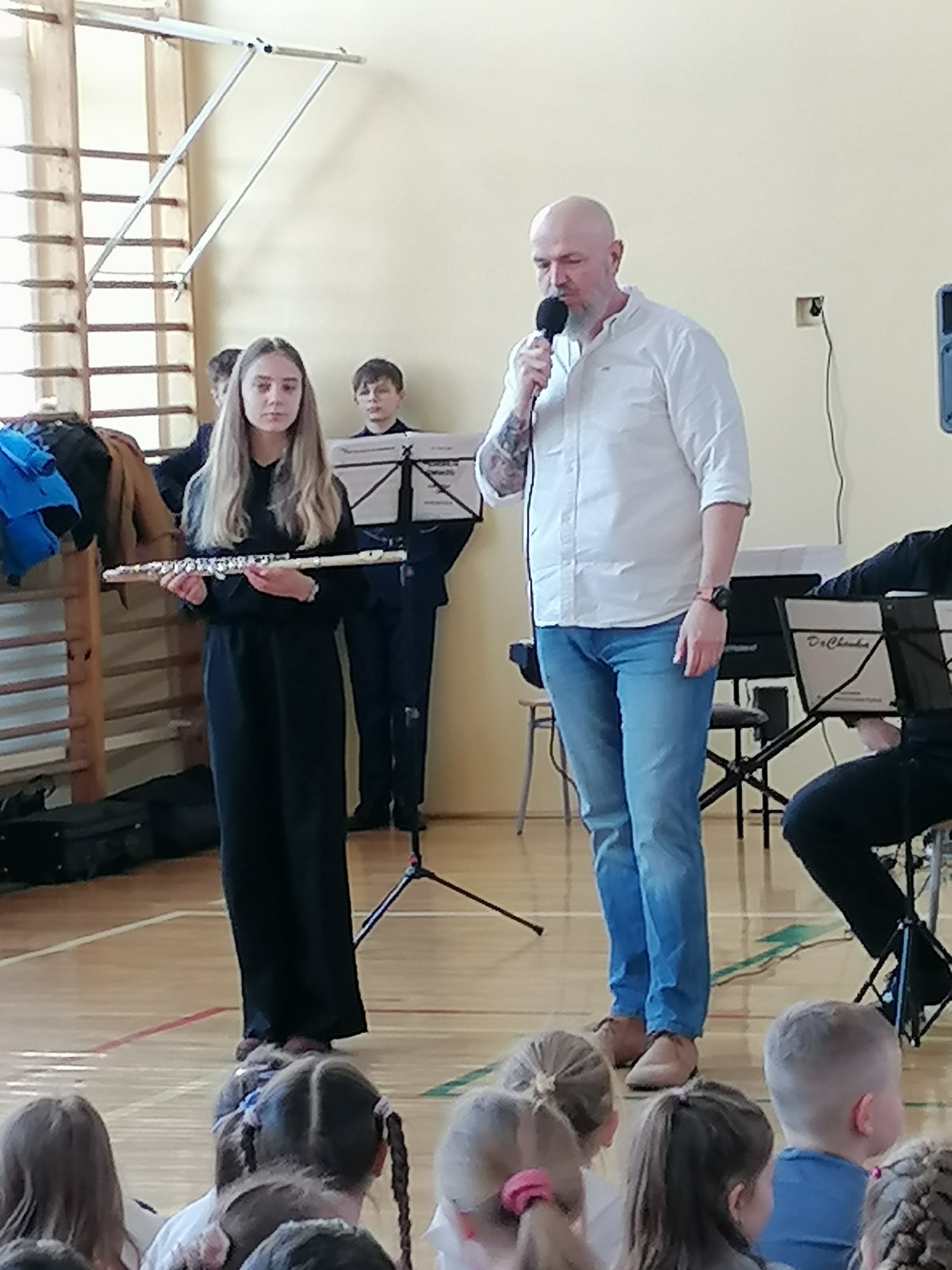 19 marca w naszej szkole odbył się koncert w wykonaniu uczniów oraz nauczycieli z Zespołu Szkół Muzycznych nr 2 im. Wojciecha Kilara w Rzeszowie. Podczas spotkania z zaproszonymi gośćmi dzieci poznały właściwości akustyczne i techniczne wybranych instrumentów.