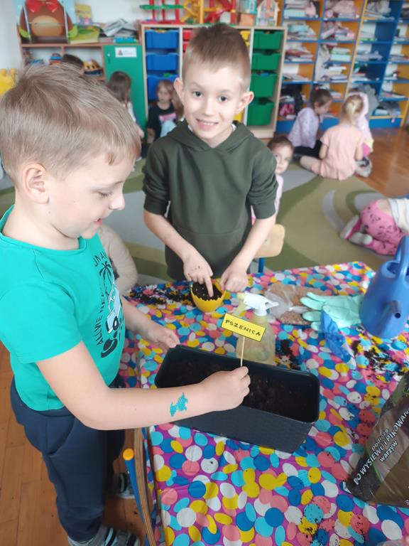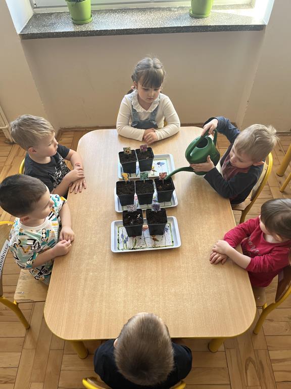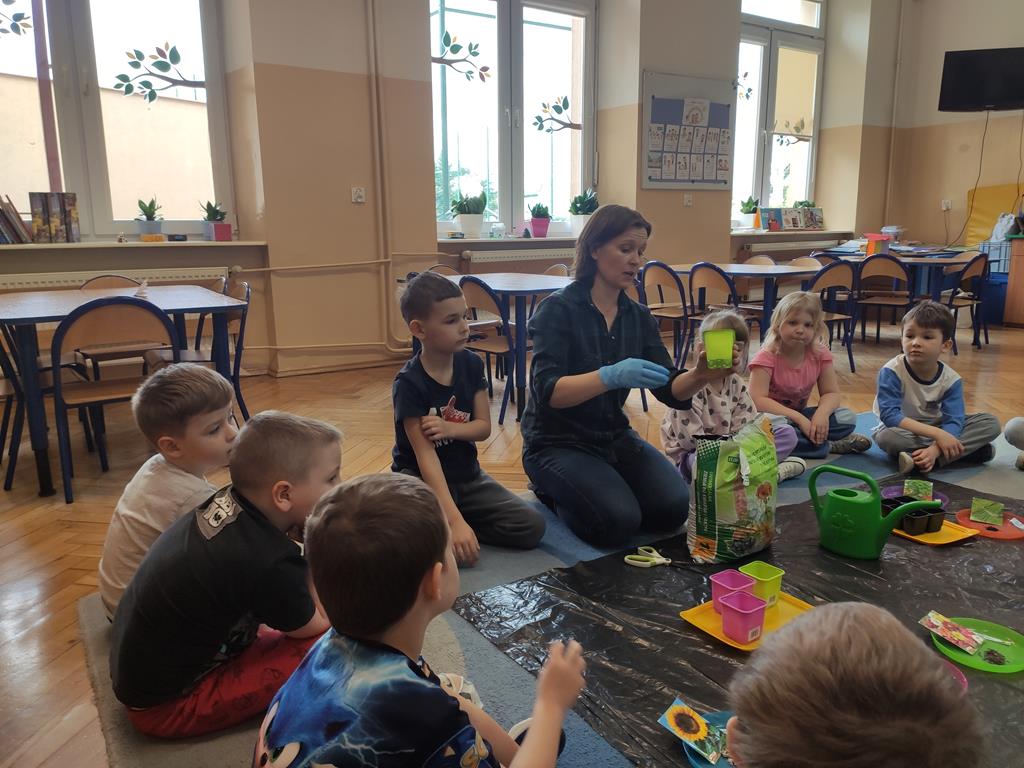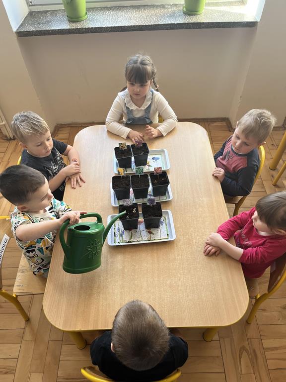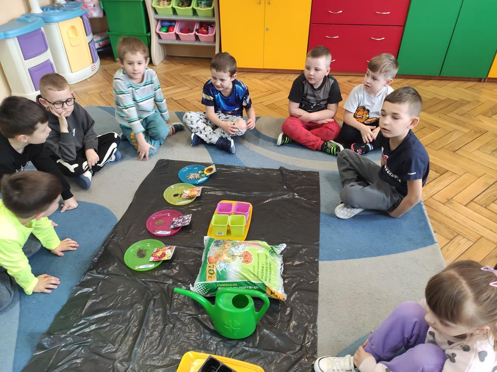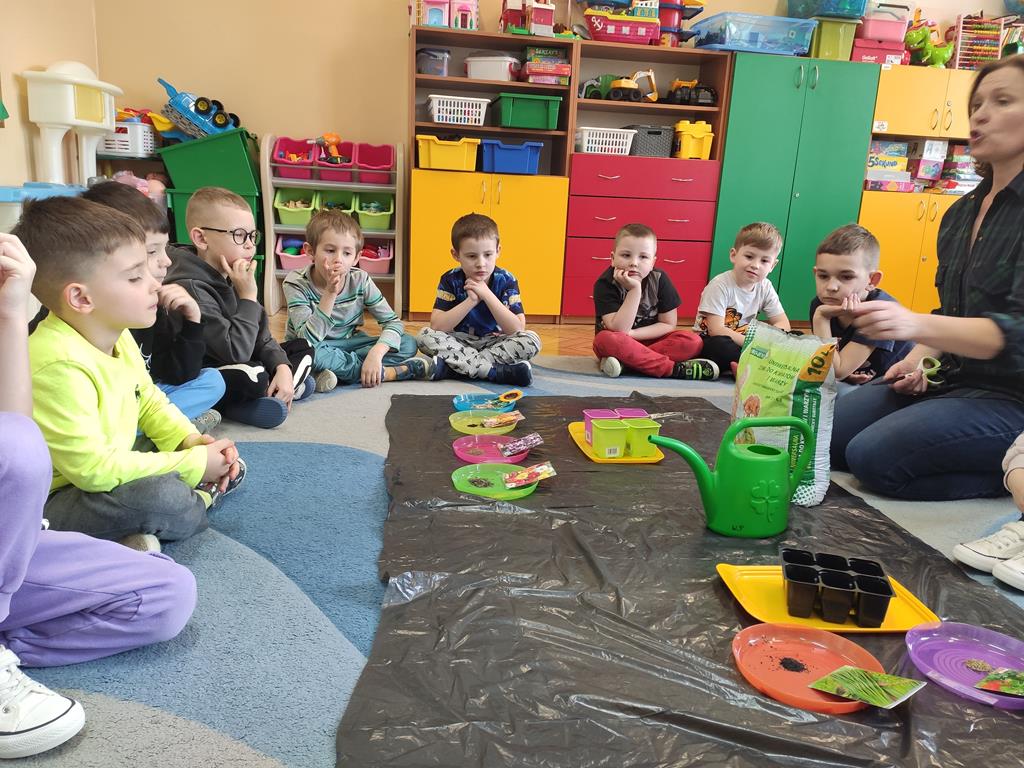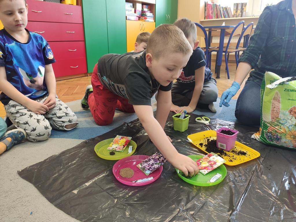 Jest to piękna pora roku, którą możemy rozbudzić u dzieci zainteresowanie zmianami zachodzącymi w przyrodzie, toteż przedszkolaki sadziły oraz siały różnorodne nasiona: aksamitki, rzeżuchę, pszenicę, cebulkę, fasolę i pietruszkę. W naszych kącikach pojawiły się również piękne kwiaty oraz pnącza.
