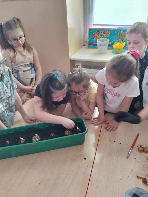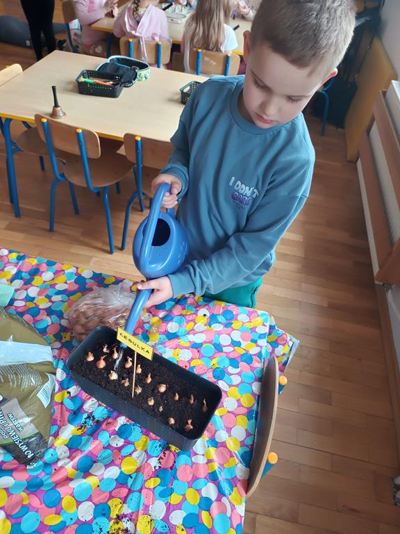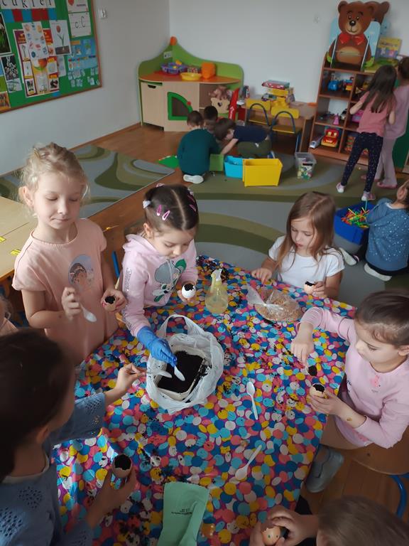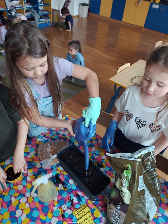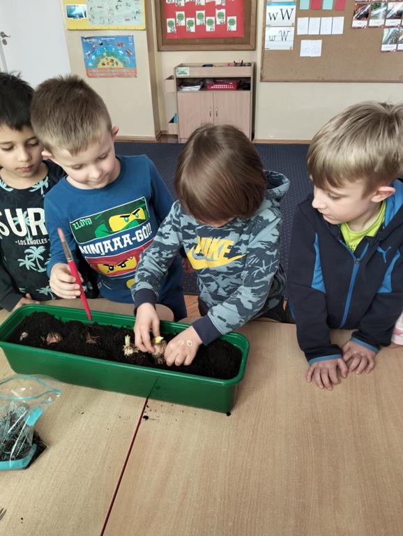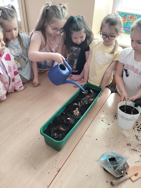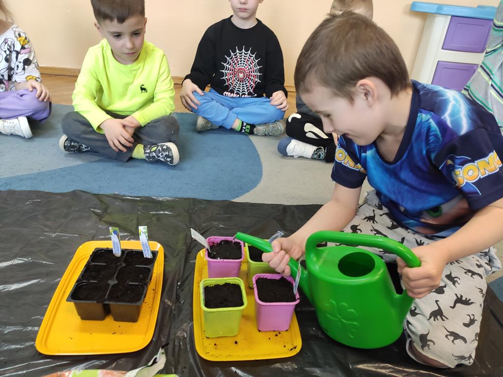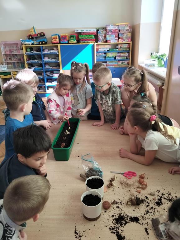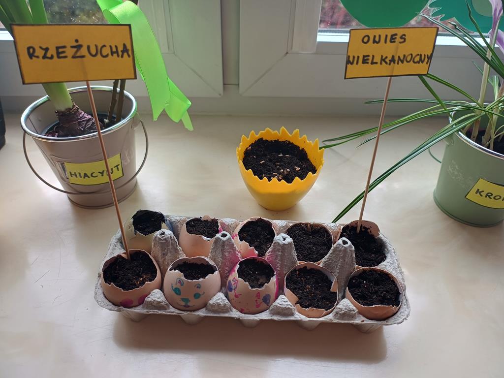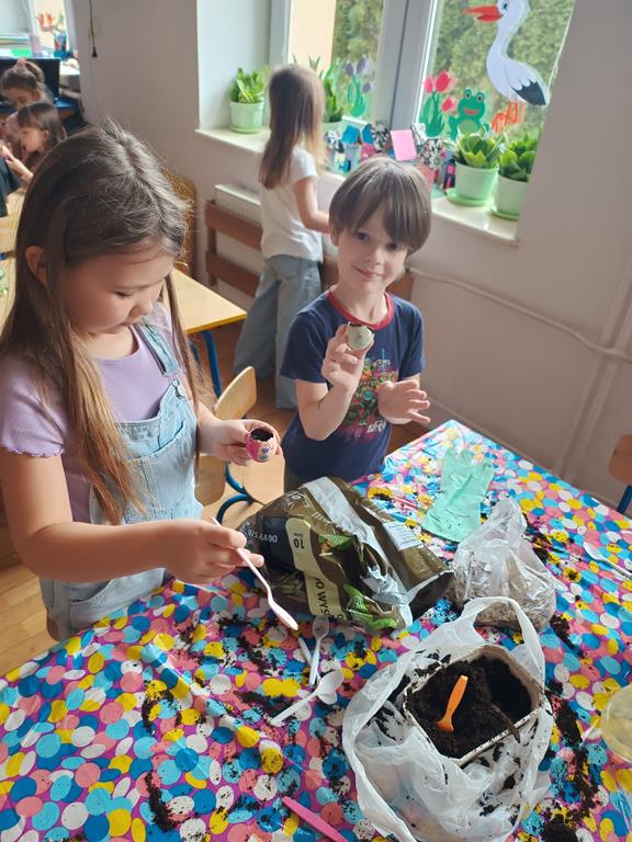 Jest to piękna pora roku, którą możemy rozbudzić u dzieci zainteresowanie zmianami zachodzącymi w przyrodzie, toteż przedszkolaki sadziły oraz siały różnorodne nasiona: aksamitki, rzeżuchę, pszenicę, cebulkę, fasolę i pietruszkę. W naszych kącikach pojawiły się również piękne kwiaty oraz pnącza.