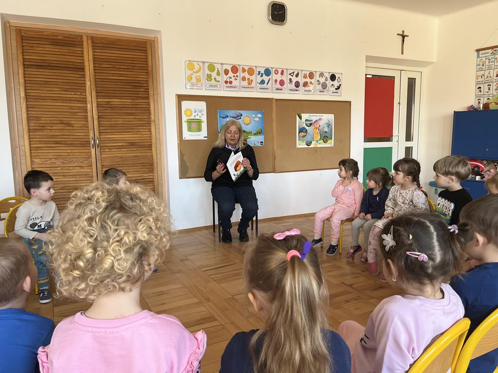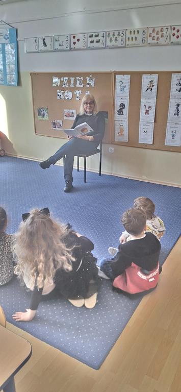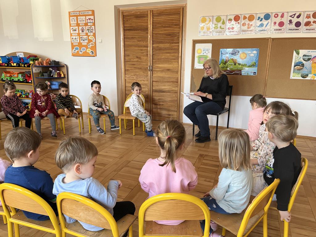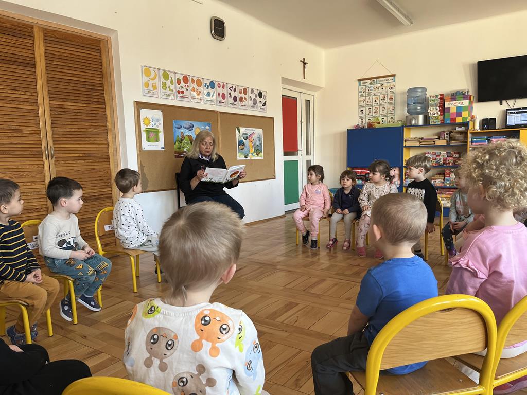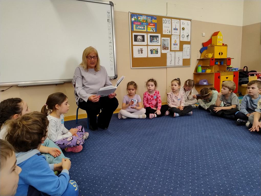 W marcu, w ramach ogólnopolskiej akcji „Cała Polska czyta dzieciom”, przedszkolaki z grup: Biedronki, Pszczółki, Smerfy i Misie, gościły w swoich salach panią bibliotekarkę Dorotę Czernik. Podczas spotkań dzieci miały okazję przenieść się w fascynujący świat książek. Celem wizyt było rozbudzenie ich zainteresowania literaturą oraz zachęcenie do odkrywania radości płynącej z czytania.