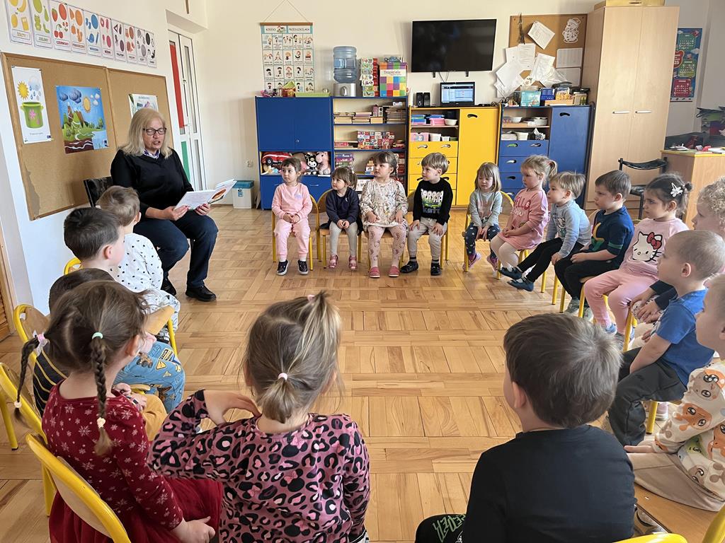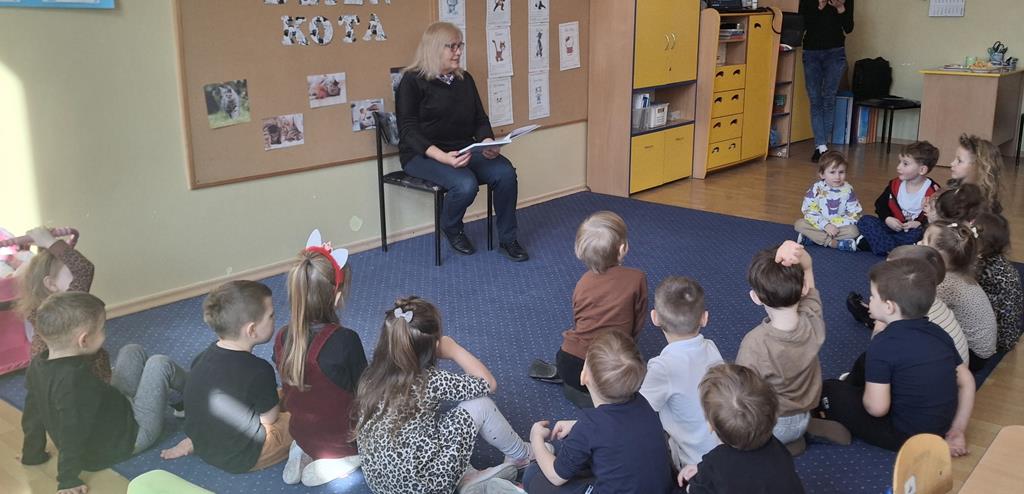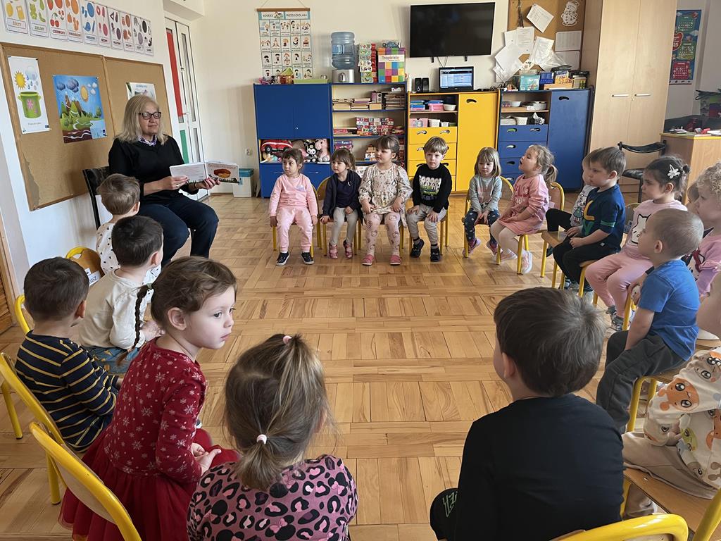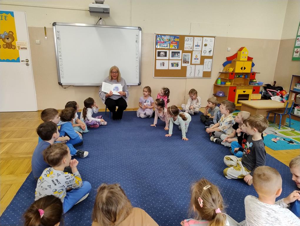 W marcu, w ramach ogólnopolskiej akcji „Cała Polska czyta dzieciom”, przedszkolaki z grup: Biedronki, Pszczółki, Smerfy i Misie, gościły w swoich salach panią bibliotekarkę Dorotę Czernik. Podczas spotkań dzieci miały okazję przenieść się w fascynujący świat książek. Celem wizyt było rozbudzenie ich zainteresowania literaturą oraz zachęcenie do odkrywania radości płynącej z czytania.