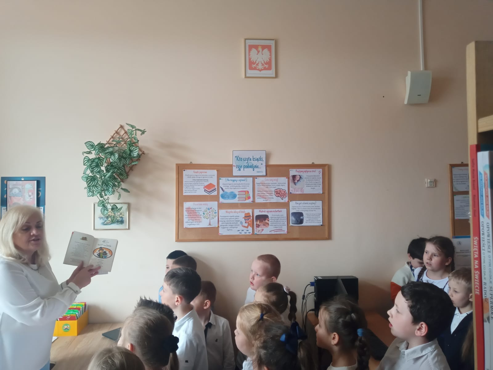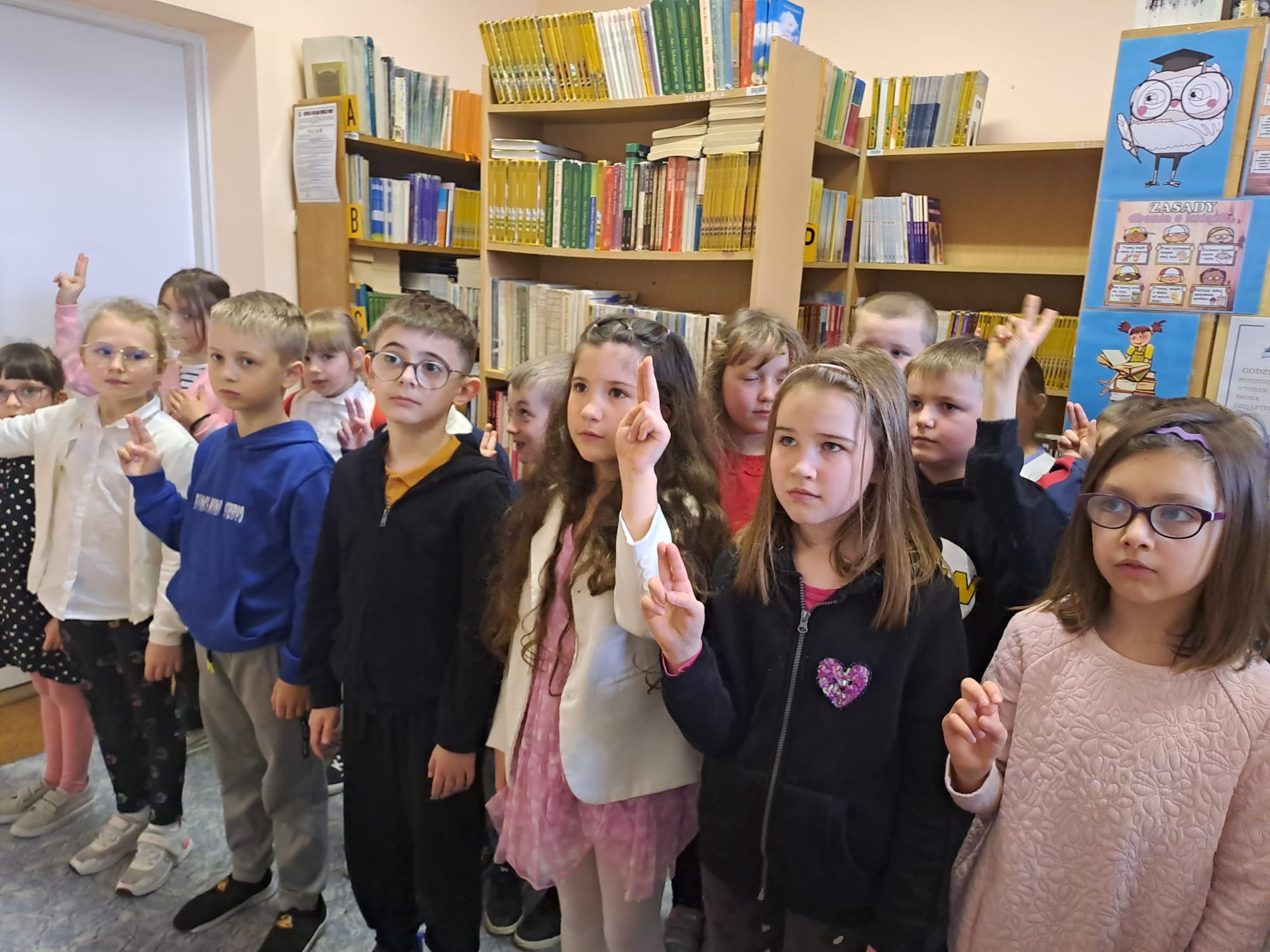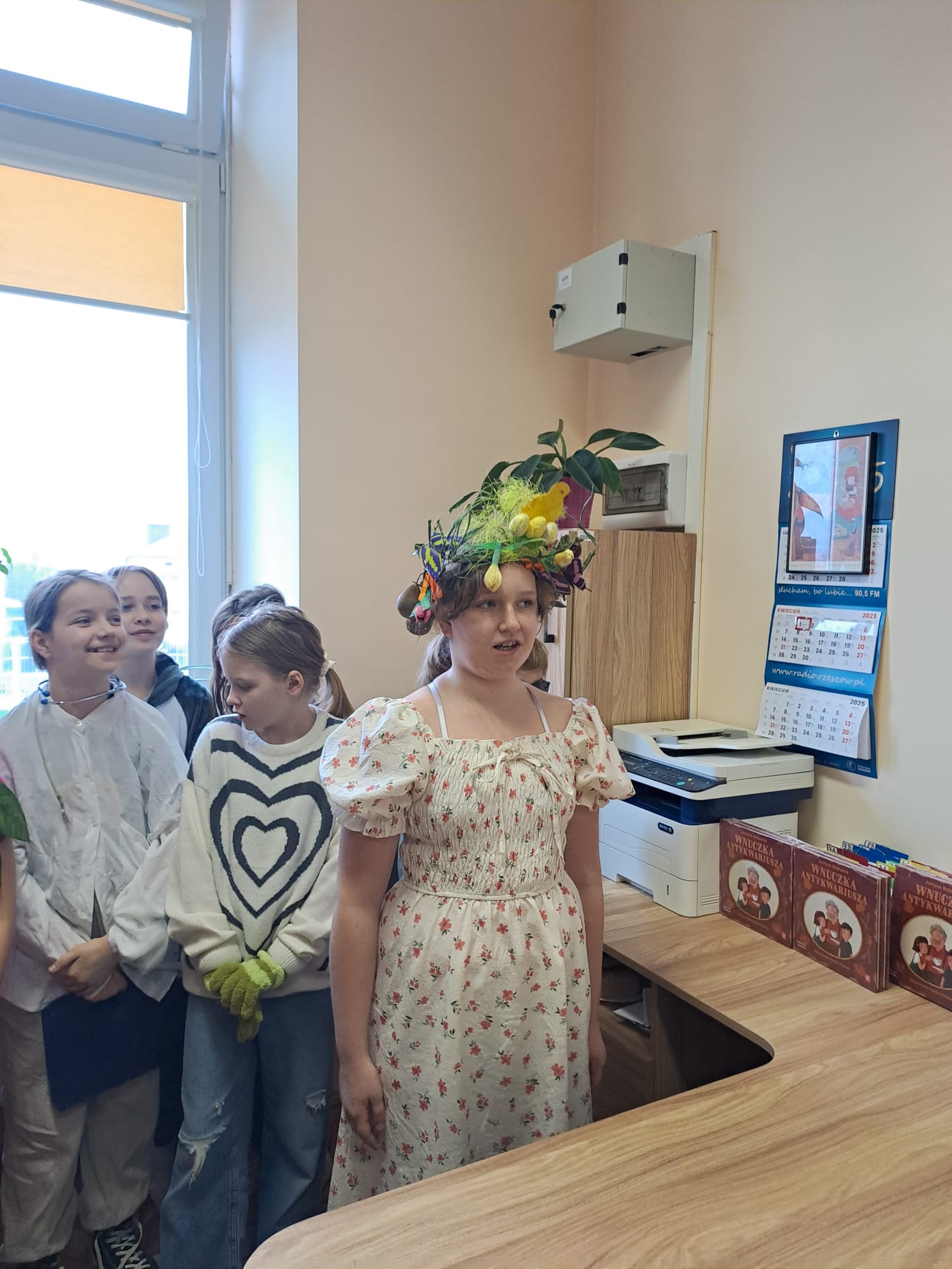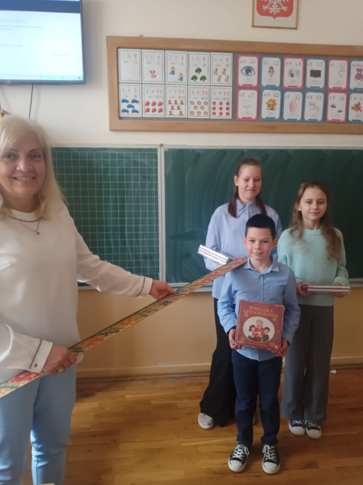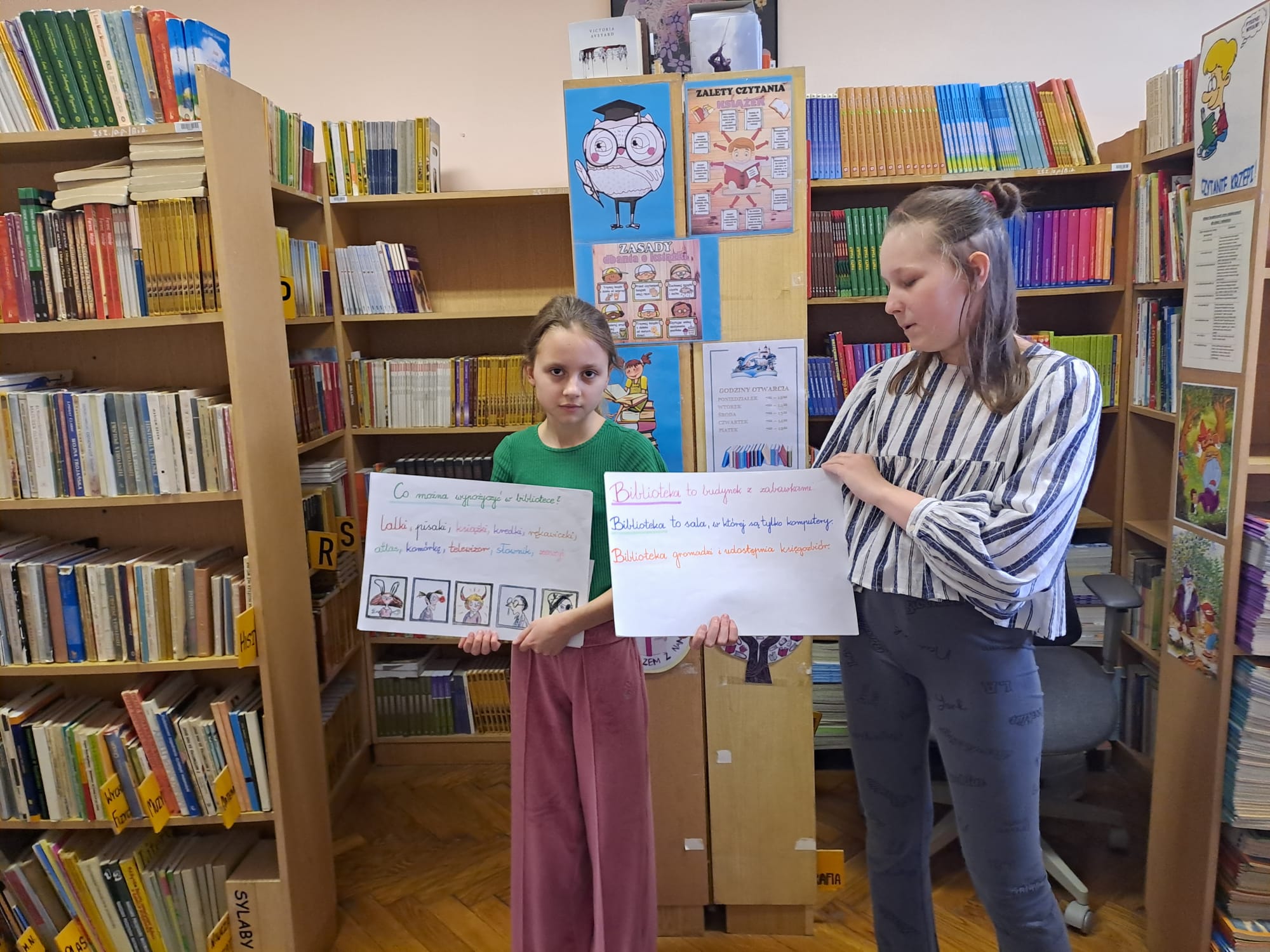 Pierwszoklasiści obejrzeli występ laureatów konkursu recytatorskiego “Ulubione wiersze Brzechwy i Tuwima”, wysłuchali piosenek inspirowanych wierszami Jana Brzechwy, odgadywali bajkowe zagadki, dowiedzieli się, jak należy dbać o książki i jak zachowywać się w bibliotece. Dzieci złożyły uroczyste przyrzeczenie, że będą zawsze szanować książki. Na pamiątkę tego wydarzenia wszyscy uczniowie otrzymali pamiątkowe książeczki “Wnuczka antykwariusza”.