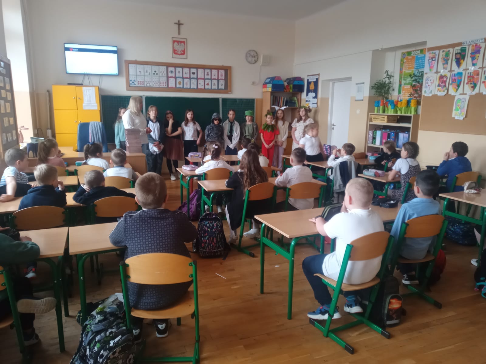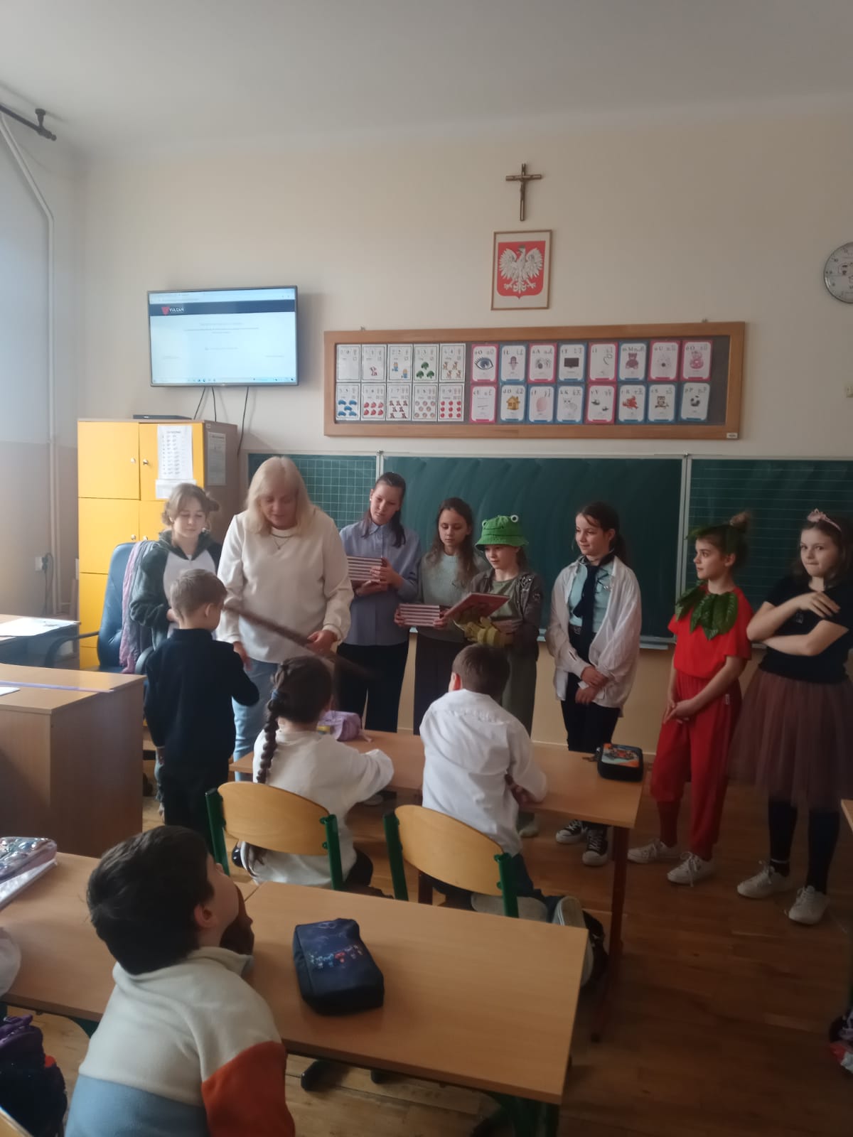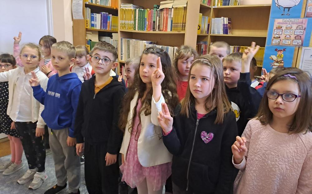 ,,Witajcie w naszej bajce, słoń zagra na fujarce, Pinokio nam zaśpiewa, zatańczą wokół drzewa…”. Słowa znanej dzieciom piosenki z “Akademii Pana Kleksa” były motywem przewodnim tegorocznego pasowania na czytelnika biblioteki szkolnej uczniów klas pierwszych, które odbyło się 26 marca w klasie 1a oraz 1 kwietnia w klasie 1b.