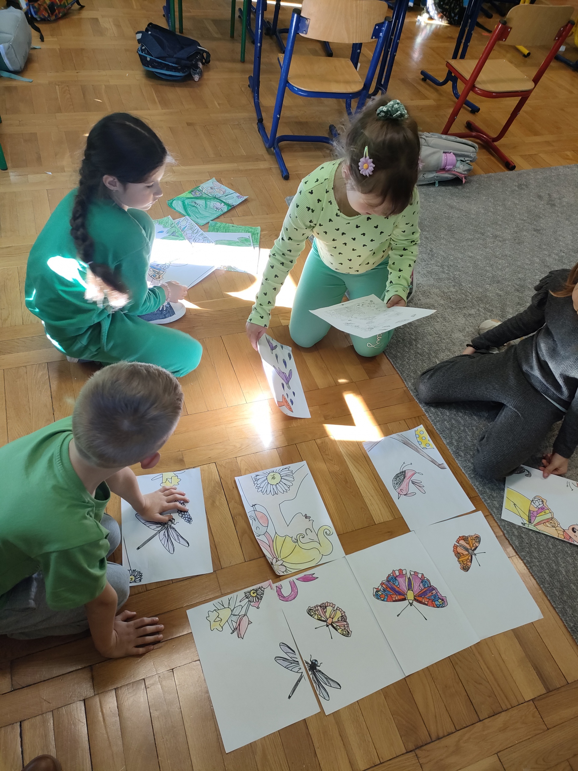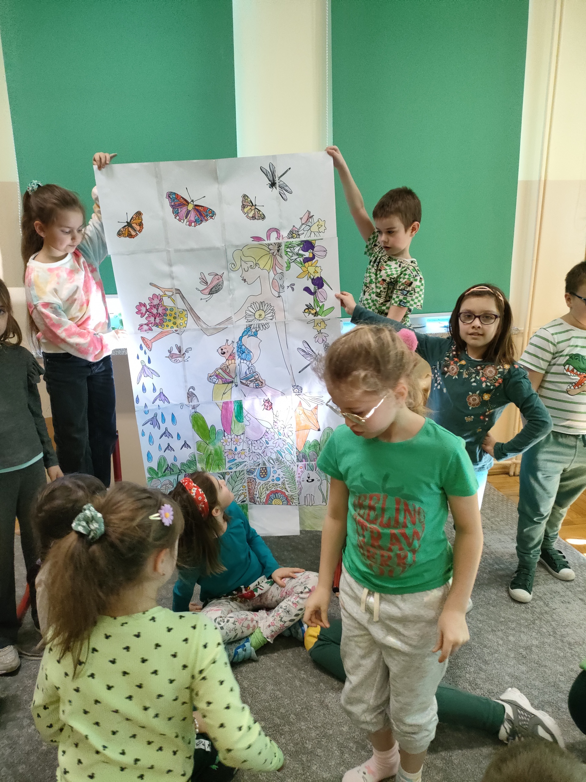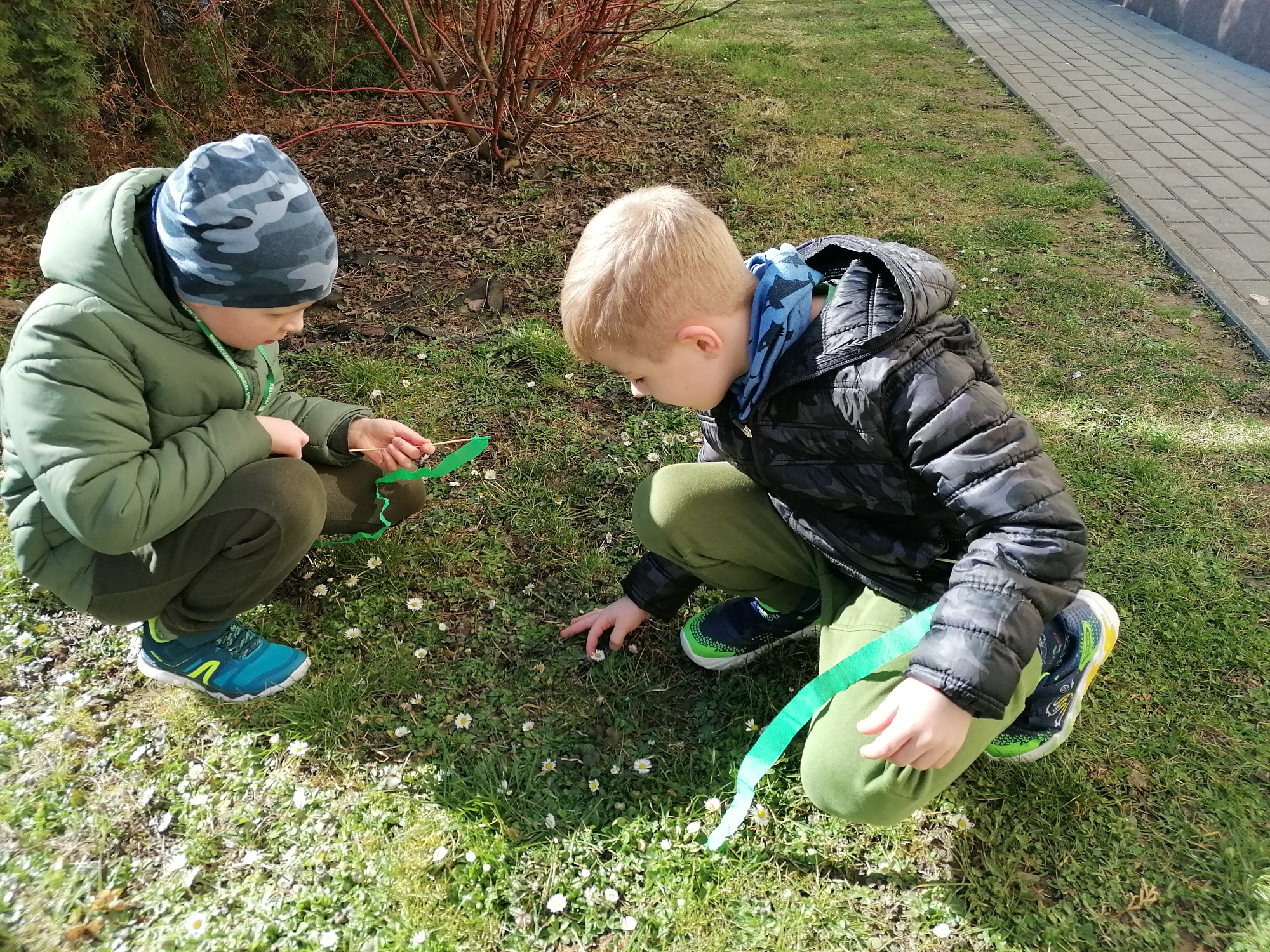 Zamiast tradycyjnej kukły – marzanny, zabrały ze sobą zielone wstążki – symbol wiosny, a po powrocie wykonały piękne prace plastyczne o tematyce związanej z tą porą roku. Dzieci poznały także tradycje i zwyczaje związane z powitaniem wiosny.