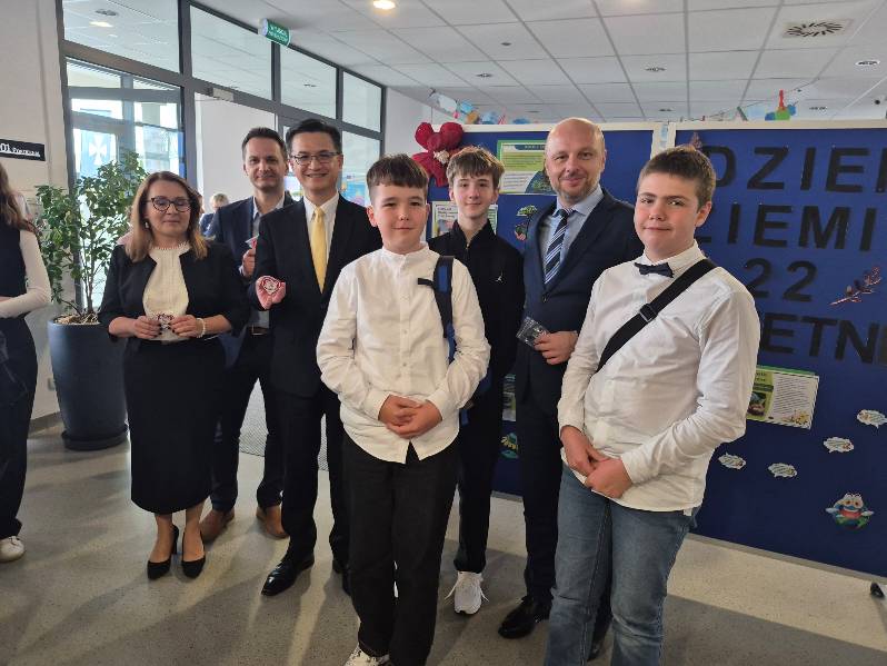 25 kwietnia w Szkole Podstawowej nr 18 z Oddziałami Dwujęzycznymi w Rzeszowie odbyło się spotkanie Prezydenta Miasta Rzeszowa, Konrada Fijołka oraz delegacji z Tajwanu, na czele z Jeffem Y. J. Liu, z dyrektorami, nauczycielami i młodzieżą rzeszowskich szkół podstawowych. Wzięli w nim udział także przedstawiciele uczniów naszej szkoły z klas 7a i 8a wraz z panią wicedyrektor Beatą Motyl oraz panem Radosławem Sztabą. Podczas spotkania odbyło się oficjalne przekazanie sprzętu do wirtualnej rzeczywistości w ramach darowizny od rządu Tajwanu.