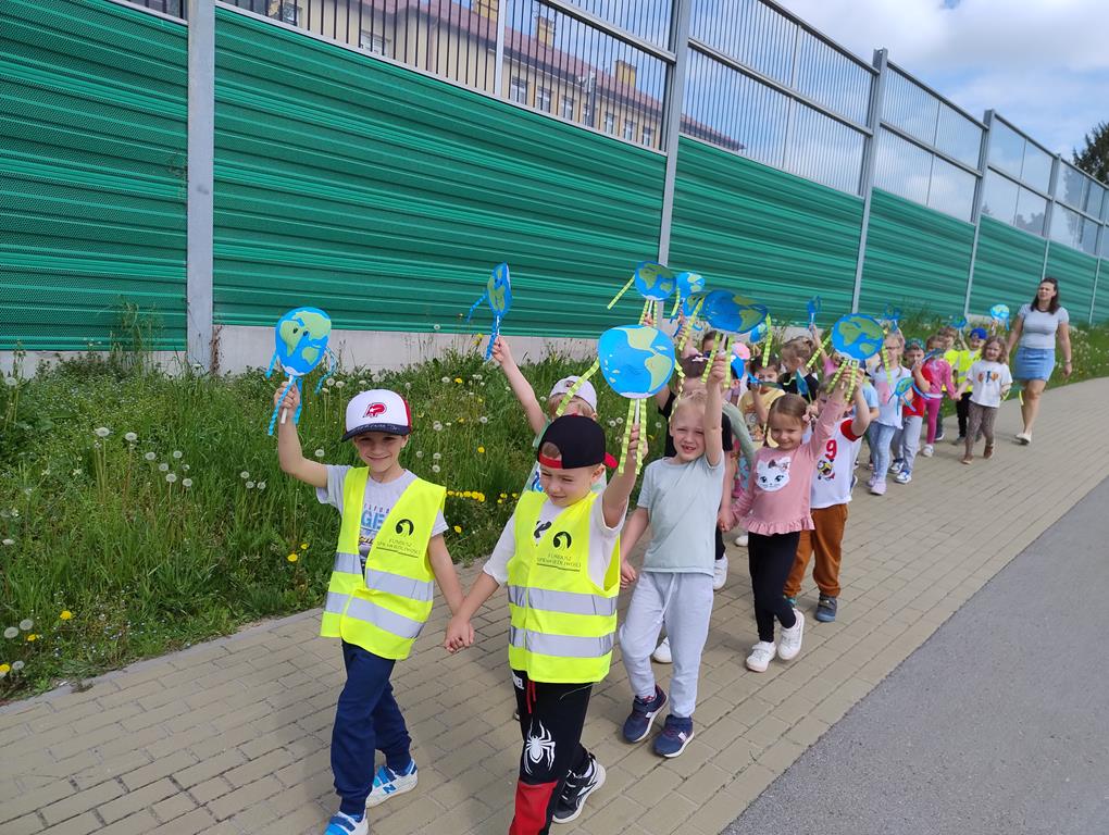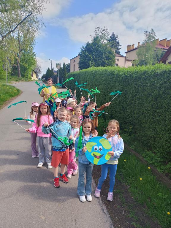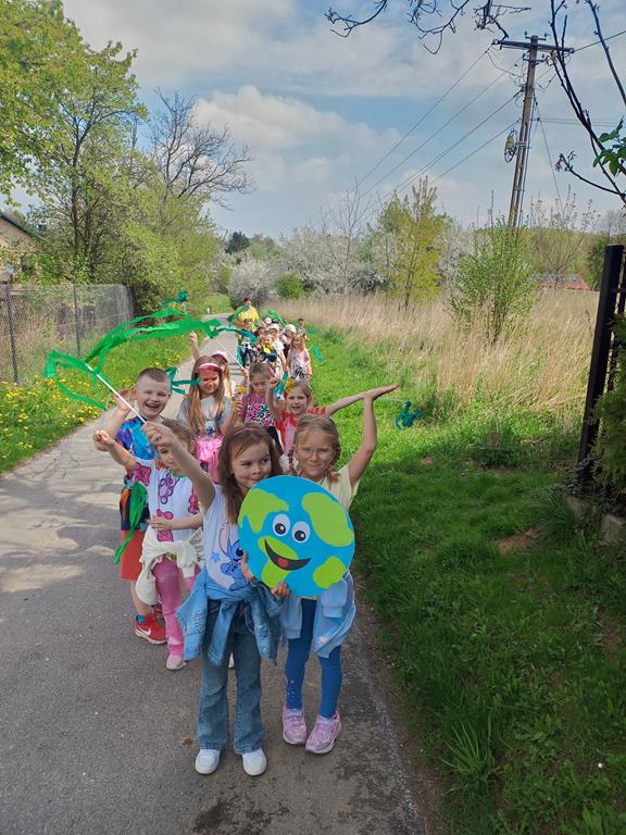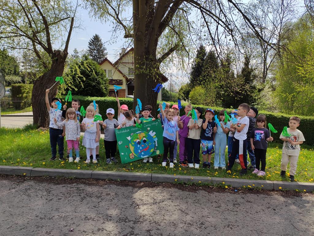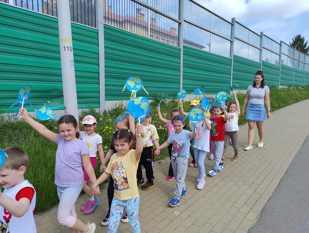 Jednym z głównych punktów obchodów była akcja “Przedszkolak maszeruje, Ziemię ratuje” – kolorowy, radosny marsz przedszkolaków z ekologicznymi hasłami i własnoręcznie wykonanymi transparentami. Dzieci maszerowały w okolicy przedszkola, niosąc przesłanie o potrzebie ochrony przyrody i wspólnego działania na rzecz czystego środowiska. Podczas dnia odbyły się również tematyczne zajęcia plastyczne, zabawy sensoryczne z naturalnych materiałów oraz pogadanki o tym, jak każdy – nawet najmniejszy – może dbać o planetę. Przedszkolaki poznały zasady segregacji śmieci, oszczędzania wody i energii, a także dowiedziały się, dlaczego warto sadzić drzewa i kwiaty.