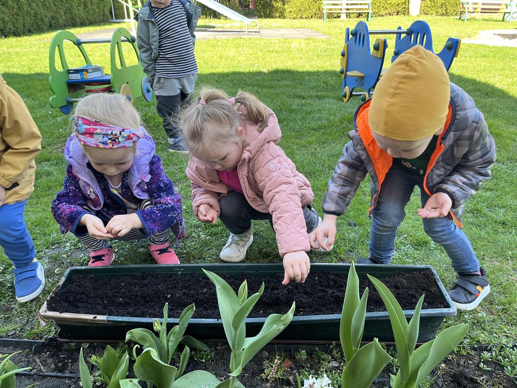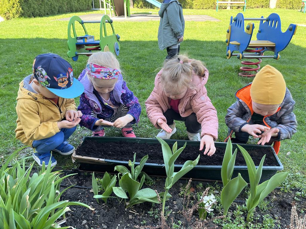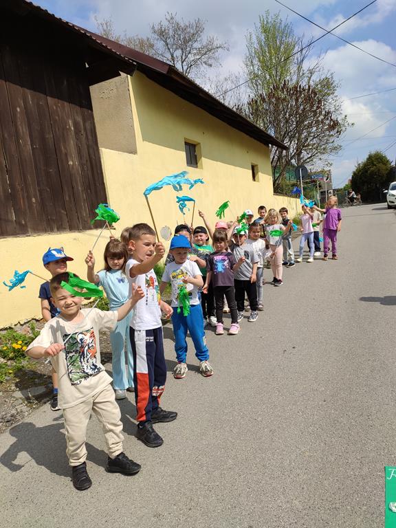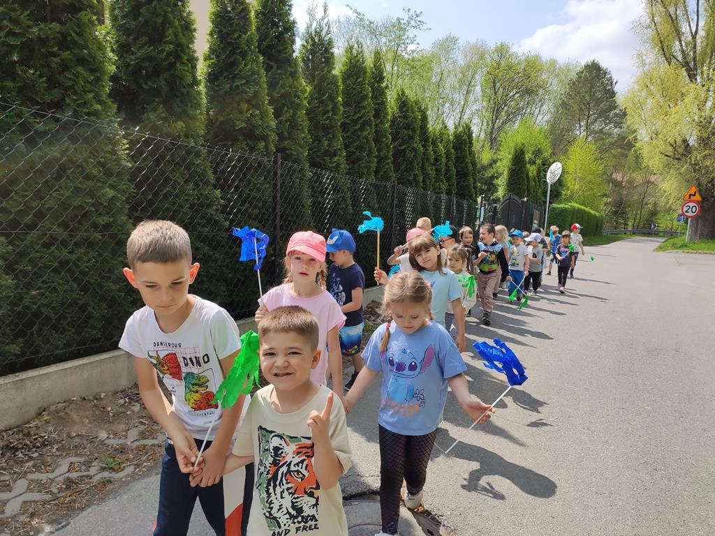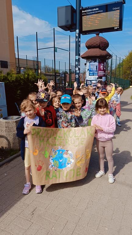 Jednym z głównych punktów obchodów była akcja “Przedszkolak maszeruje, Ziemię ratuje” – kolorowy, radosny marsz przedszkolaków z ekologicznymi hasłami i własnoręcznie wykonanymi transparentami. Dzieci maszerowały w okolicy przedszkola, niosąc przesłanie o potrzebie ochrony przyrody i wspólnego działania na rzecz czystego środowiska. Podczas dnia odbyły się również tematyczne zajęcia plastyczne, zabawy sensoryczne z naturalnych materiałów oraz pogadanki o tym, jak każdy – nawet najmniejszy – może dbać o planetę. Przedszkolaki poznały zasady segregacji śmieci, oszczędzania wody i energii, a także dowiedziały się, dlaczego warto sadzić drzewa i kwiaty.