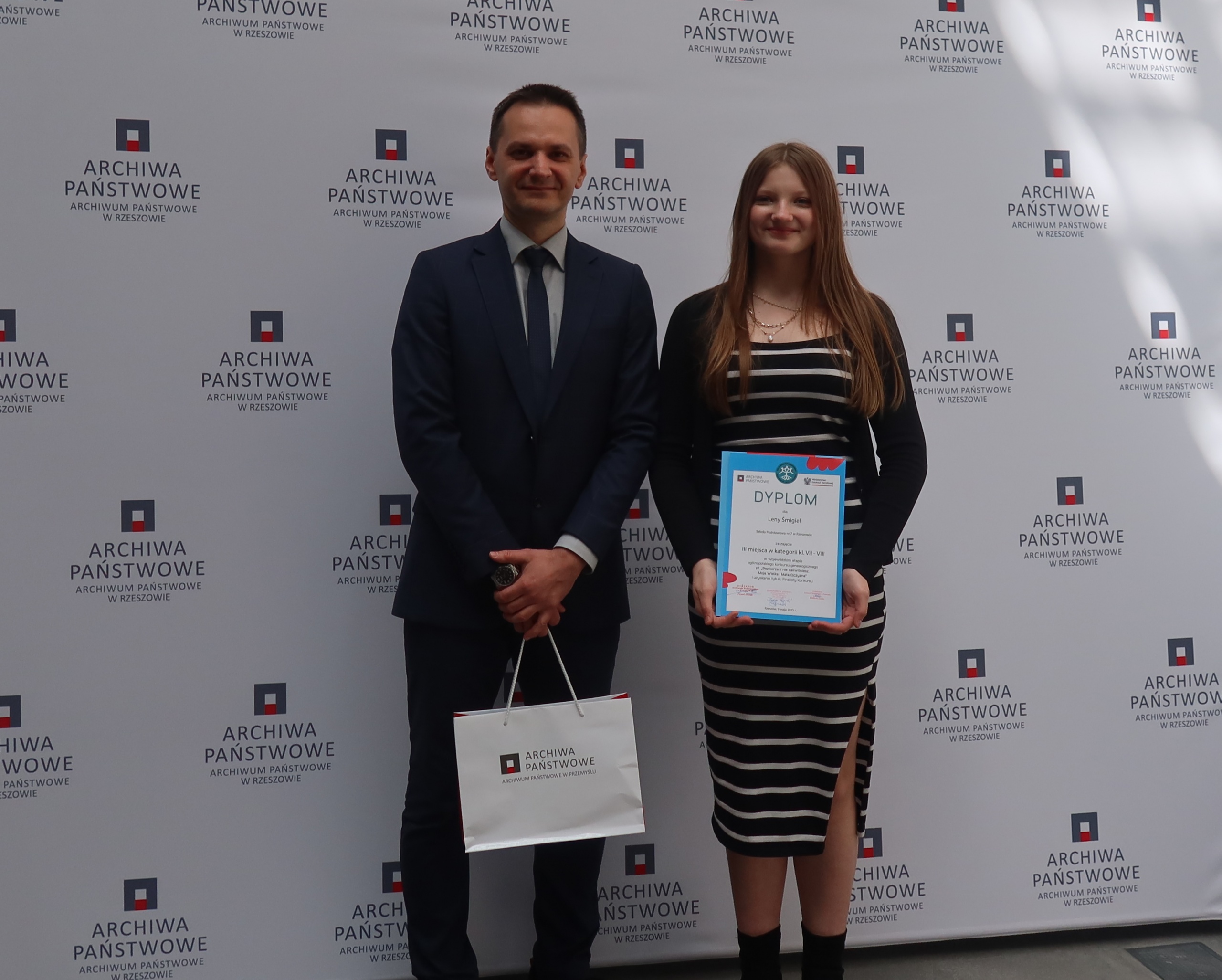 W gali podsumowującej konkurs wzięła udział nie tylko Lena Śmigiel wraz z rodzicem i opiekunem, ale także liczna reprezentacja naszej szkoły: uczennice z klas 4b, 7a i 7b. Galę prowadził dyrektor Archiwum Państwowego w Rzeszowie, pan Paweł Dudek i pracownicy tej instytucji. Nagrody i dyplomy finalistom konkursu, osobom wyróżnionym oraz ich opiekunom wręczali także przedstawiciele Urzędu Miasta Rzeszowa oraz Kuratorium Oświaty w Rzeszowie. Po części oficjalnej każdy uczestnik mógł podzielić się swoimi doświadczeniami z udziału w konkursie. Wykonano także pamiątkowe zdjęcie. Niewątpliwą atrakcją tego wydarzenia było zwiedzanie Archiwum Państwowego. Uczniowie przekonali się, że jego zasoby kryją wiele skarbów, a praca w tej instytucji może być nie tylko pożyteczna, ale i ciekawa.