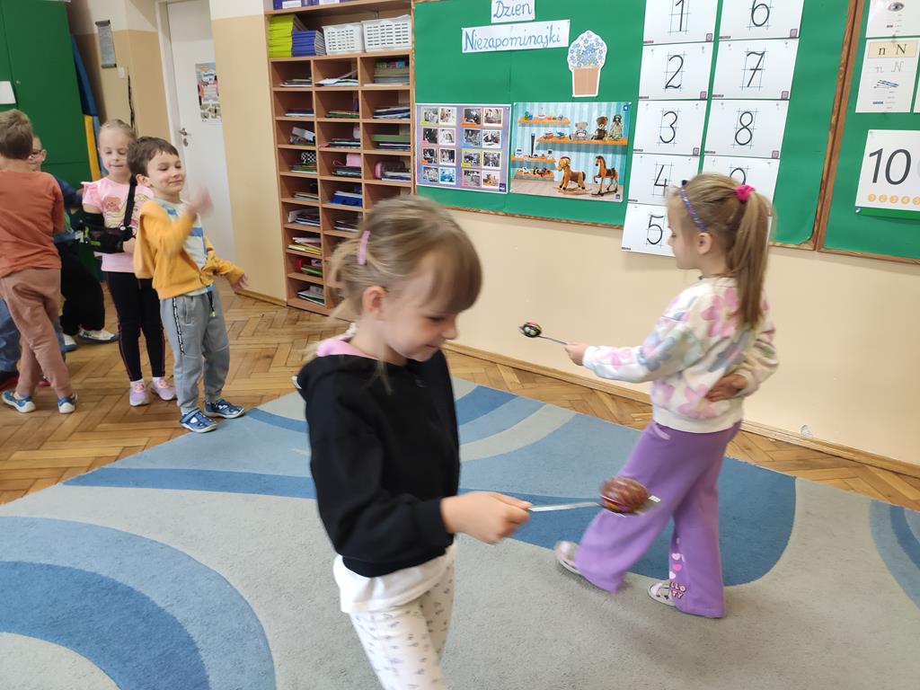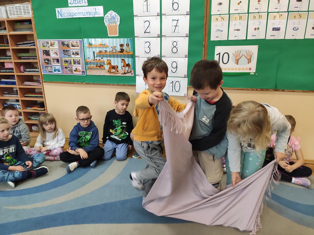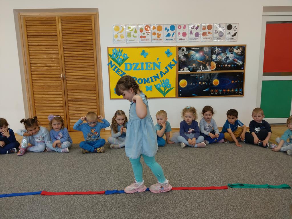 Tegoroczna edycja miała na celu ocalenie od zapomnienia dawnych zabaw i gier. Była to świetna okazja, by pobawić się w ciuciubabkę, pograć w klasy czy porzucać do celu. Czas minął szybko, a zabawa była przednia. Tego dnia dzieci wysłuchały również opowiadania o Niezapominajce, utrwaliły umiejętności matematyczne, przeliczając płatki tego niezwykłego kwiatka oraz wykonały prace plastyczne.