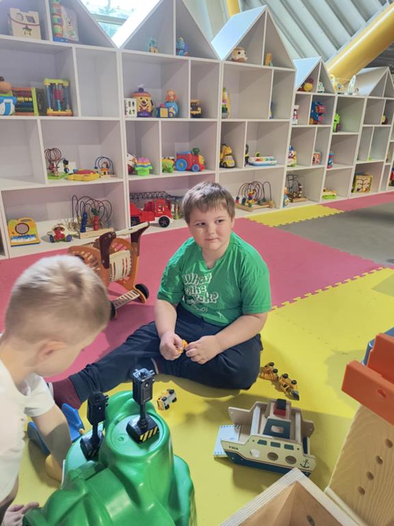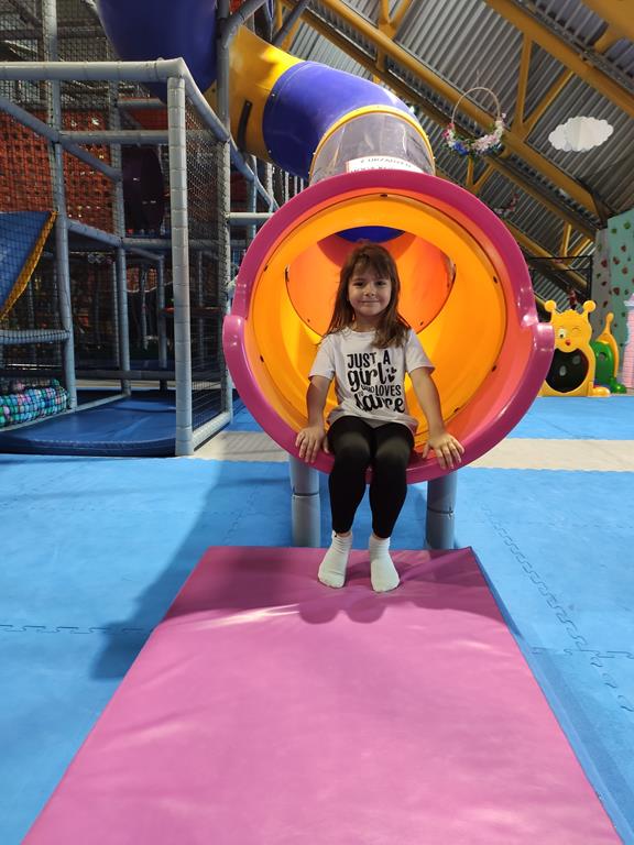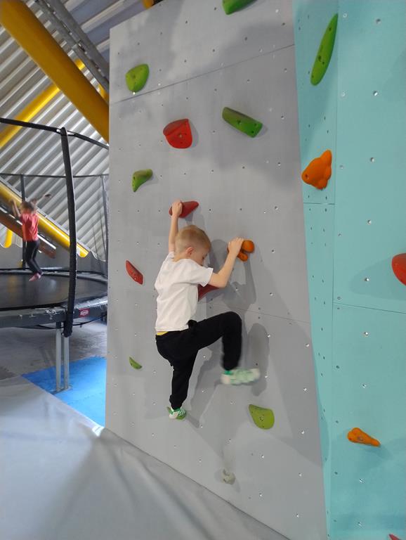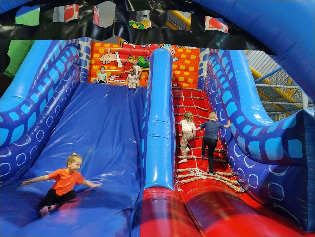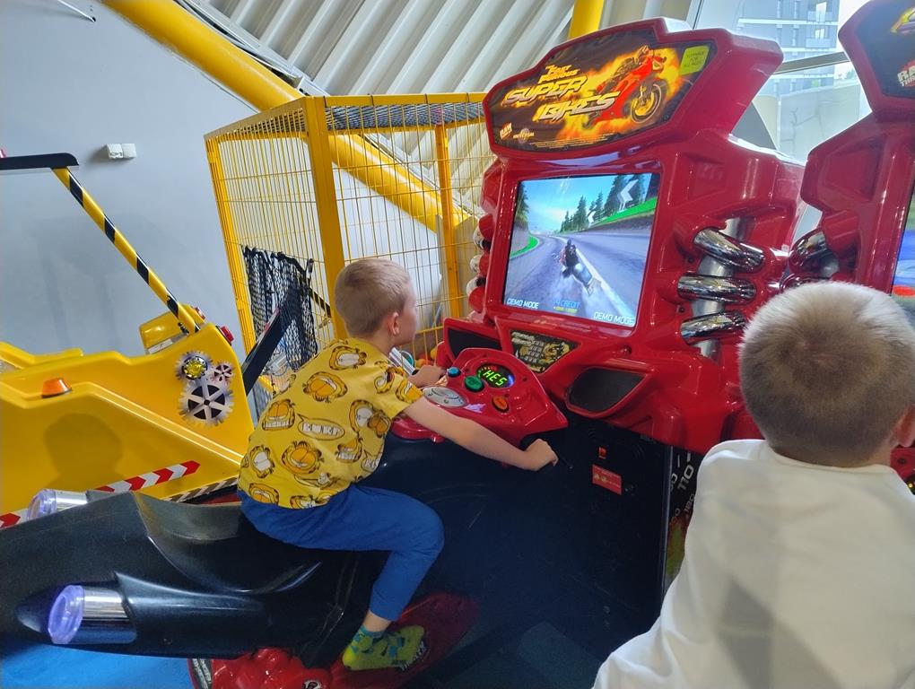 Sala zabaw Fantazja to kolorowa, bezpieczna przestrzeń, stworzona z myślą o dzieciach. Po przyjeździe dzieci z szerokimi uśmiechami rzuciły się w wir przygód – czekały na nie liczne atrakcje: wielopoziomowe konstrukcje do wspinania, labirynty, tunele, mostki, zjeżdżalnie, baseny z piłkami i trampoliny. Każdy maluch mógł znaleźć coś dla siebie – od intensywnej zabawy ruchowej po spokojniejsze zajęcia rozwijające wyobraźnię. W czasie zabawy dzieci integrowały się, uczyły współpracy, a także rozwijały swoje umiejętności motoryczne. Radość była ogromna – uśmiechy nie znikały z twarzy nawet na chwilę, a w sali słychać było śmiech i okrzyki zachwytu. Po intensywnej zabawie przyszedł czas na przerwę i regenerację sił. Dzieci z apetytem zjadły przygotowane przekąski, wymieniając się wrażeniami i przeżyciami. To był też moment na odpoczynek i wspólne rozmowy w przyjaznej atmosferze.