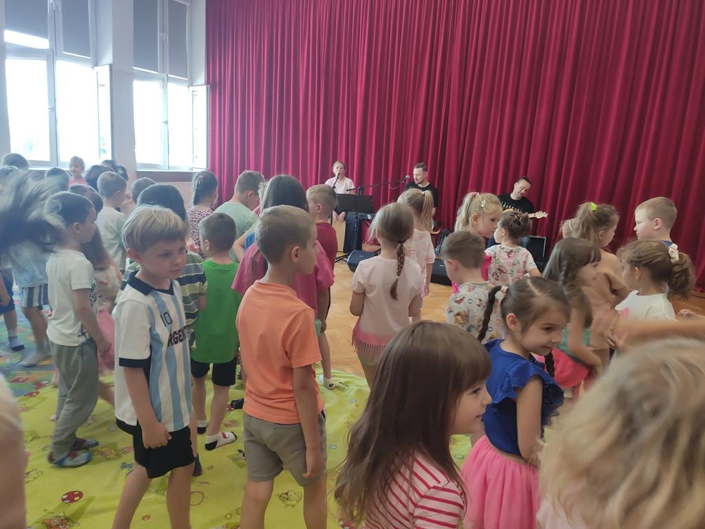 Podczas spotkania dzieci przeniosły się w muzyczną podróż po różnych zakątkach świata i dźwiękach, które kojarzą się z latem, przygodą i odpoczynkiem. Wspólnie śpiewaliśmy, klaskaliśmy i poruszaliśmy się w rytm wakacyjnych melodii. Nie zabrakło też ciekawostek o instrumentach muzycznych oraz letnich tradycjach z różnych stron świata.