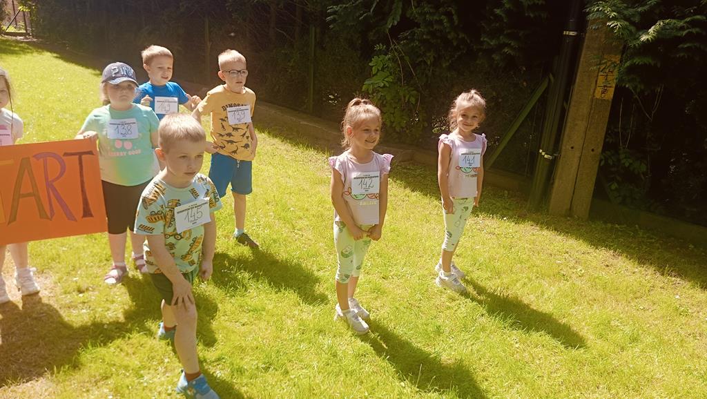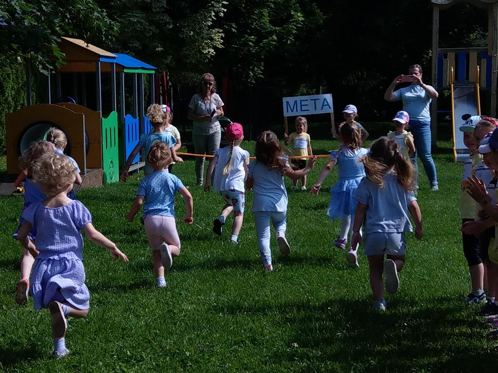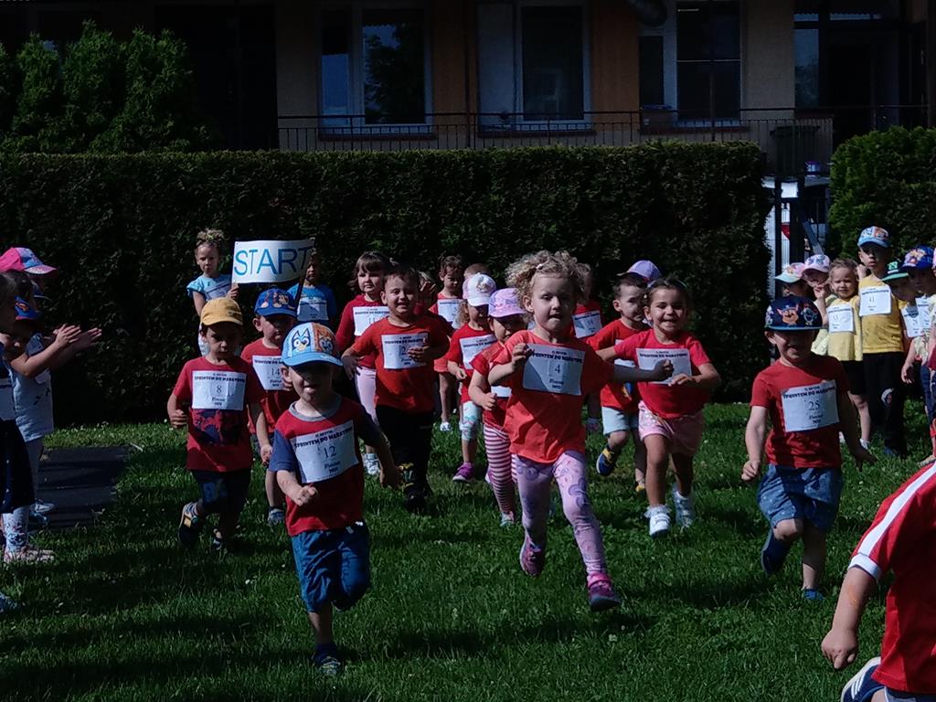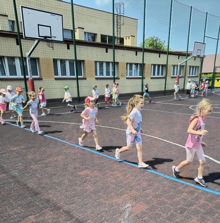 Na przedszkolnym placu lub pobliskim boisku odbyły się biegi na miarę dziecięcych możliwości. Z ogromnym uśmiechem na twarzach, dzieci pokonywały wyznaczone dystanse, ucząc się zdrowej rywalizacji, zasad fair play oraz tego, jak ważna jest codzienna dawka ruchu dla zdrowia i dobrego samopoczucia. Nie zabrakło gromkich braw i dopingu kolegów, koleżanek oraz nauczycieli.