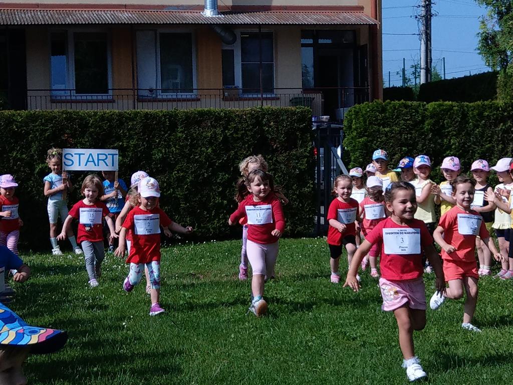 Nasze przedszkole wzięło udział w ogólnopolskiej akcji „Sprintem do maratonu”, której celem jest promowanie aktywności fizycznej wśród najmłodszych. Tego dnia wszystkie przedszkolaki – od maluszków po starszaki – zamieniły się w małych sportowców.
