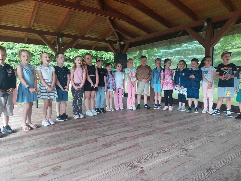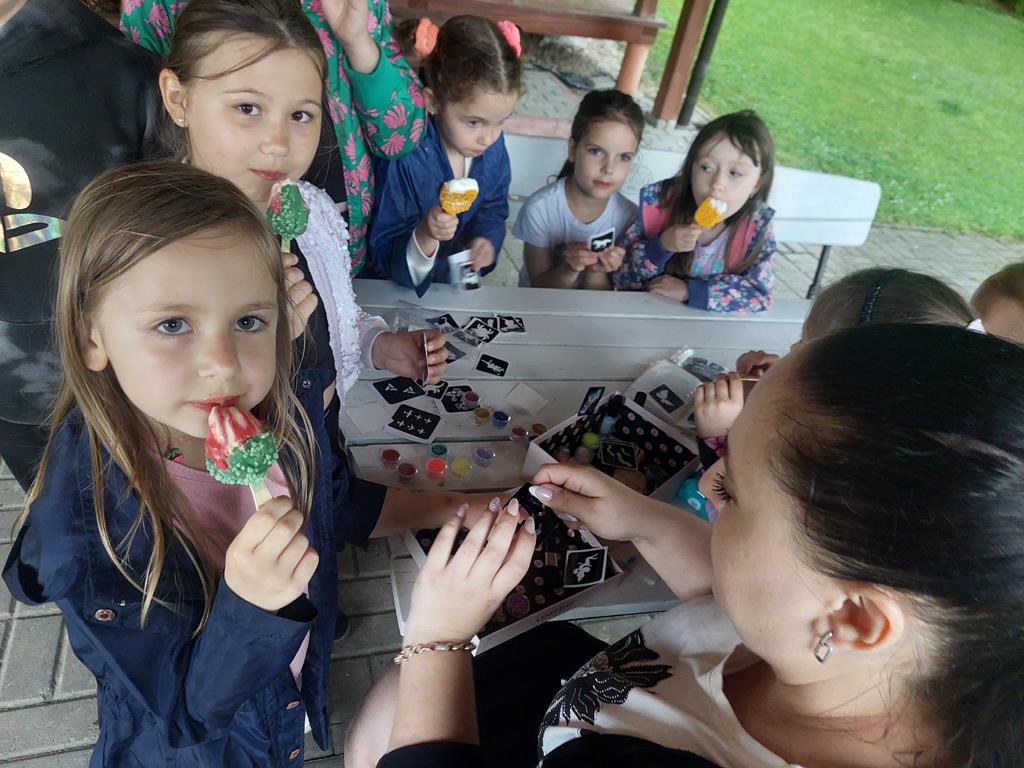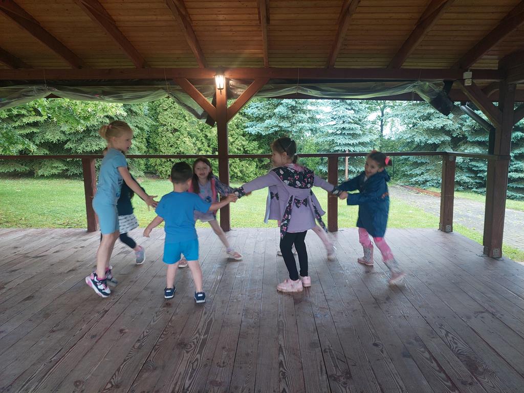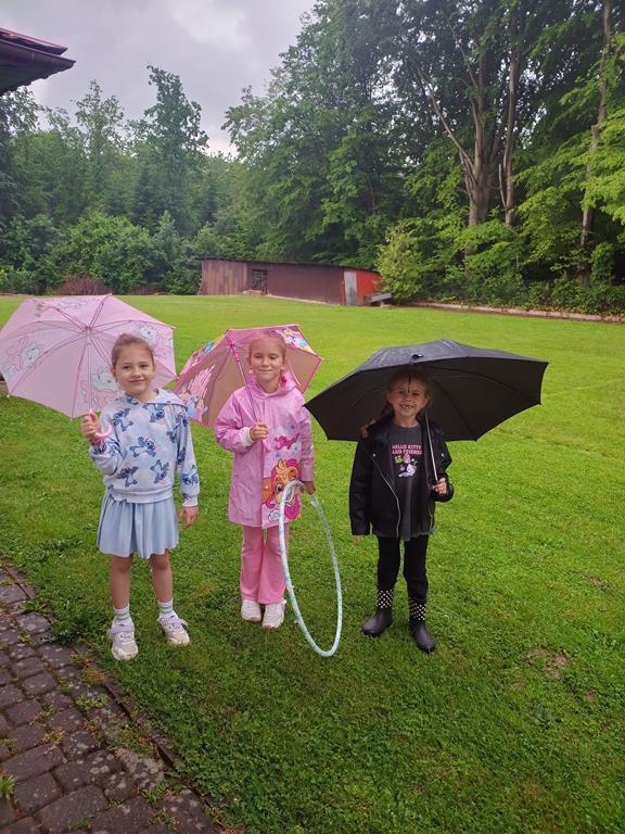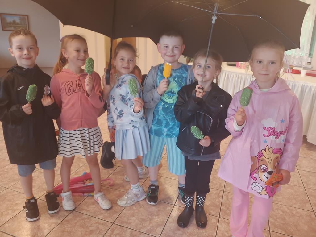 Słoneczka spotkały się w agroturystyce Kobakówka w Mogielnicy. Przedszkolaki przygotowały dla swoich rodziców wzruszające piosenki oraz wesoły taniec, a po występie wręczyły wykonane przez siebie laurki. Choć pogoda nas nie rozpieszczała i pojawił się deszcz, nikt nie stracił dobrego humoru. Dzieci grały w piłkę, puszczały bańki mydlane, tańczyły, biegały, a nawet robiły sobie kolorowe tatuaże. Nie zabrakło również słodkiego akcentu – lody smakowały wyjątkowo dobrze, nawet pod parasolami! To spotkanie było nie tylko pięknym sposobem na świętowanie Dnia Mamy i Taty, ale również okazją do bliższego poznania się i integracji całej grupy.