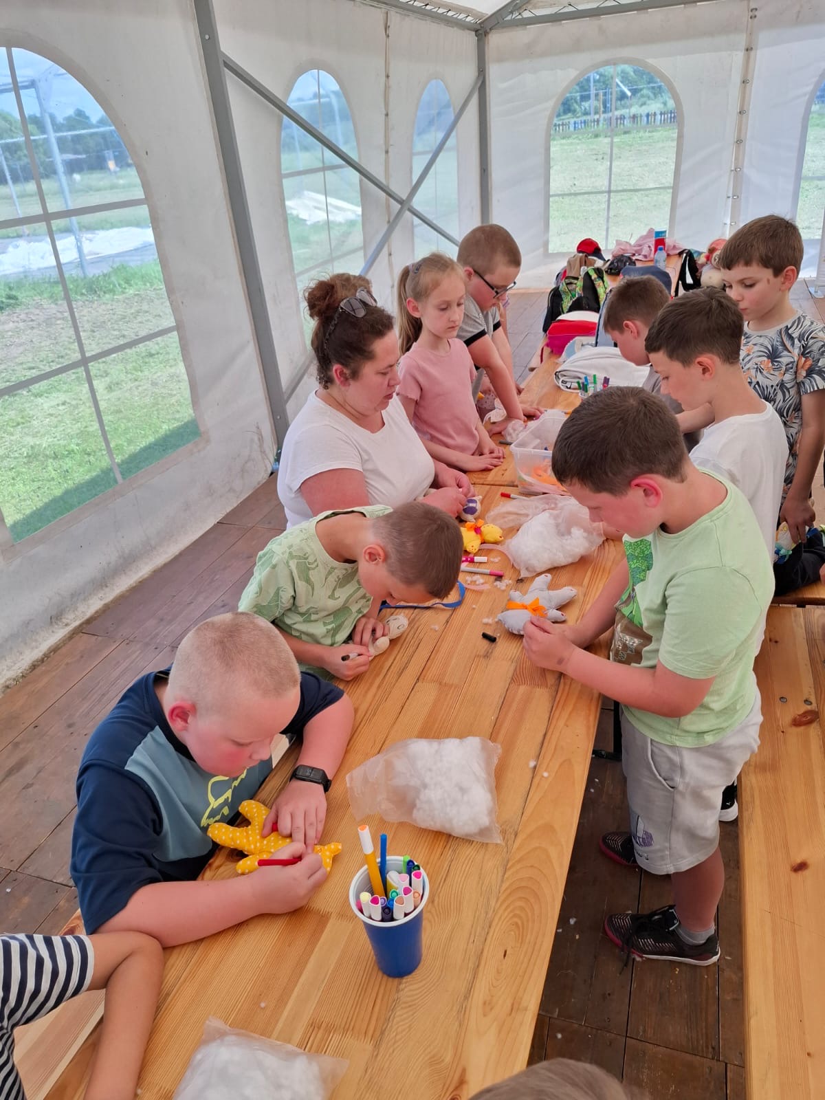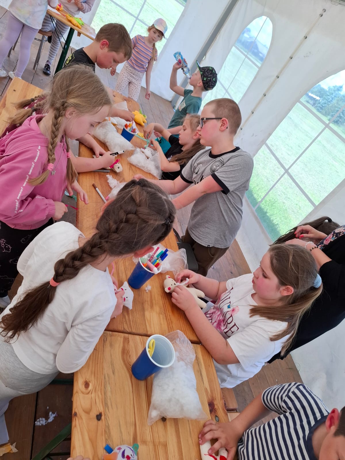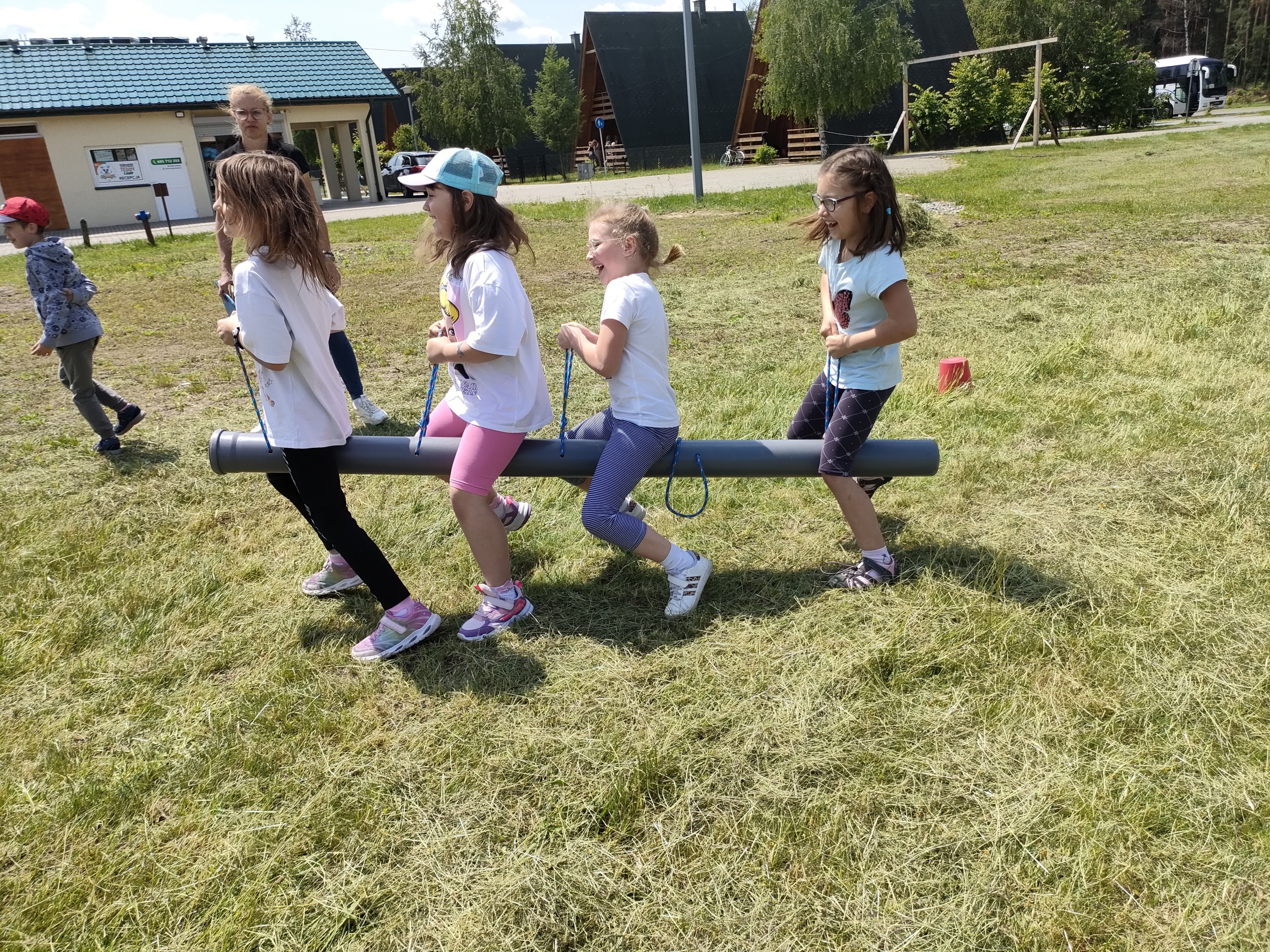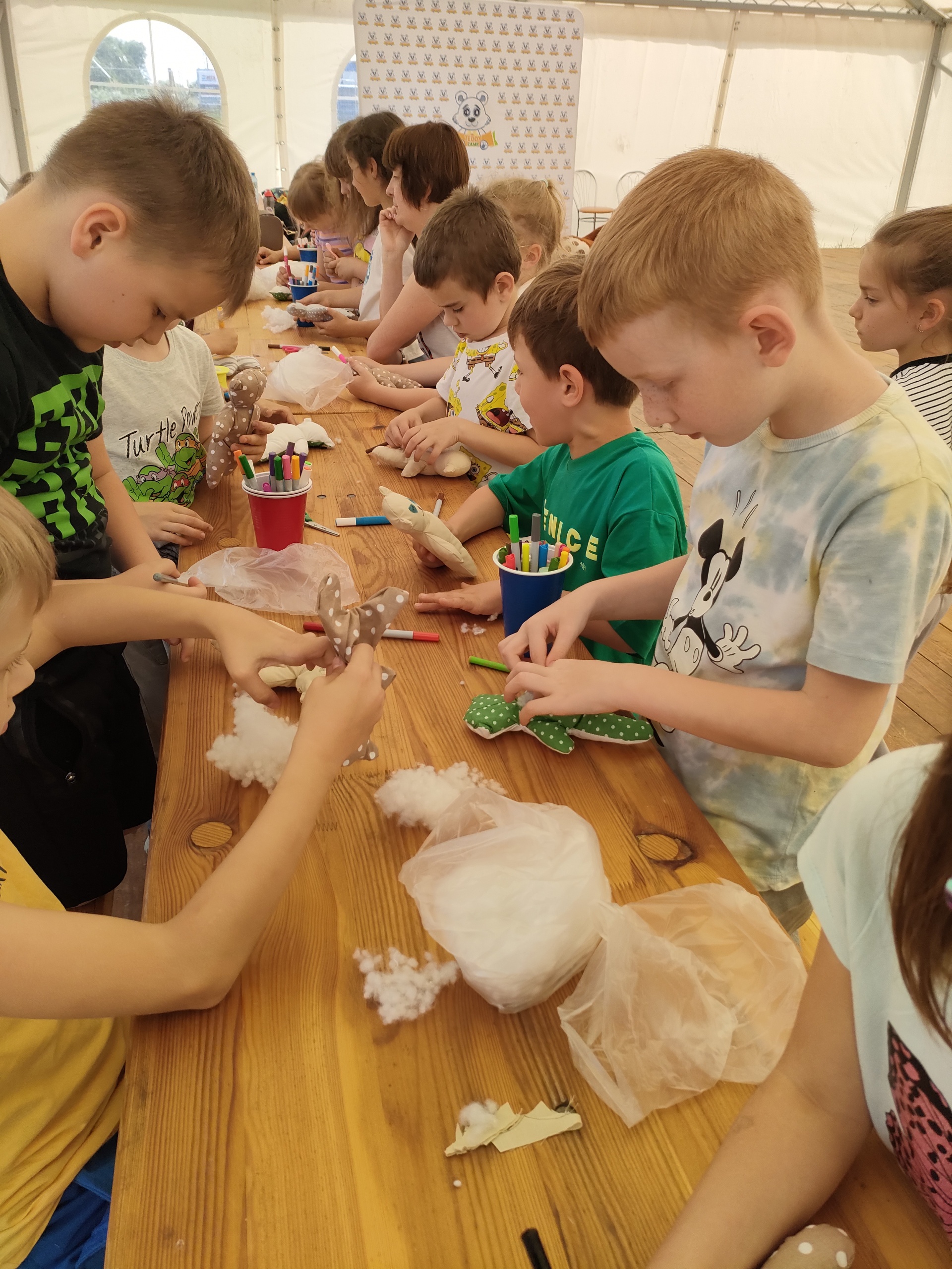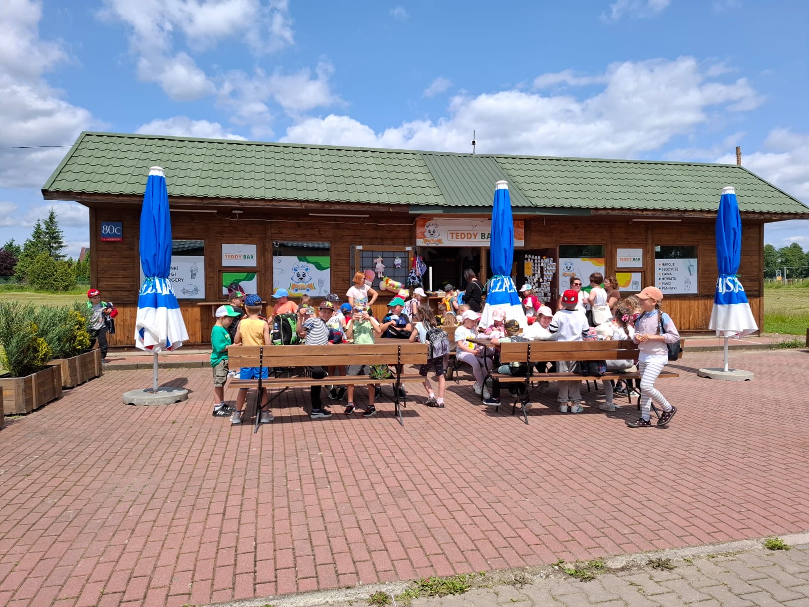 “Misiowe szaleństwo” – pod takim hasłem przebiegała wycieczka. Miejsce, a także tematyka warsztatów nie były przypadkowe. To tutaj, w miejscowości Cieszanów, miał siedzibę Zakład Produkcyjny Zabawek Miękkich, tzw. „Misie” i funkcjonował od lat 60. do 90. XX wieku. Podczas warsztatów nasi milusińscy mogli stworzyć z drobną pomocą własnego misia, którego zabrali ze sobą do domu. Następnie uczniowie wzięli udział w detektywistycznej grze wielowątkowej: “Kto ukradł misia?”, polegającej na zdobywaniu informacji w celu wskazania złodzieja. Zabawa wymagała działania zespołowego, logicznego myślenia oraz przebiegłości. Na zakończenie odbył się “Dziesięciobój twardzieli”, czyli turniej sportowo-integracyjny, wymagający współpracy, kondycji, celności i sprytu.