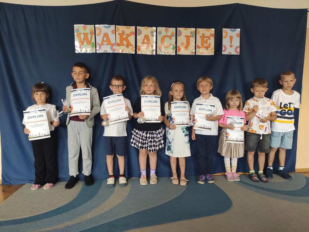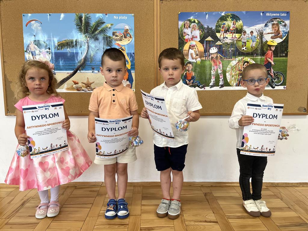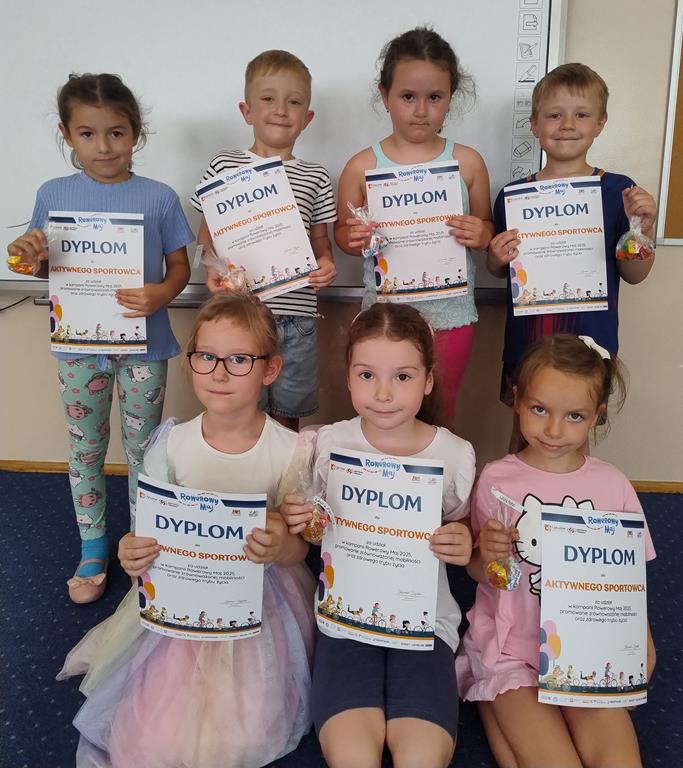 Pomimo niesprzyjającej pogody, wykonaliśmy ponad tysiąc przejazdów w ciągu trzech tygodni maja. Najbardziej rowerową klasą okazała się 5a, a najaktywniejszą grupą przedszkolną – Żabki. Dwudziestu siedmiu najaktywniejszych uczniów, którzy przyjechali min. 15 razy do szkoły ww. środkami transportu, otrzymało dyplomy i karty podarunkowe. Najaktywniejszych przedszkolaków z wszystkimi przejazdami było 8. Każdy uczestnik z przedszkola otrzymał pamiątkowy dyplom i słodką niespodziankę.