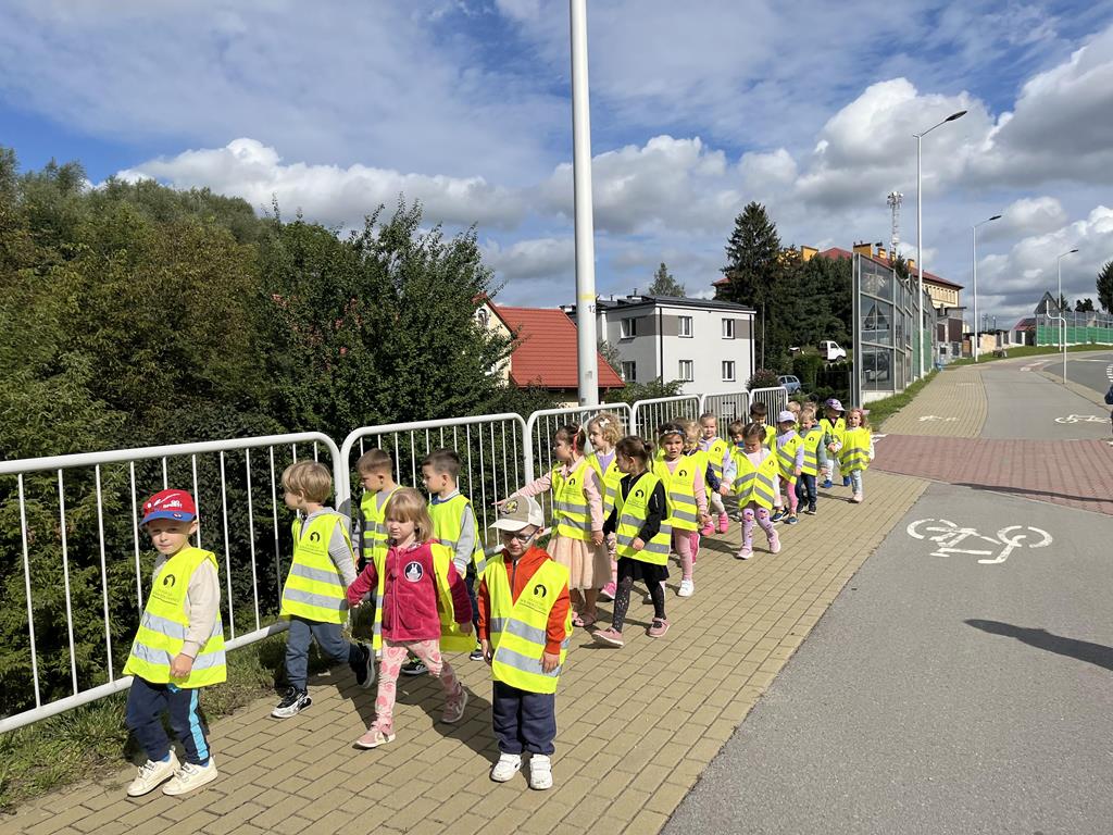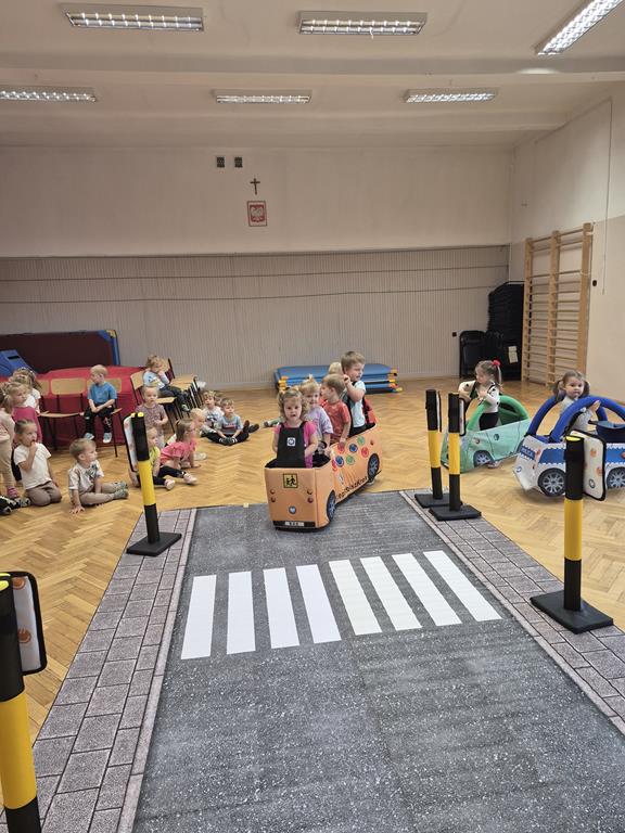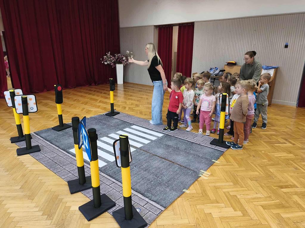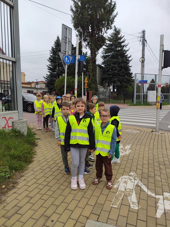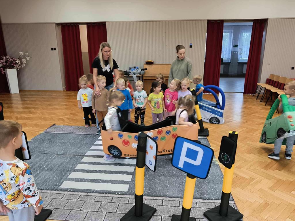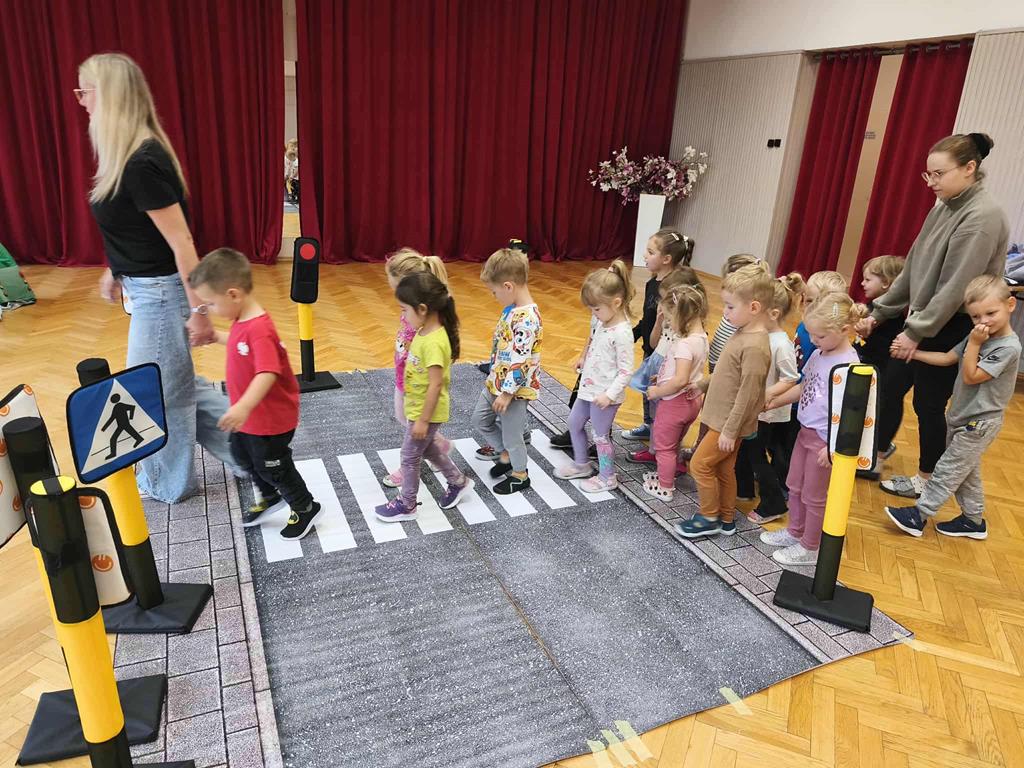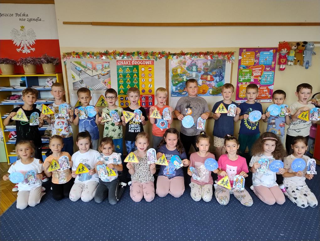 Wybraliśmy się na pobliskie skrzyżowanie, aby w praktyce poznać zasady bezpiecznego przechodzenia przez jezdnię, znaki drogowe i sygnalizację świetlną. Dzieci miały okazję obserwować ruch uliczny i uczyć się odpowiedzialnych zachowań jako piesi. W ramach zajęć plastycznych powstały niezwykłe prace pt. „Sygnalizatory”, „Rowerem lub hulajnogą przez świat” – przedszkolaki z ogromnym zaangażowaniem przedstawiały w nich swoje marzenia o podróżach oraz ulubione środki transportu. Odbyły się również zajęcia edukacyjne dotyczące bezpieczeństwa w ruchu drogowym – dzieci poznawały podstawowe zasady poruszania się po drogach, uczyły się znaczenia wybranych znaków drogowych oraz tego, jak dbać o swoje bezpieczeństwo jako piesi i mali rowerzyści. Przedszkolaki miały szansę sprawdzenia swojej wiedzy w praktyce (korzystając z Minimiasteczka Ruchu Drogowego), jak również swoich umiejętności w poruszaniu się rowerem i hulajnogą. Przed nami jeszcze spotkanie z policjantem, który opowie o swojej pracy oraz przypomni dzieciom, jak bezpiecznie poruszać się po drogach i dlaczego warto nosić elementy odblaskowe.