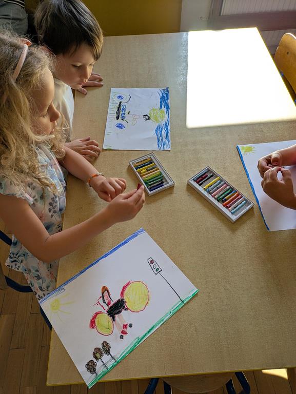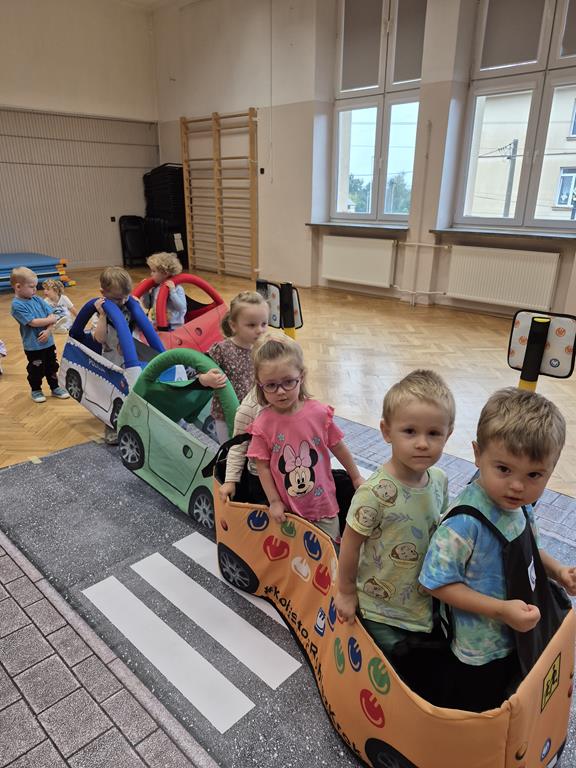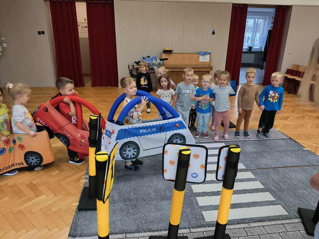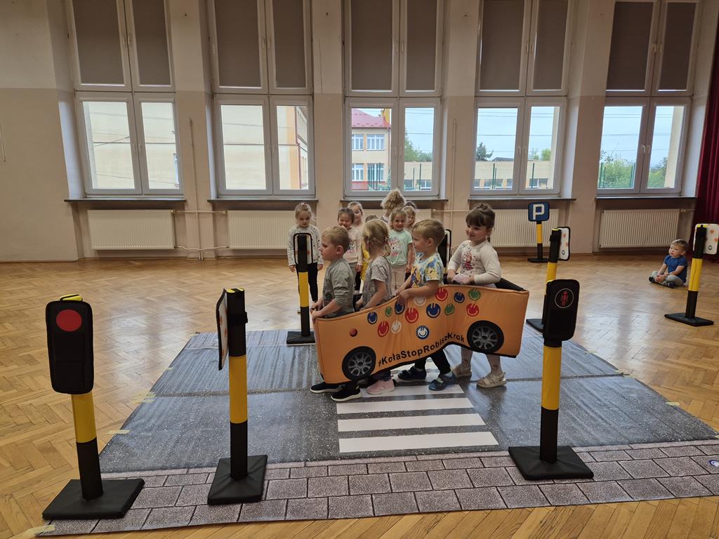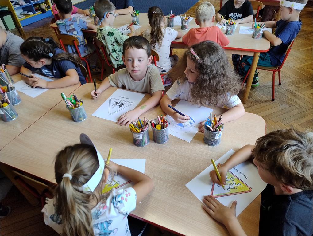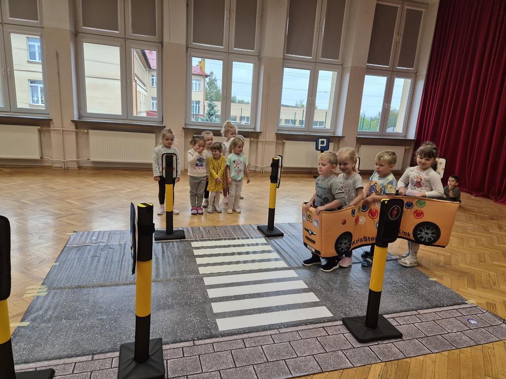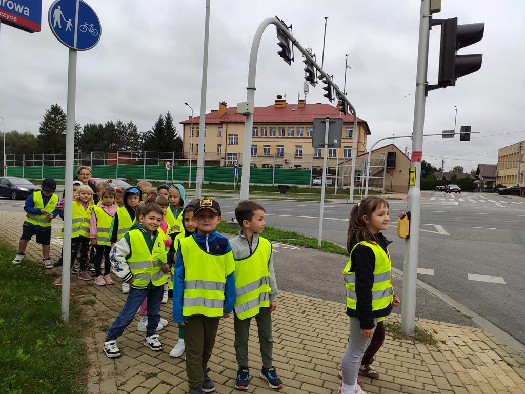 Wybraliśmy się na pobliskie skrzyżowanie, aby w praktyce poznać zasady bezpiecznego przechodzenia przez jezdnię, znaki drogowe i sygnalizację świetlną. Dzieci miały okazję obserwować ruch uliczny i uczyć się odpowiedzialnych zachowań jako piesi. W ramach zajęć plastycznych powstały niezwykłe prace pt. „Sygnalizatory”, „Rowerem lub hulajnogą przez świat” – przedszkolaki z ogromnym zaangażowaniem przedstawiały w nich swoje marzenia o podróżach oraz ulubione środki transportu. Odbyły się również zajęcia edukacyjne dotyczące bezpieczeństwa w ruchu drogowym – dzieci poznawały podstawowe zasady poruszania się po drogach, uczyły się znaczenia wybranych znaków drogowych oraz tego, jak dbać o swoje bezpieczeństwo jako piesi i mali rowerzyści. Przedszkolaki miały szansę sprawdzenia swojej wiedzy w praktyce (korzystając z Minimiasteczka Ruchu Drogowego), jak również swoich umiejętności w poruszaniu się rowerem i hulajnogą. Przed nami jeszcze spotkanie z policjantem, który opowie o swojej pracy oraz przypomni dzieciom, jak bezpiecznie poruszać się po drogach i dlaczego warto nosić elementy odblaskowe.