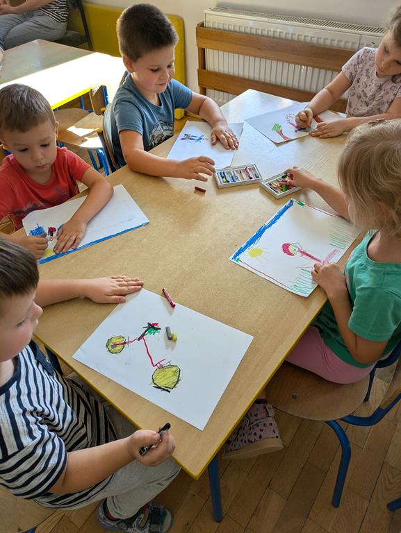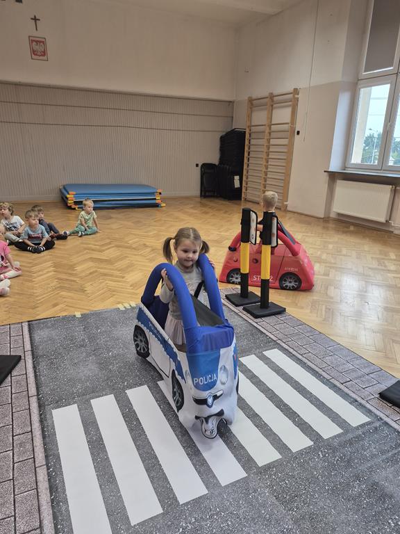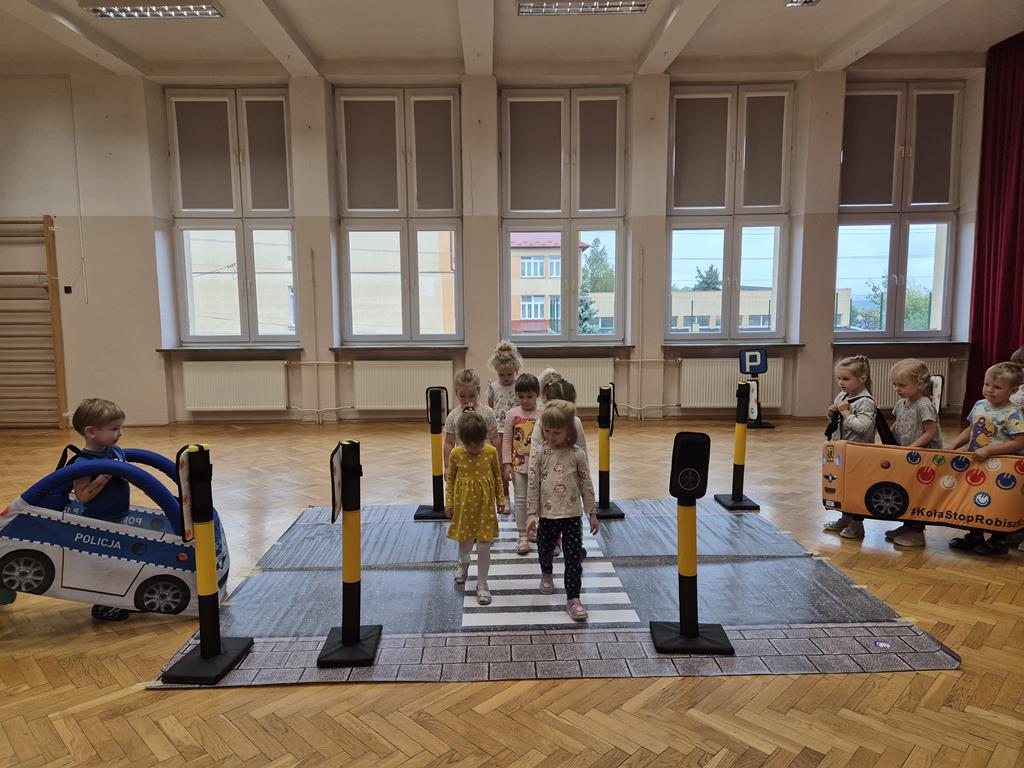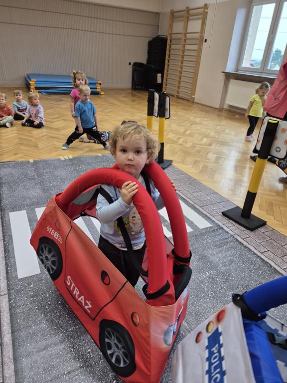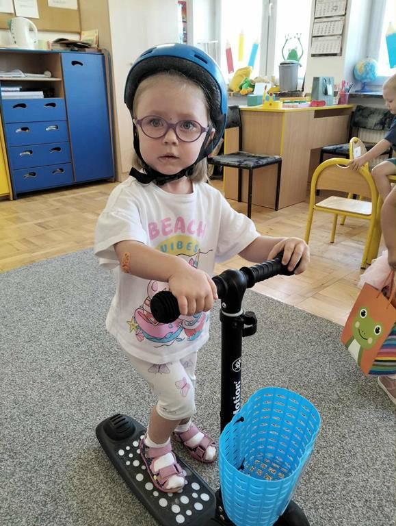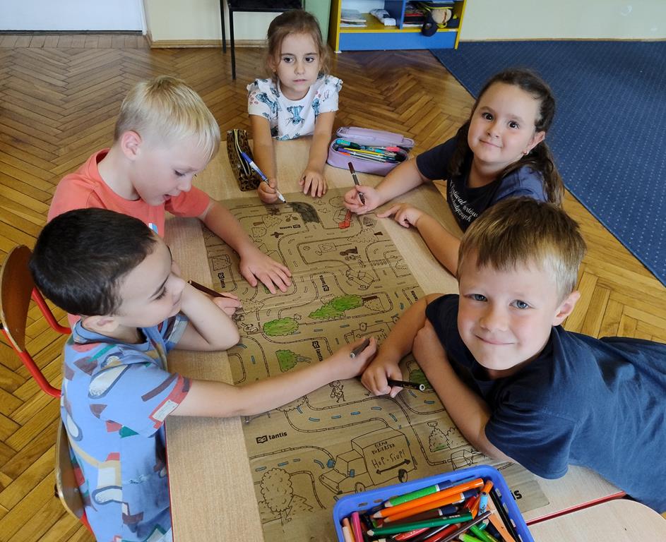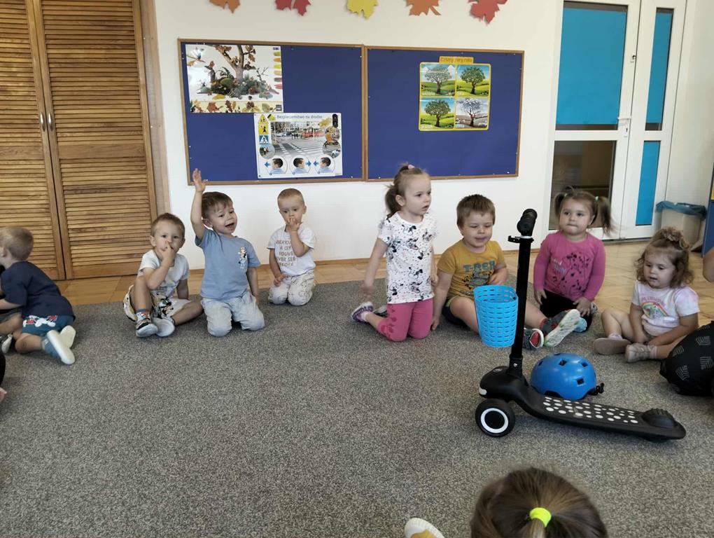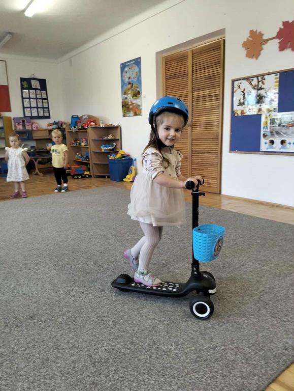 Wybraliśmy się na pobliskie skrzyżowanie, aby w praktyce poznać zasady bezpiecznego przechodzenia przez jezdnię, znaki drogowe i sygnalizację świetlną. Dzieci miały okazję obserwować ruch uliczny i uczyć się odpowiedzialnych zachowań jako piesi. W ramach zajęć plastycznych powstały niezwykłe prace pt. „Sygnalizatory”, „Rowerem lub hulajnogą przez świat” – przedszkolaki z ogromnym zaangażowaniem przedstawiały w nich swoje marzenia o podróżach oraz ulubione środki transportu. Odbyły się również zajęcia edukacyjne dotyczące bezpieczeństwa w ruchu drogowym – dzieci poznawały podstawowe zasady poruszania się po drogach, uczyły się znaczenia wybranych znaków drogowych oraz tego, jak dbać o swoje bezpieczeństwo jako piesi i mali rowerzyści. Przedszkolaki miały szansę sprawdzenia swojej wiedzy w praktyce (korzystając z Minimiasteczka Ruchu Drogowego), jak również swoich umiejętności w poruszaniu się rowerem i hulajnogą. Przed nami jeszcze spotkanie z policjantem, który opowie o swojej pracy oraz przypomni dzieciom, jak bezpiecznie poruszać się po drogach i dlaczego warto nosić elementy odblaskowe.