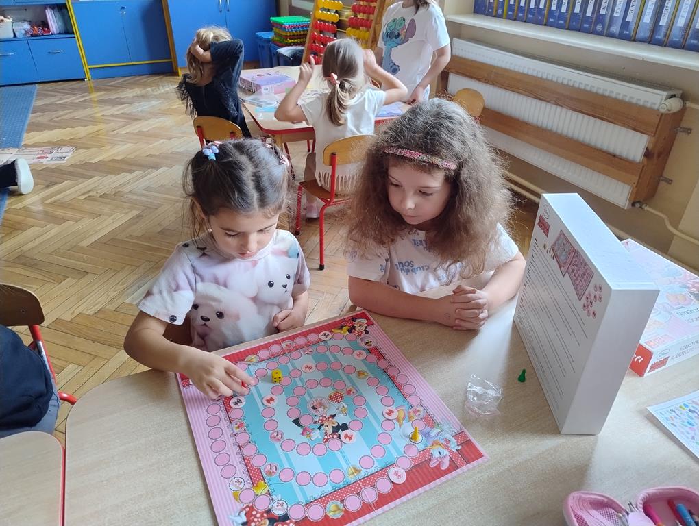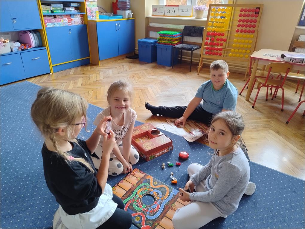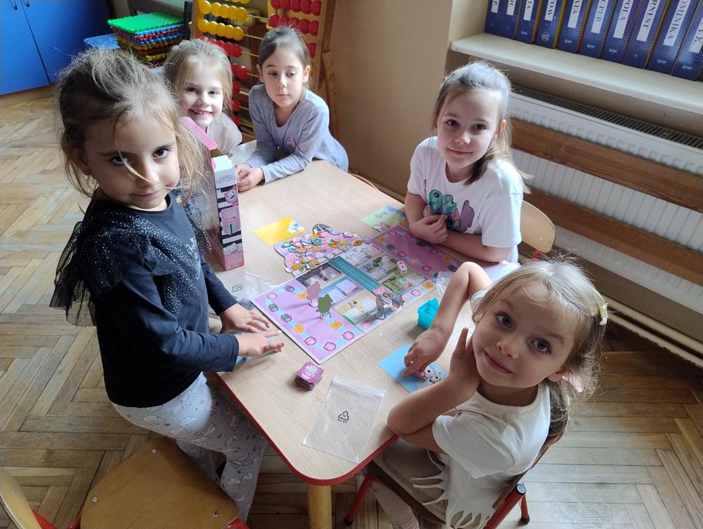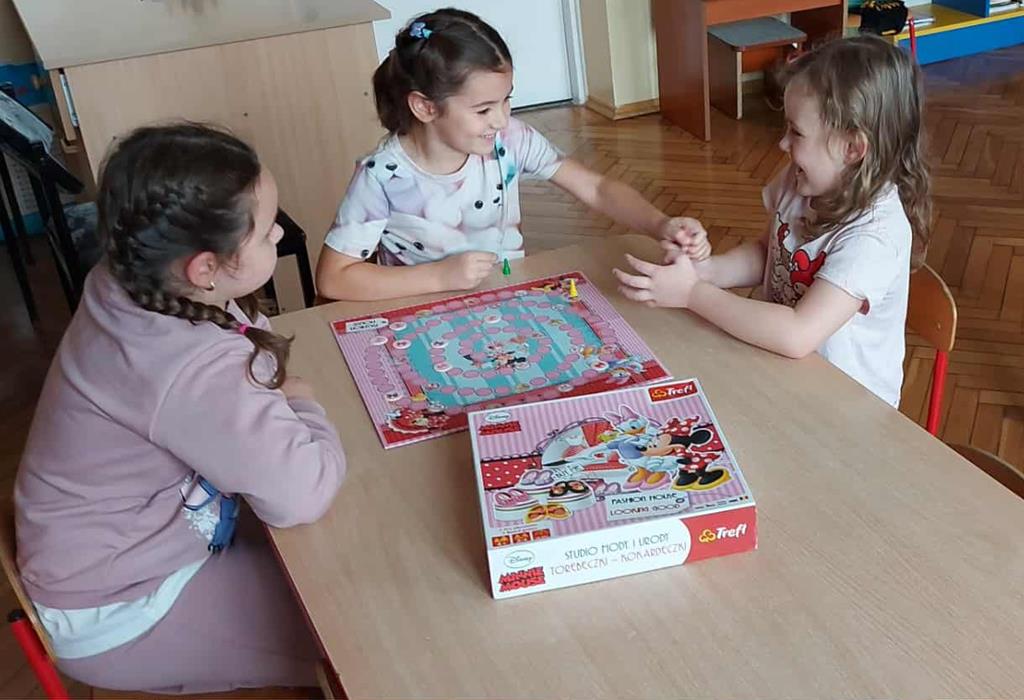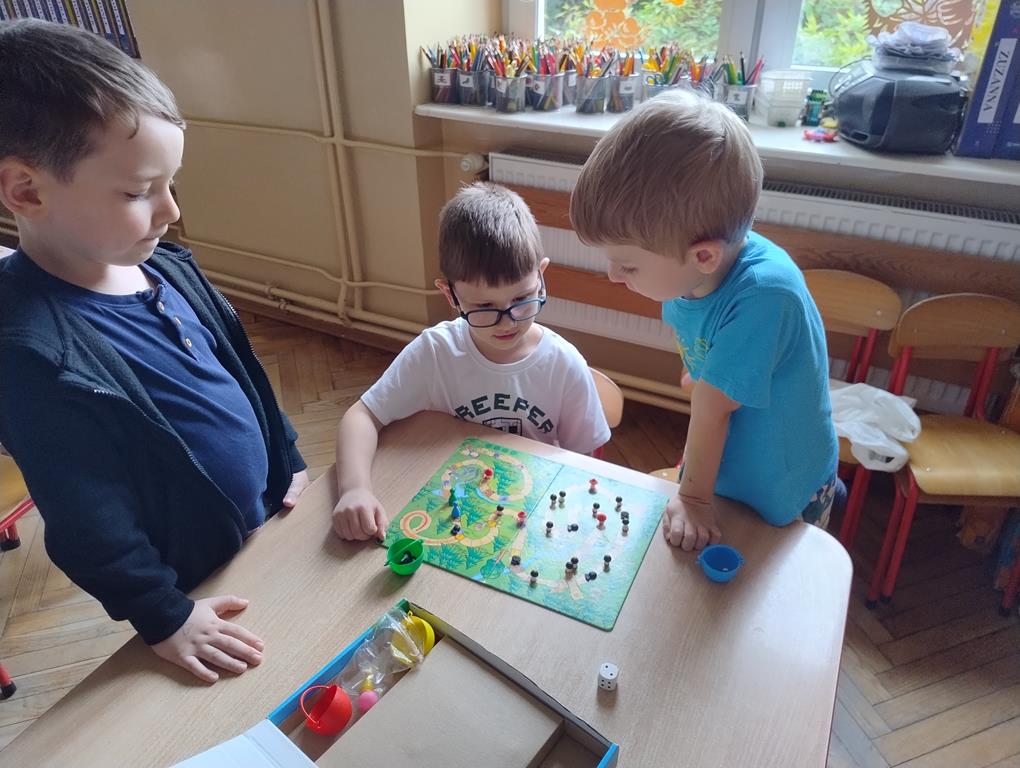 Gry planszowe okazały się świetnym pretekstem do integracji grupy oraz rozwijania kompetencji społecznych. Atmosfera była pełna radości, skupienia i emocji – dzieci z entuzjazmem podejmowały kolejne wyzwania przy planszy i chętnie dzieliły się swoimi spostrzeżeniami z kolegami i koleżankami.