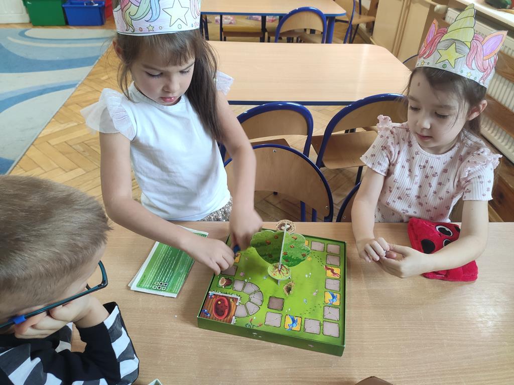 Dzieci miały okazję zanurzyć się w świat strategicznego myślenia, logicznych zagadek i pracy zespołowej, grając w różnorodne gry, dopasowane do ich wieku i zainteresowań. Podczas wspólnego grania przedszkolaki nie tylko ćwiczyły koncentrację, spostrzegawczość i umiejętność liczenia, ale także uczyły się zasad fair play, cierpliwości i współpracy.