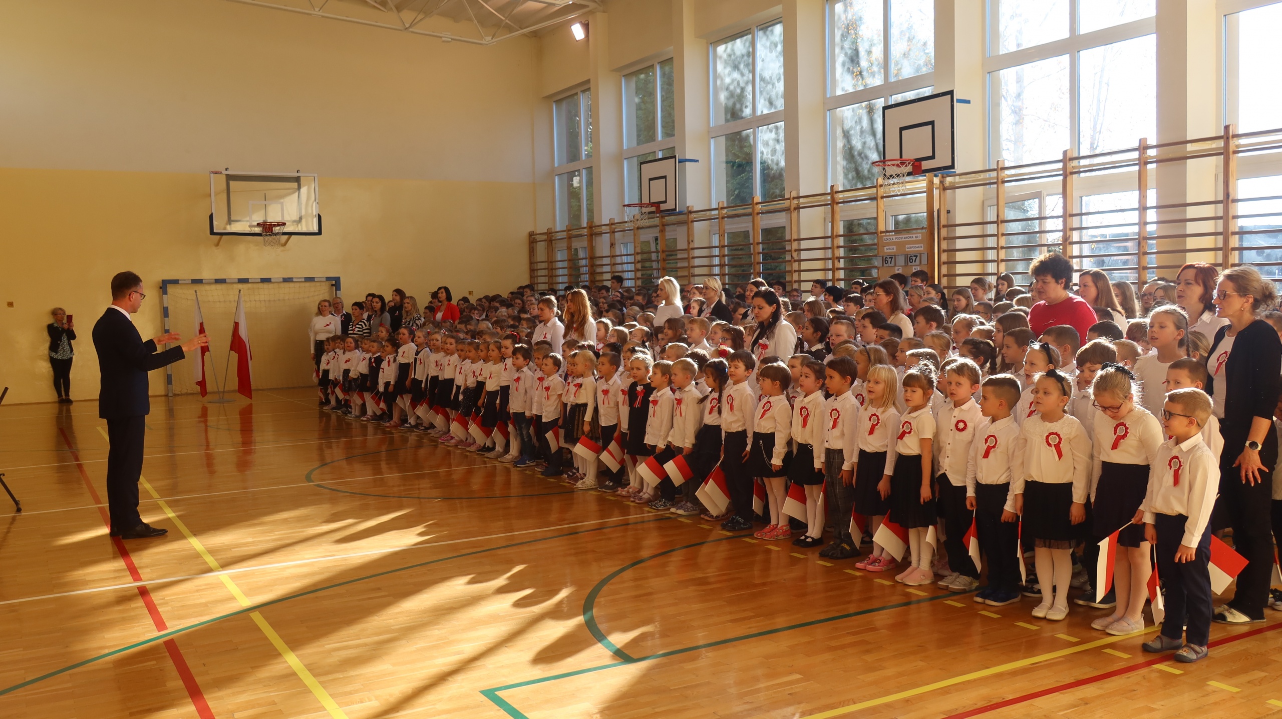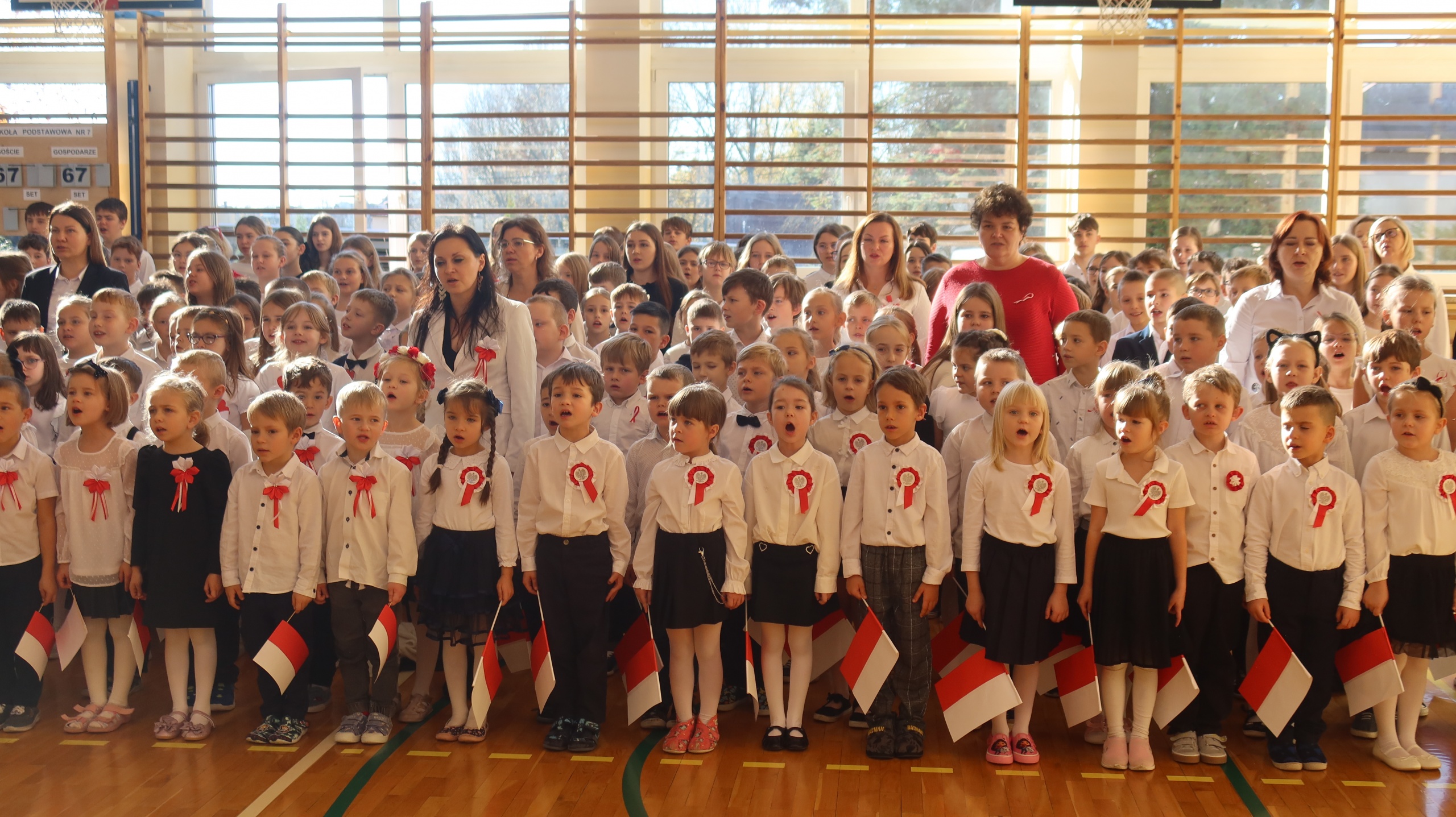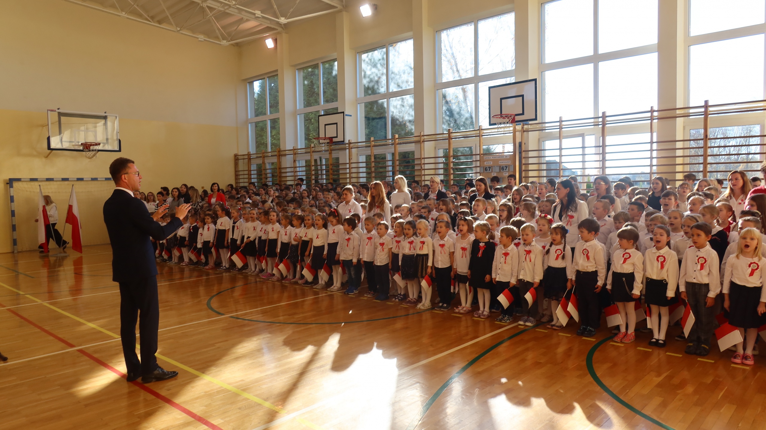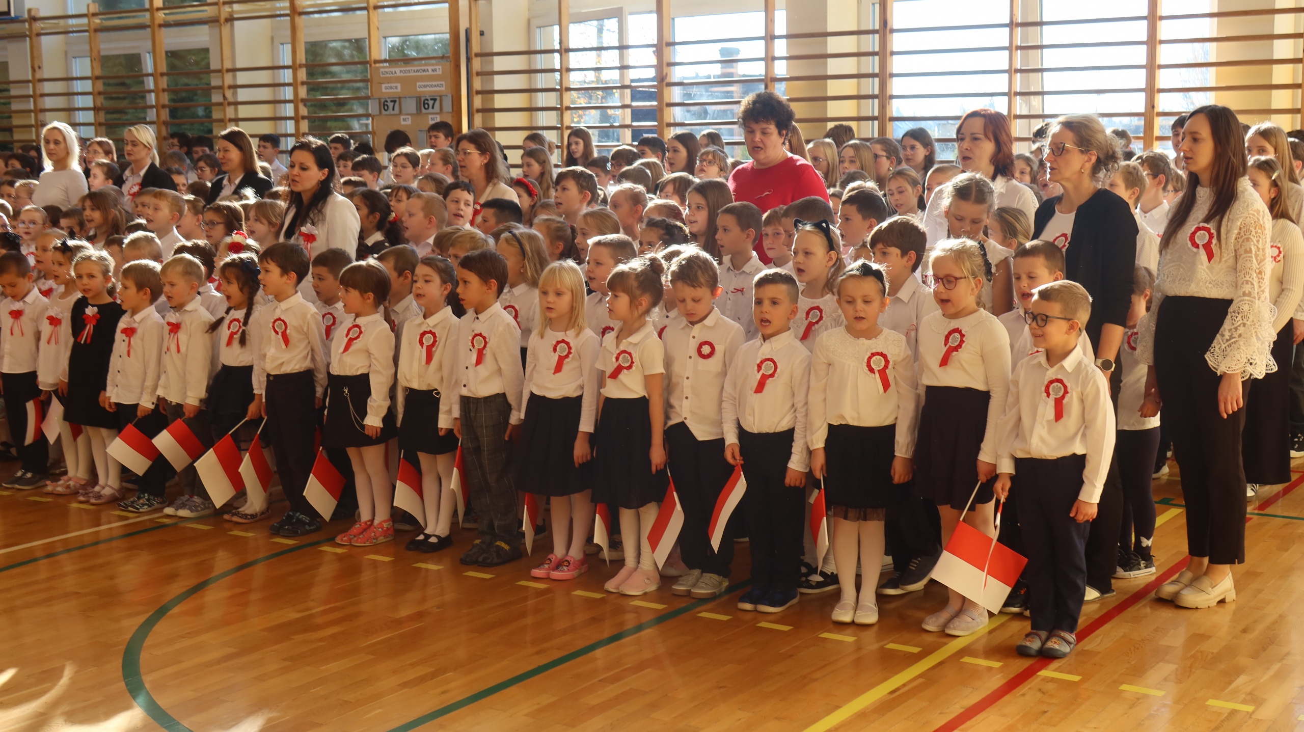 Po raz kolejny wzięliśmy udział w ogólnopolskiej akcji „Szkoła do hymnu”, której inicjatorem jest Ministerstwo Edukacji Narodowej. 7 listopada 2025 r. o godz. 11:11 dzieci z naszego przedszkola, a także uczniowie klas 1-8 szkoły podstawowej i nauczyciele zgromadzili się w sali gimnastycznej, by uroczyście odśpiewać 4 zwrotki “Mazurka Dąbrowskiego”.