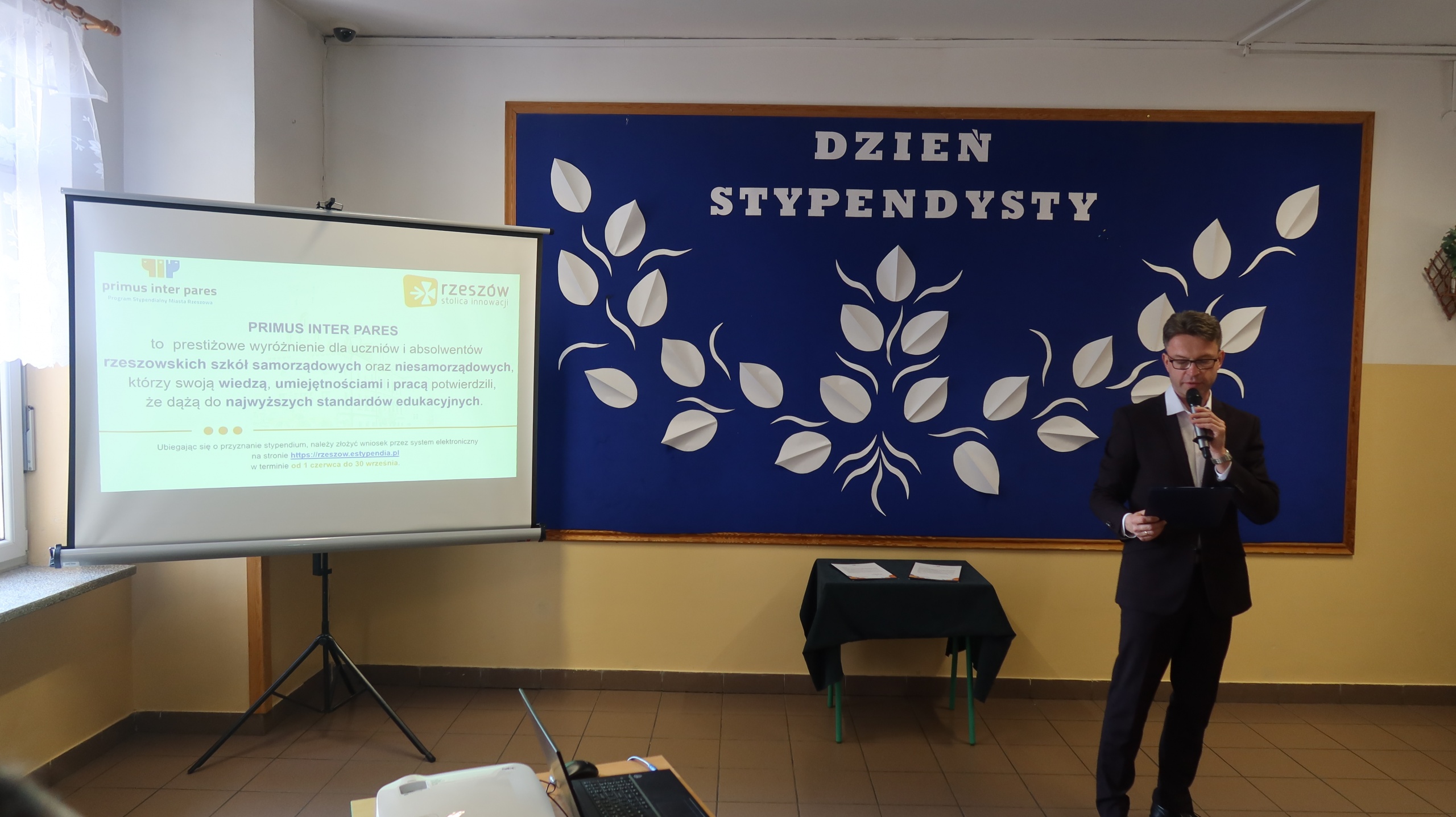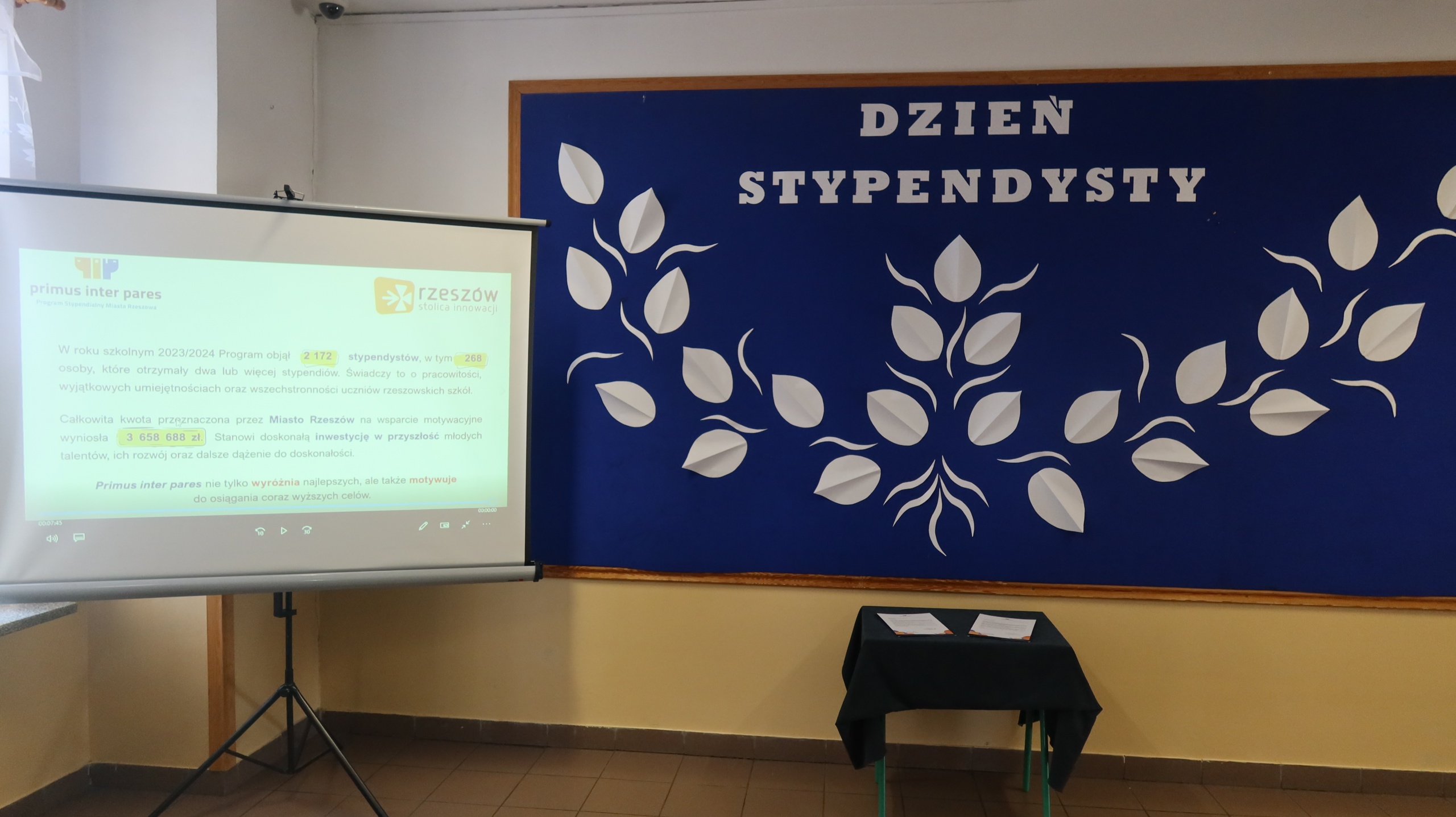 Zgromadzeni na apelu uczniowie i nauczyciele obejrzeli film promujący Program Stypendialny pn. Primus inter pares, a także prezentację informującą o różnych formach realizacji programu, takich jak: Primus, Mistrz, Zdolny uczeń, oraz zasadach ich przyznawania. Dyrektor szkoły odczytał również list gratulacyjny od Prezydenta Miasta Rzeszowa, pana Konrada Fijołka, który podkreślił, że przyznane uczniowi i absolwentce naszej szkoły wyróżnienia są nie tylko dowodem ich talentu i ciężkiej pracy, ale także zaangażowania i profesjonalizmu kadry pedagogicznej.