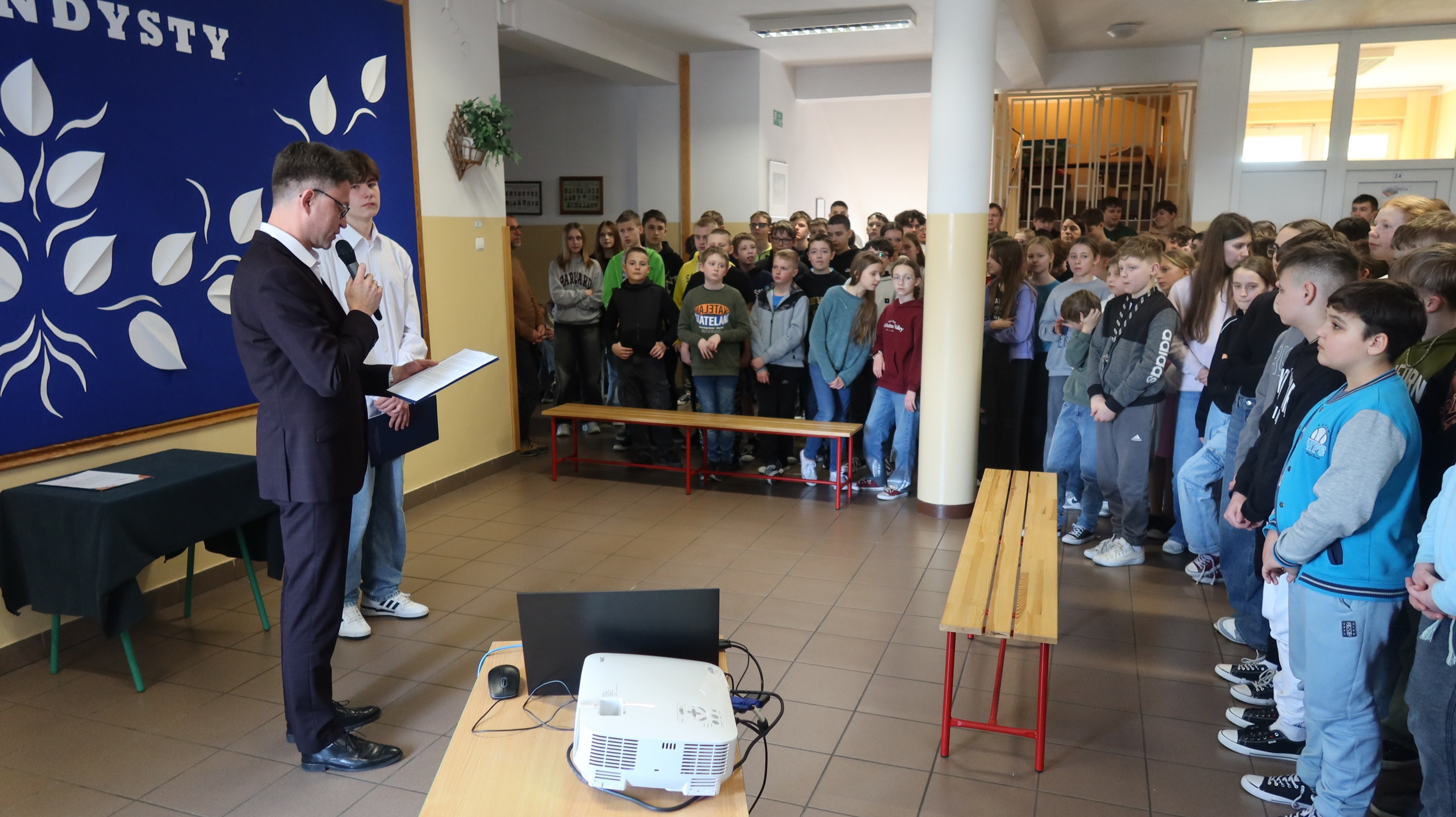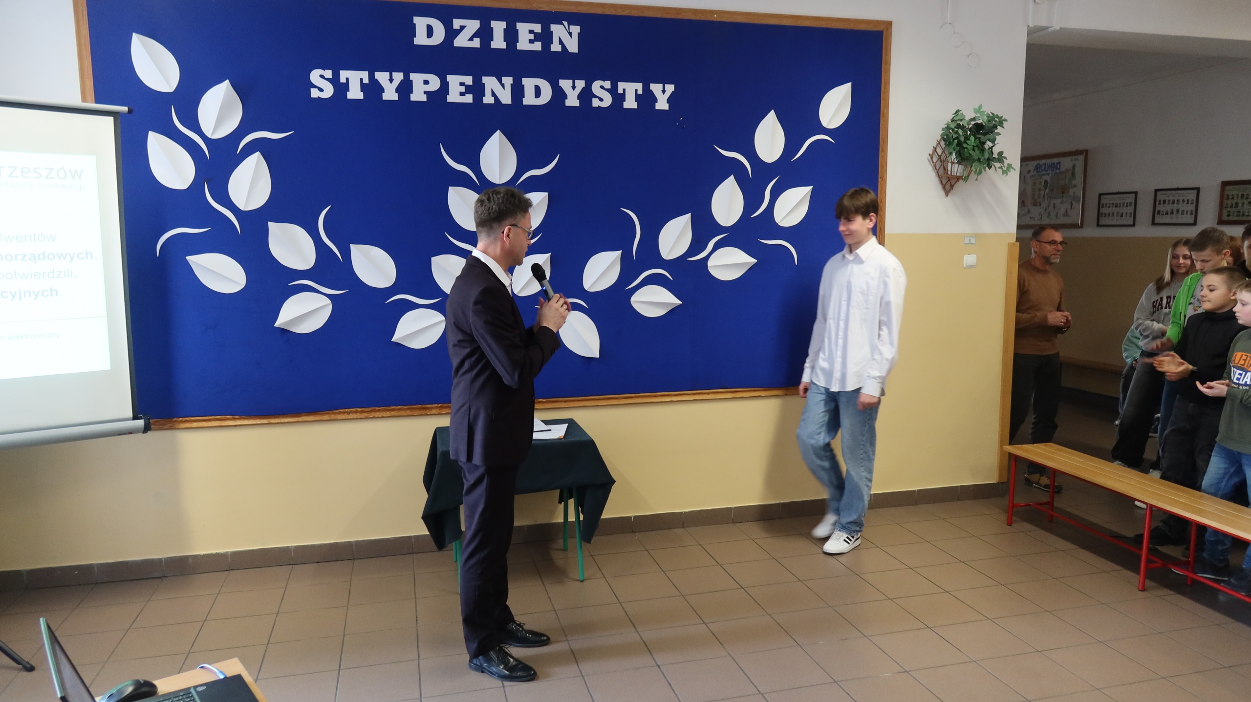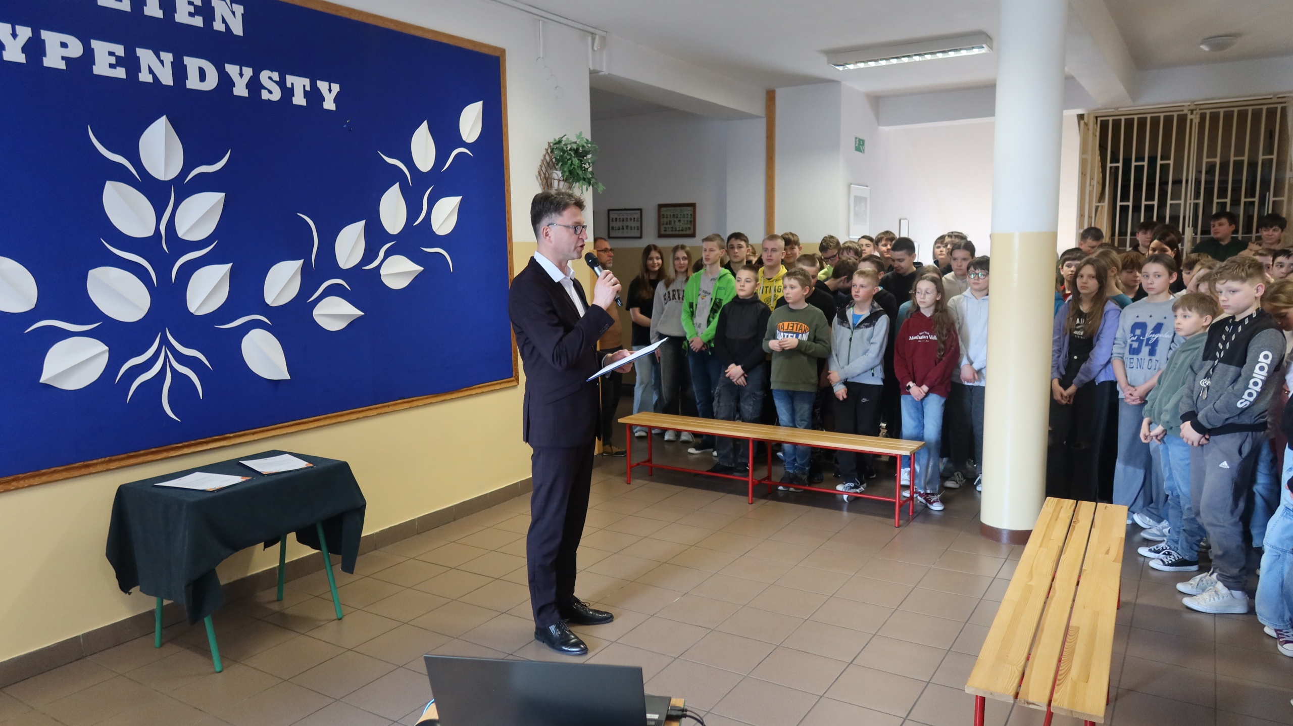 7 marca, po raz pierwszy w naszej szkole, miało miejsce wyjątkowe wydarzenie – Dzień Stypendysty. Uczniowie szkoły podstawowej, wraz z nauczycielami, wzięli udział w uroczystym apelu, podczas którego dyrektor szkoły, pan Piotr Kłęk, przekazał informacje o Programie Stypendialnym Miasta Rzeszowa pn. Primus inter pares.