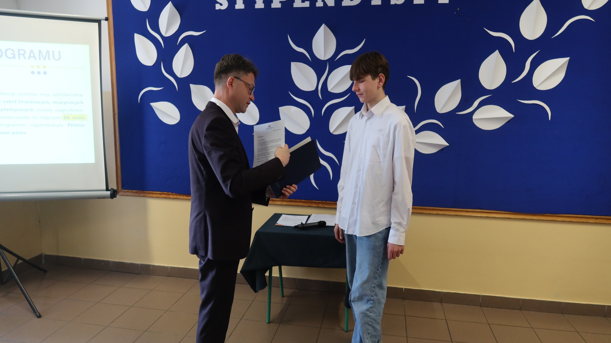 Jesteśmy dumni, że w naszej szkole są uczniowie, którzy swoją postawą i pracą zasługują na szczególne wyróżnienie. Dzień Stypendysty był doskonałą okazją do tego, by docenić ich wysiłek i talent oraz przekonywać o zaletach systematycznego dążenia do wyznaczonych celów. Gratulujemy Hubertowi i życzymy mu, by z taką samą determinacją i pasją osiągał kolejne sukcesy w swojej dalszej edukacji! Niech jego wyróżnienie stanie się inspiracją dla innych uczniów do rozwijania swoich zainteresowań, talentów i ambicji.